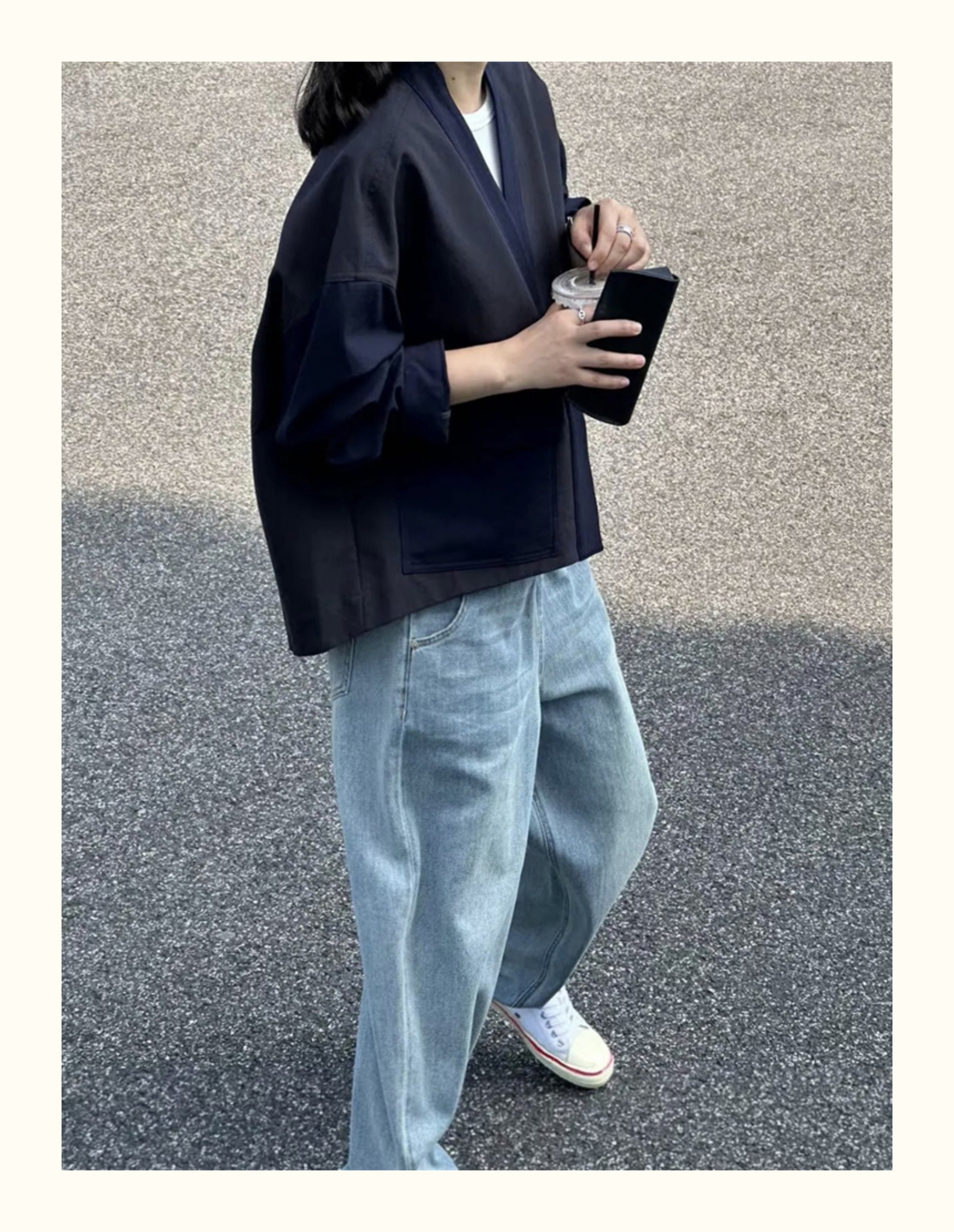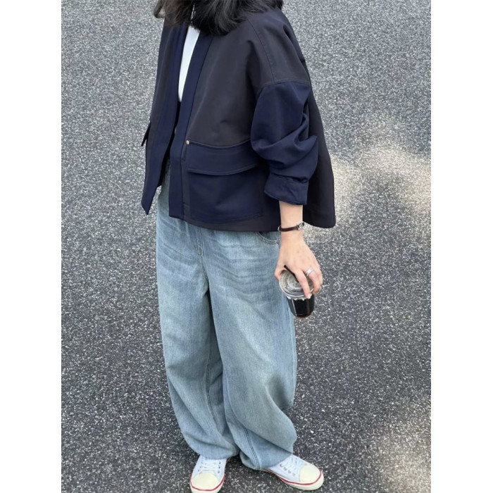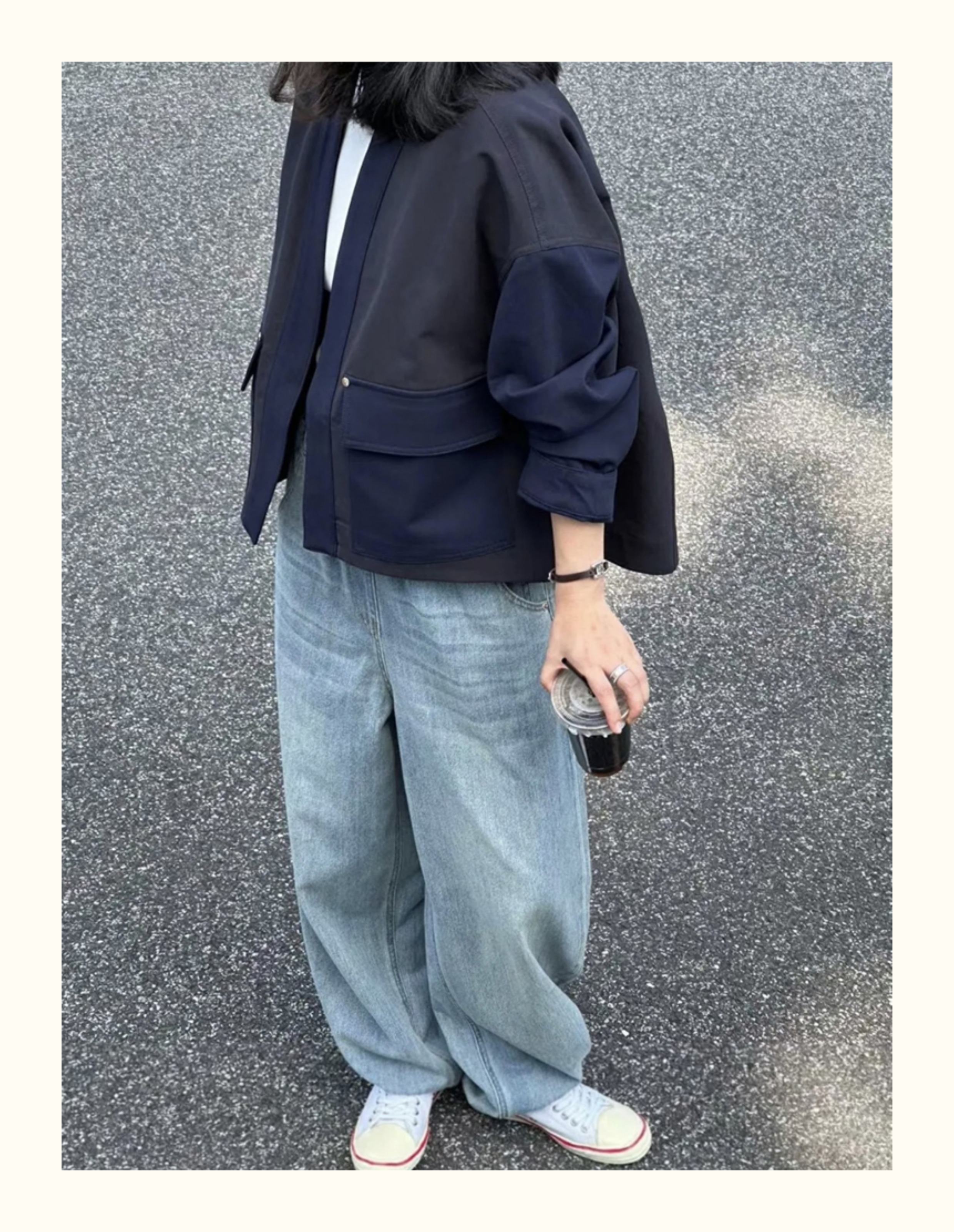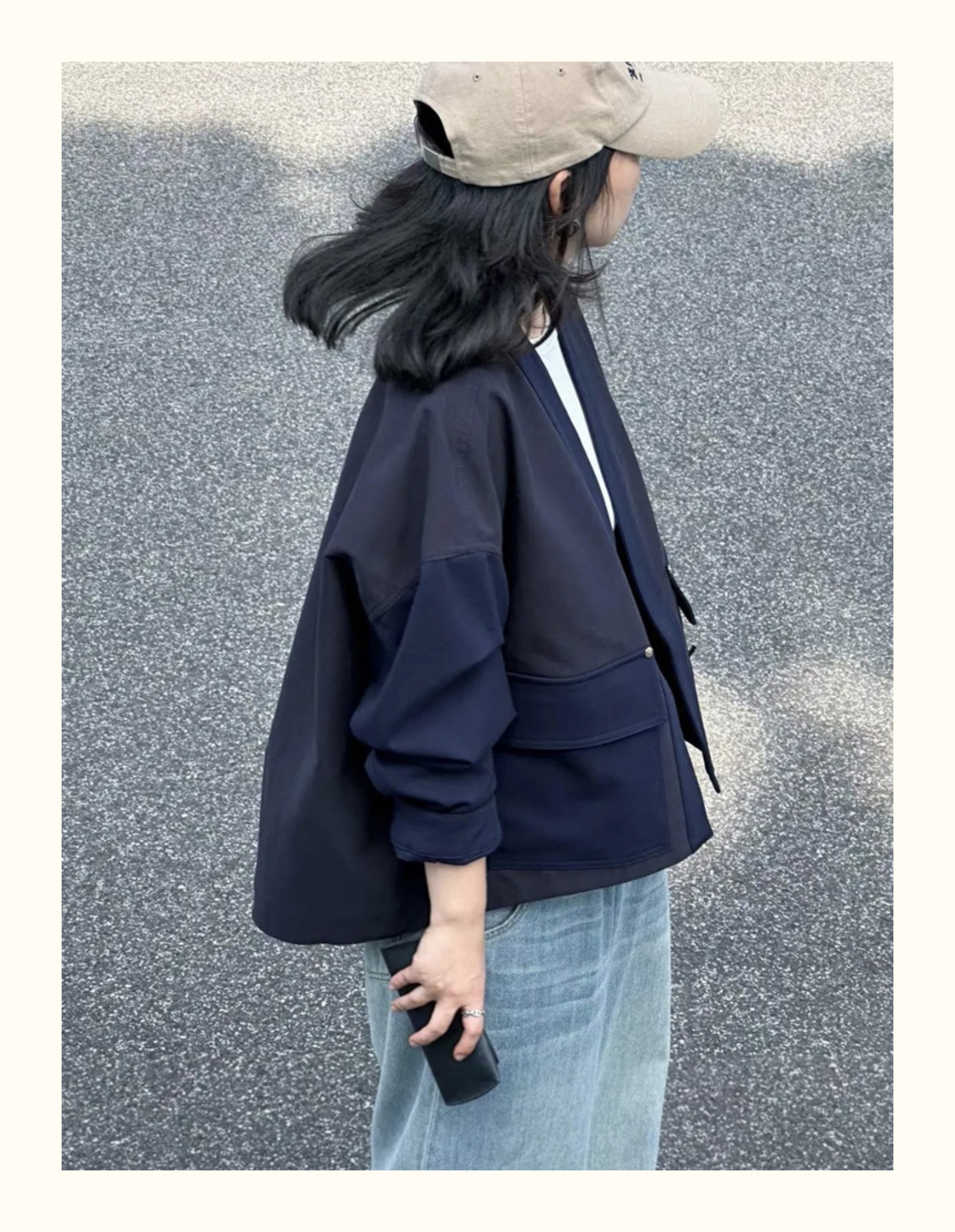 日系復古寬松V領小個子夾克外套女秋季高級感氣質工裝風短款上衣