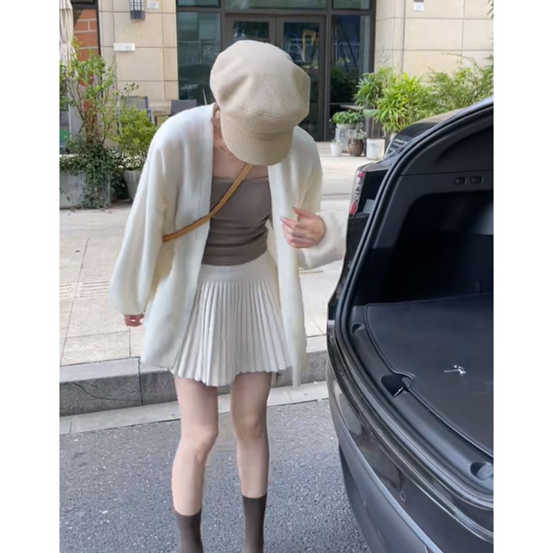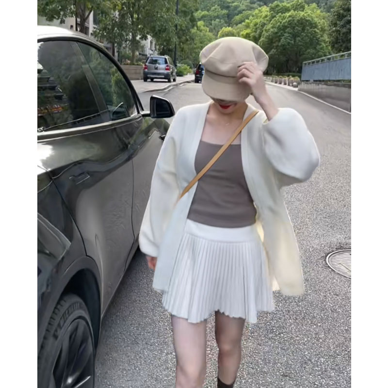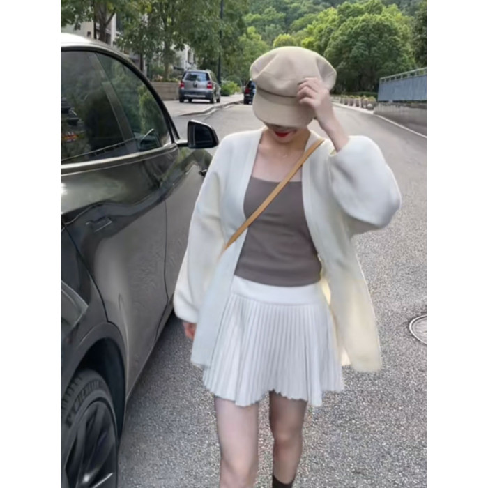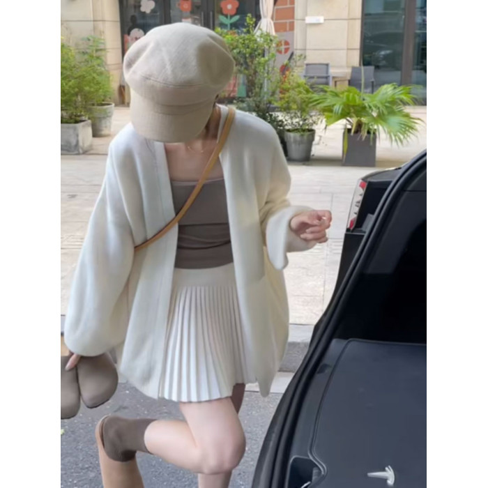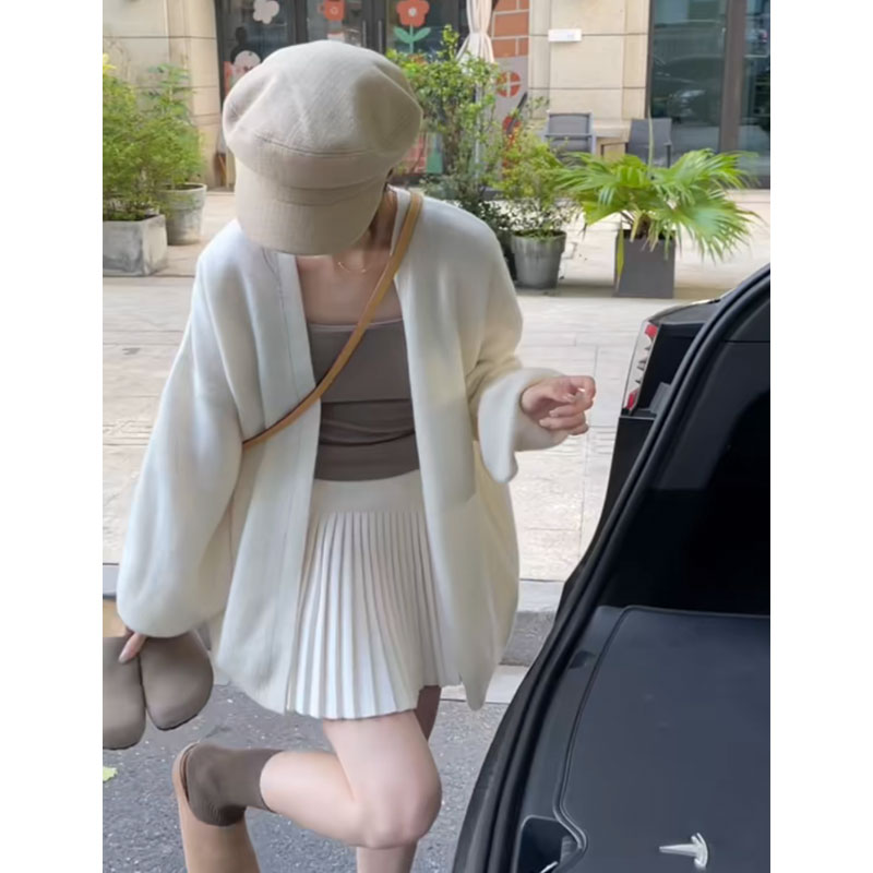 白色軟糯毛衣開衫外套女秋冬季韓系穿搭寬松慵懶風中長款針織上衣