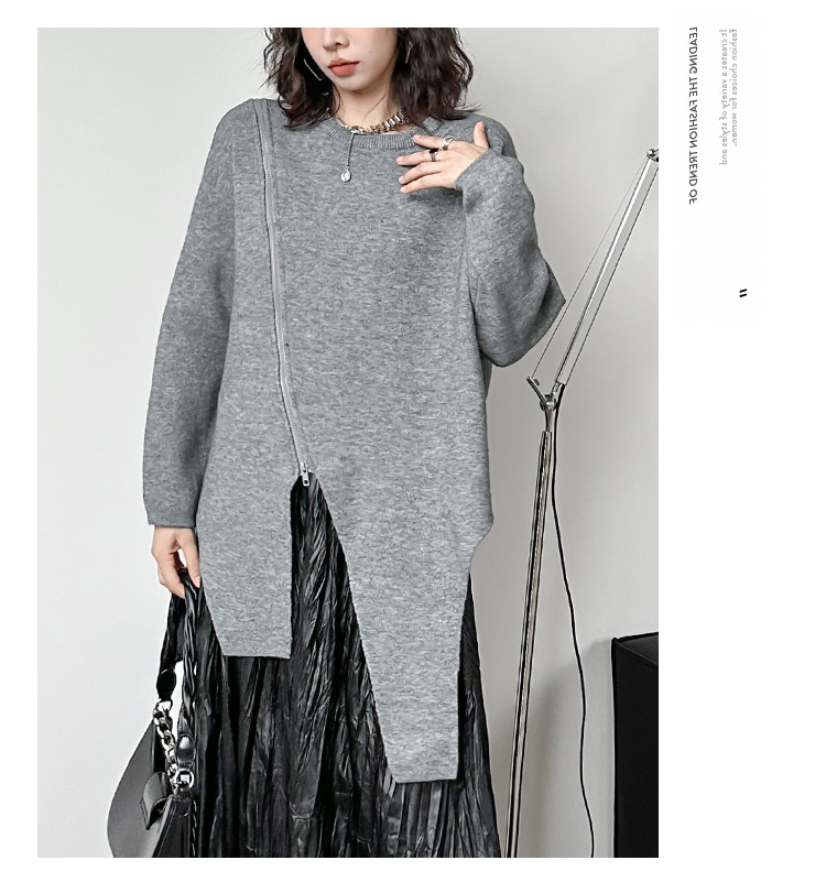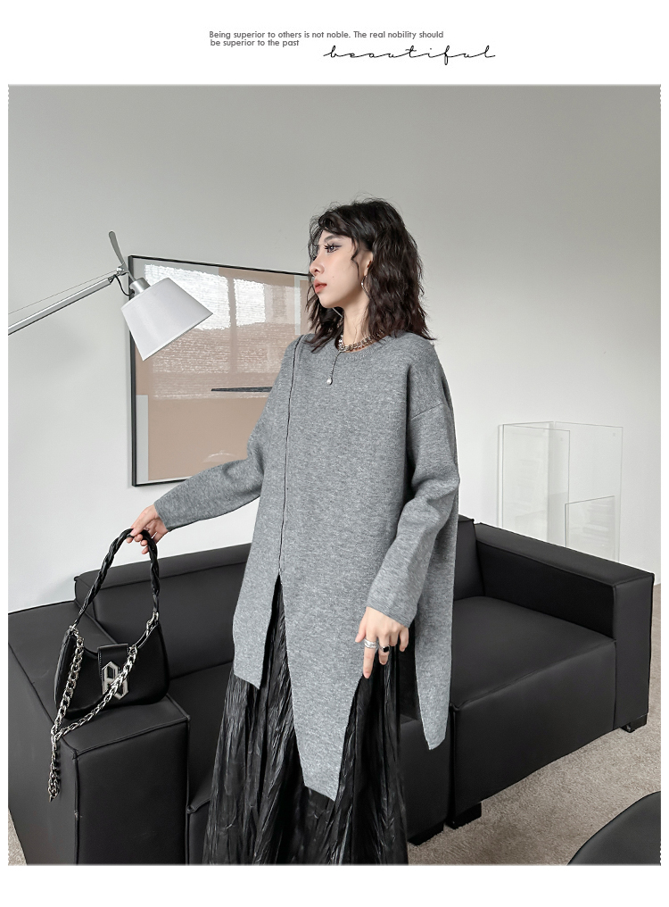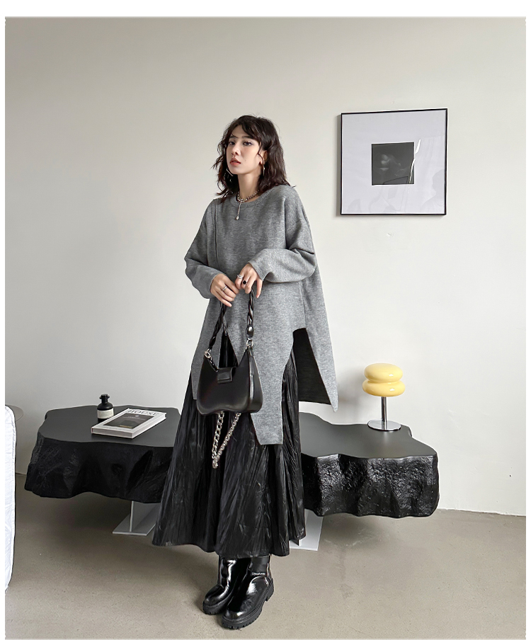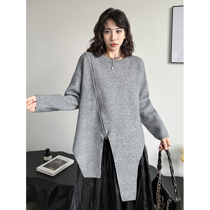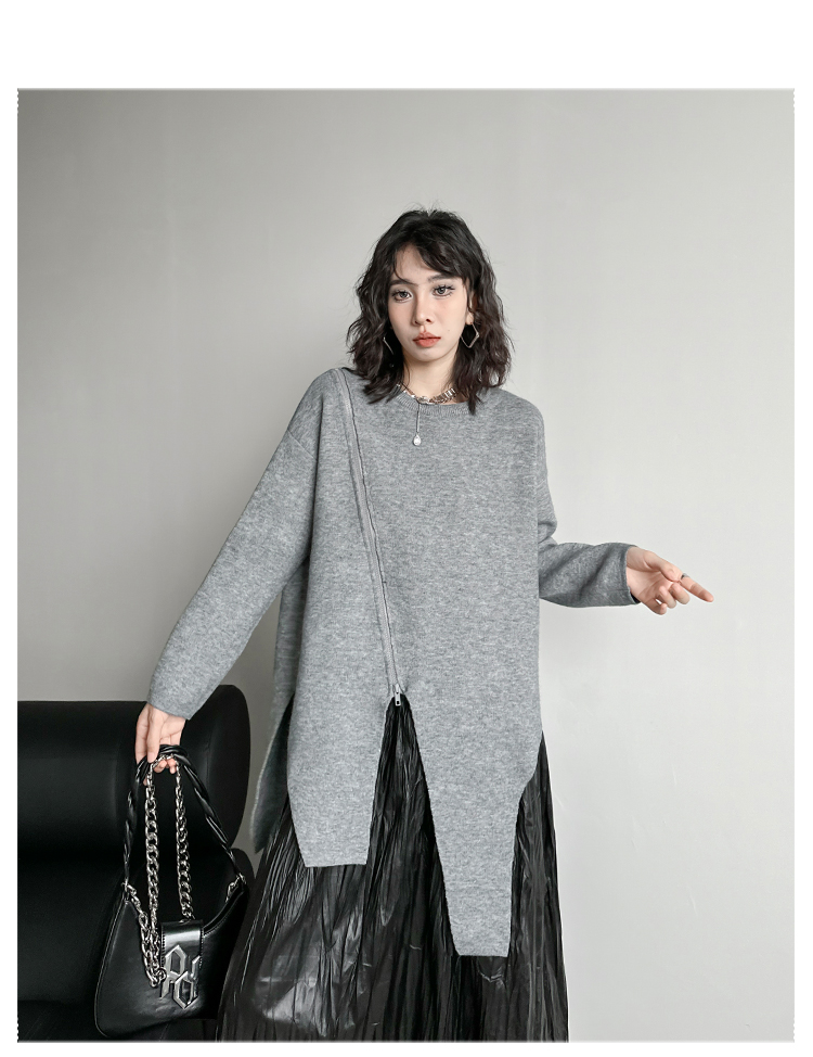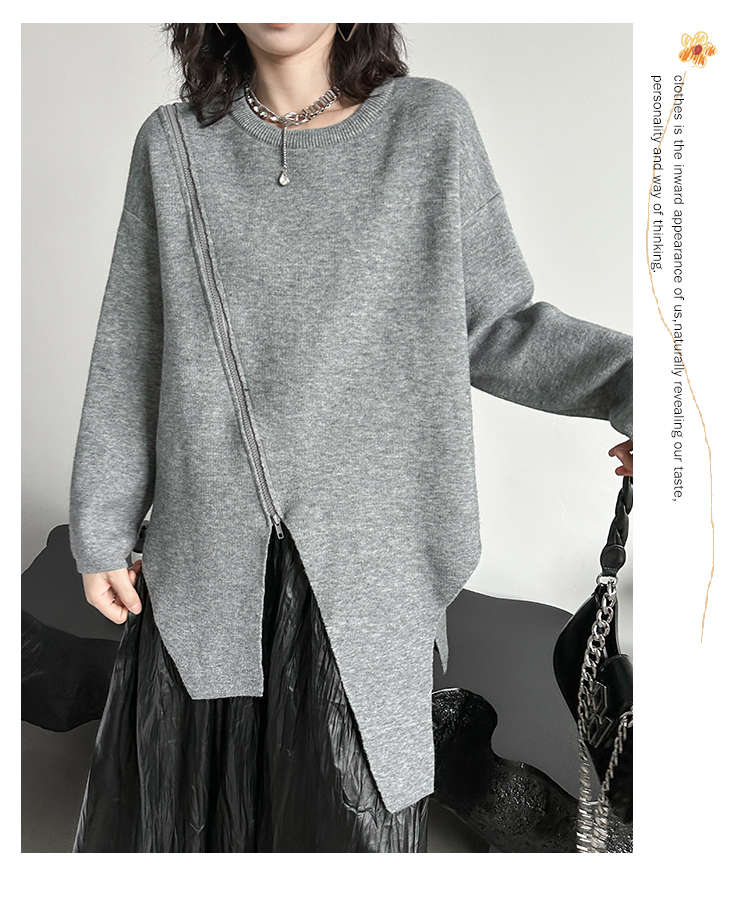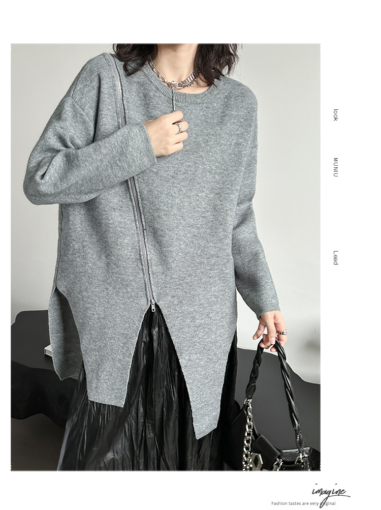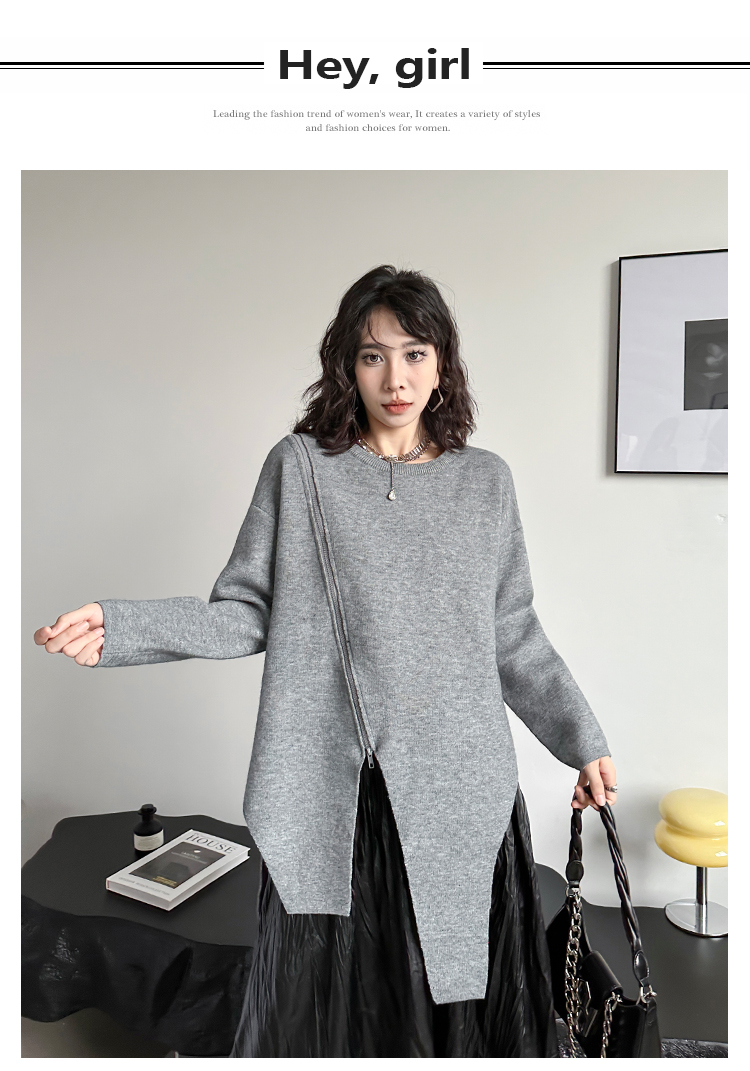 毛衣女2025春秋季新款港風圓領純色開叉時尚個性寬松顯瘦百搭上衣
