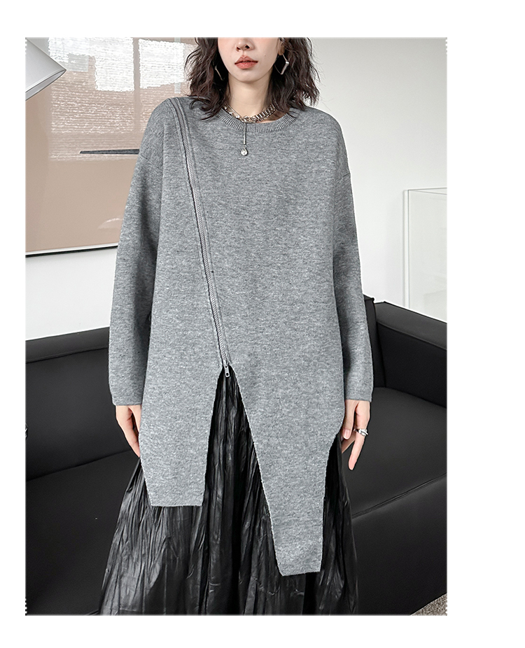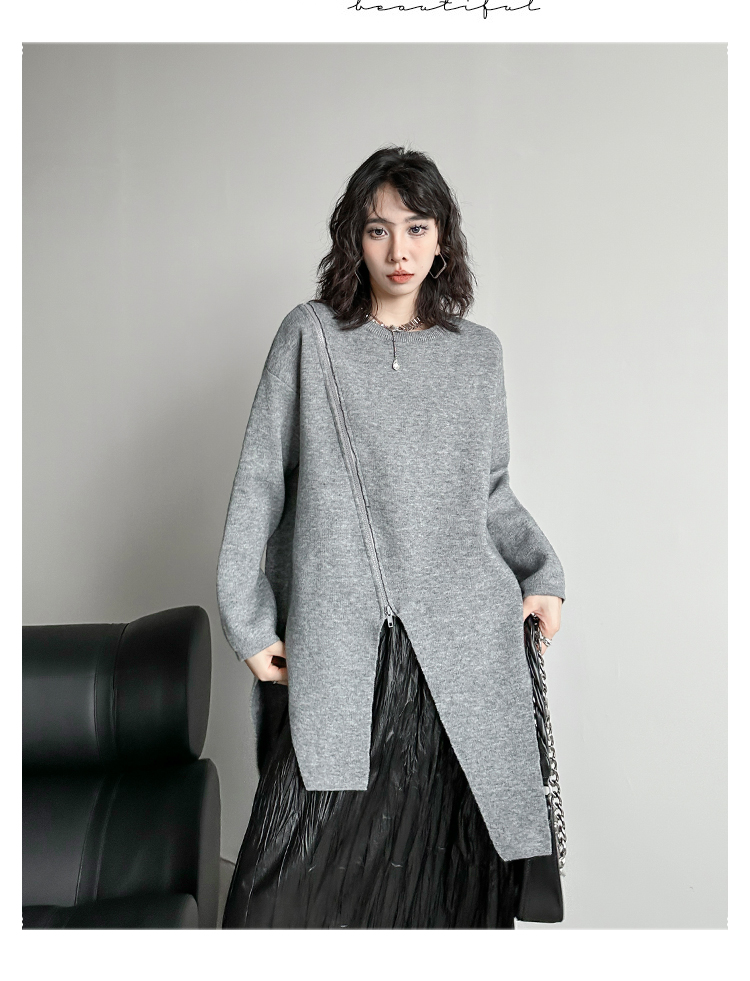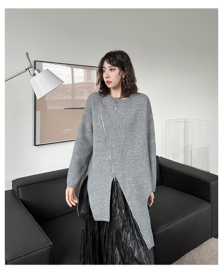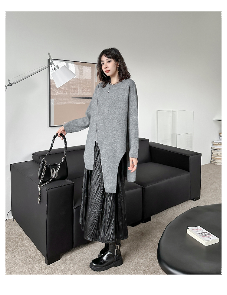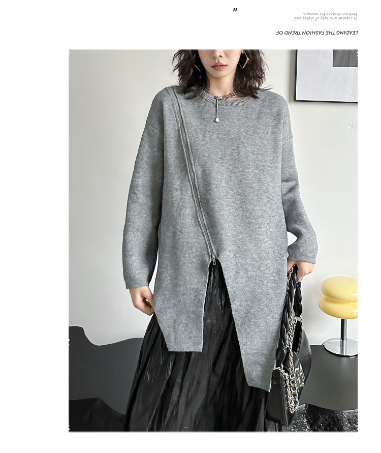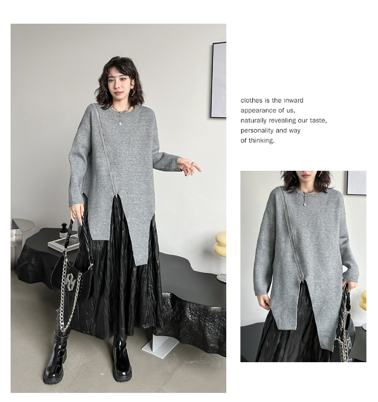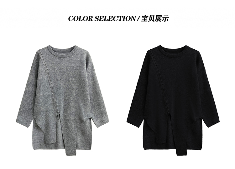 毛衣女2025春秋季新款港風圓領純色開叉時尚個性寬松顯瘦百搭上衣