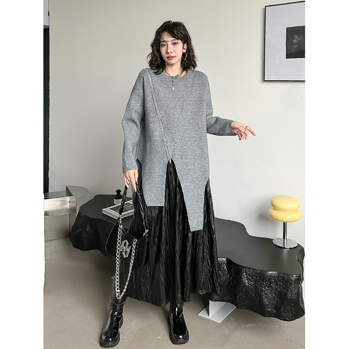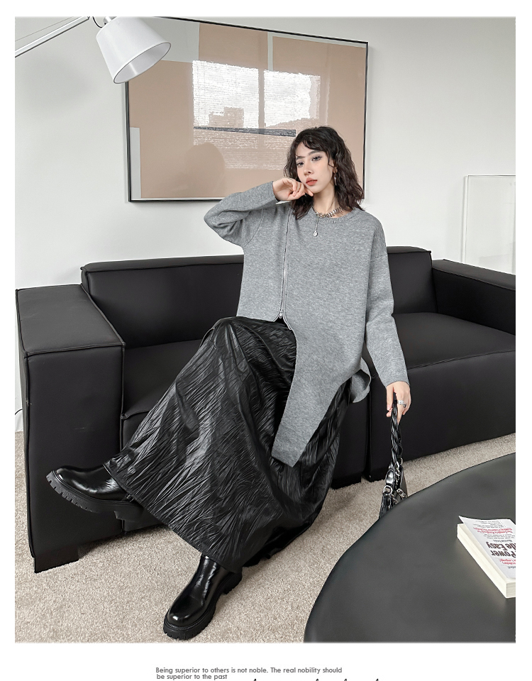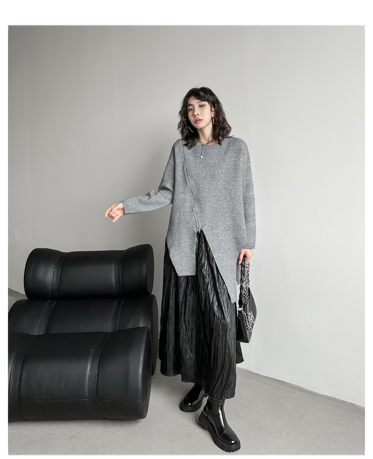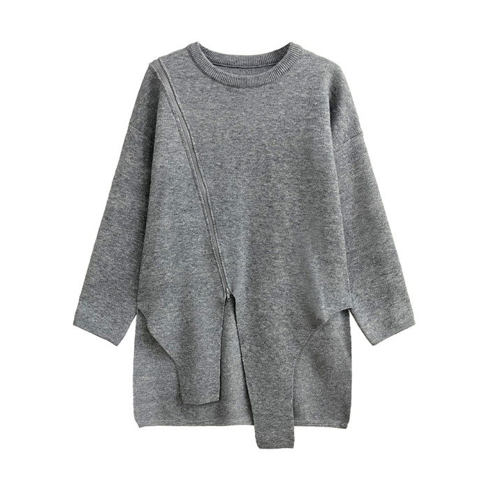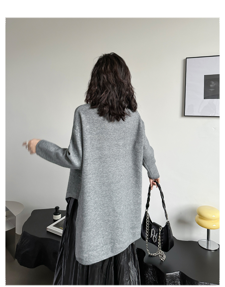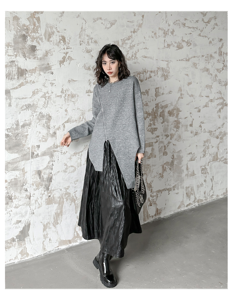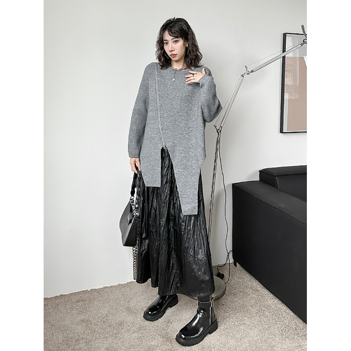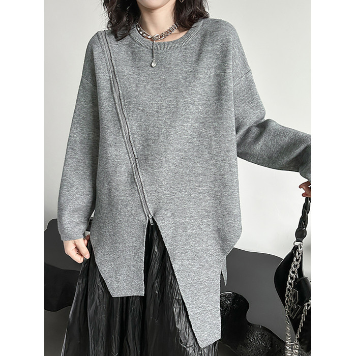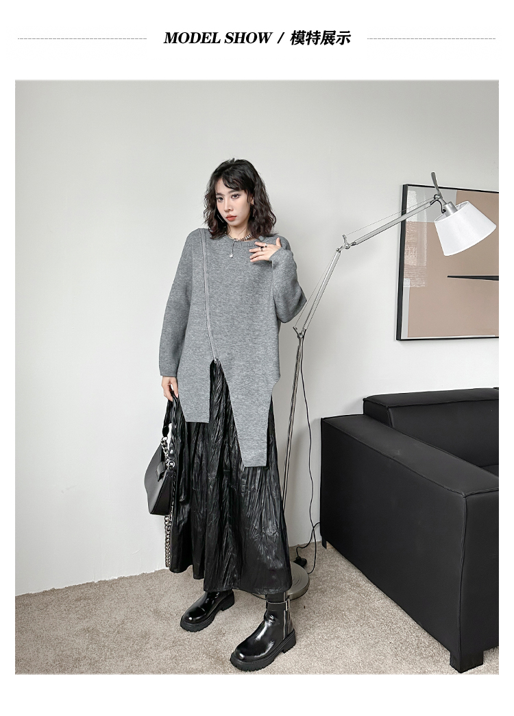 毛衣女2025春秋季新款港風圓領純色開叉時尚個性寬松顯瘦百搭上衣