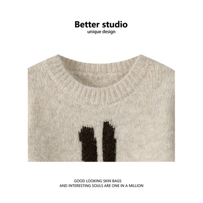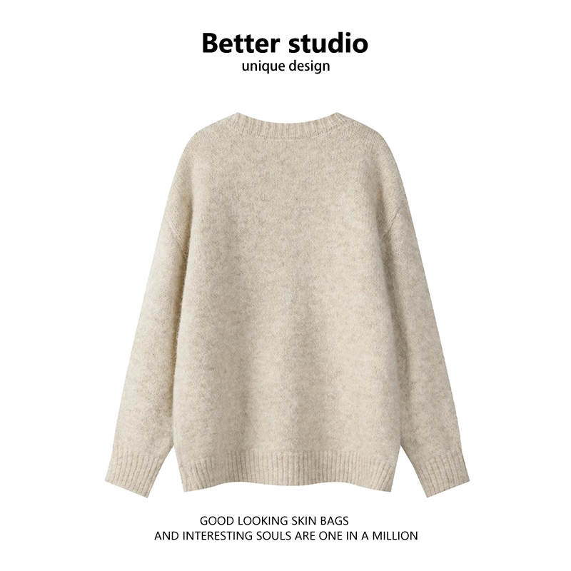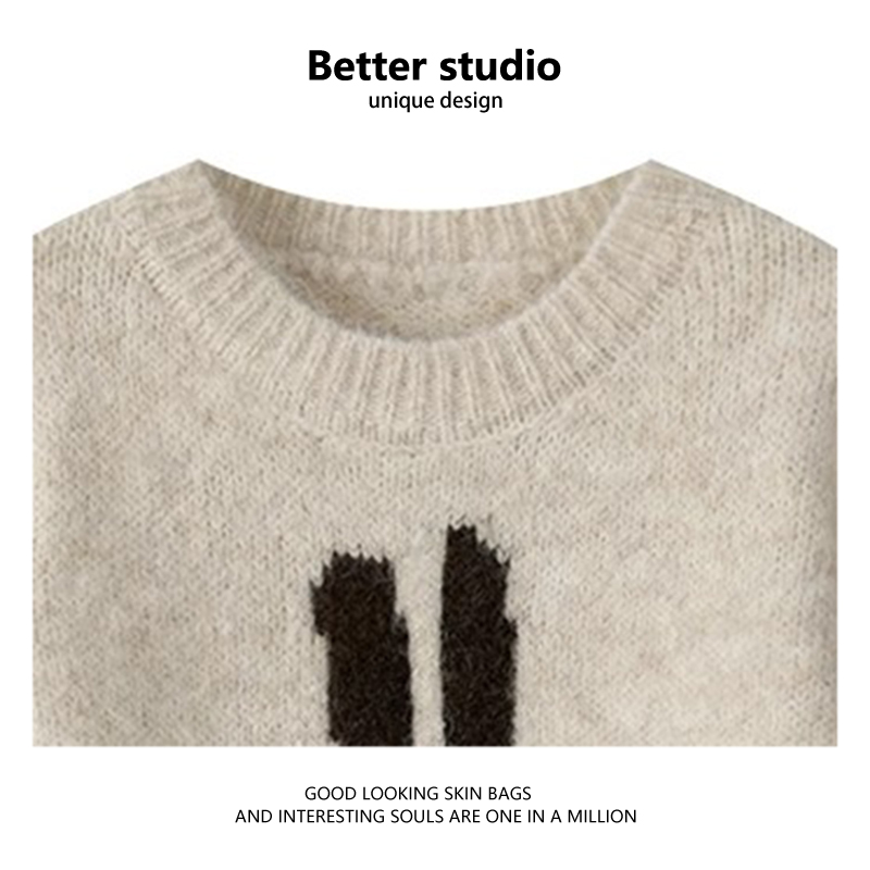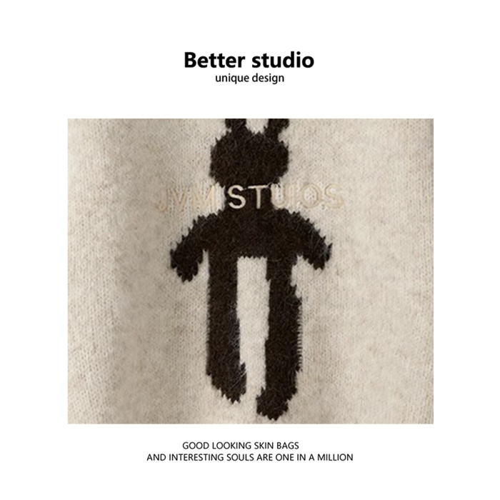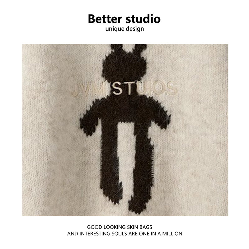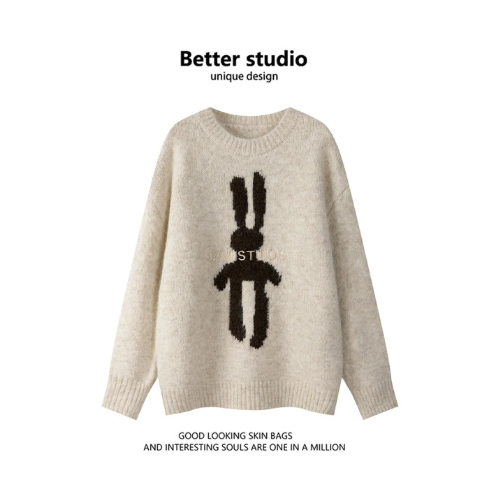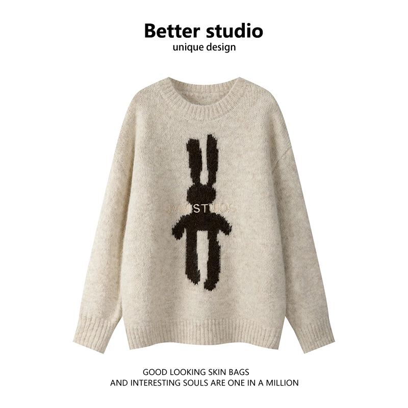 高級感兔子毛衣女春秋季慵懶風oversize衛衣小衆軟糯保暖針織上衣