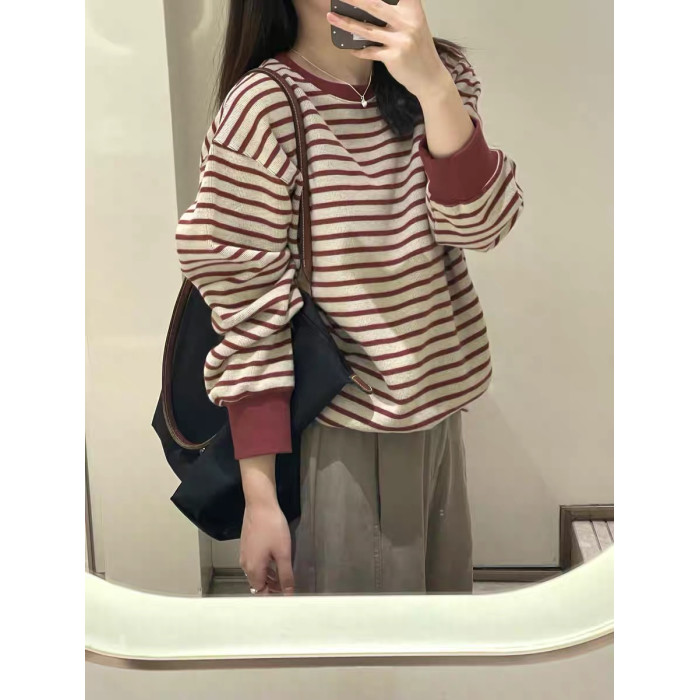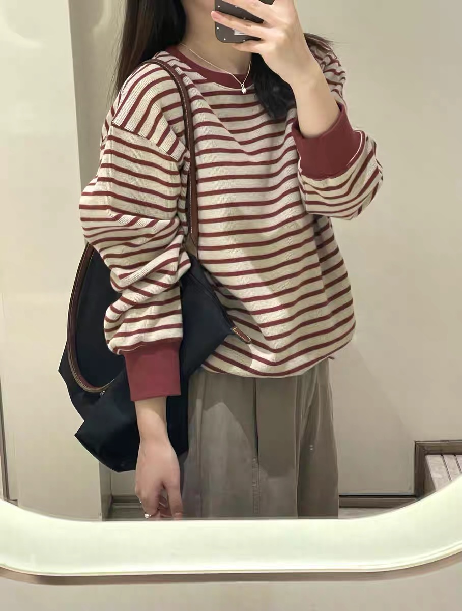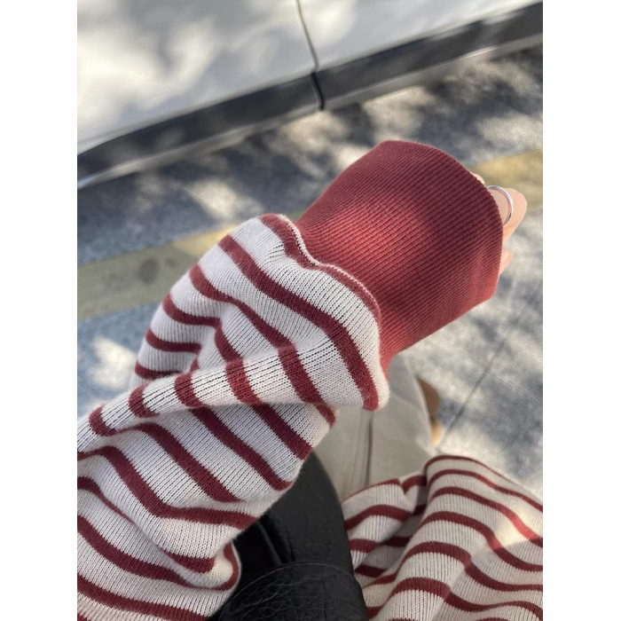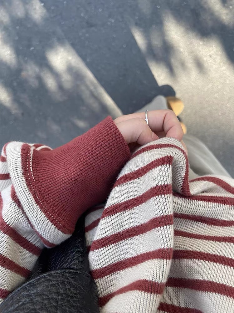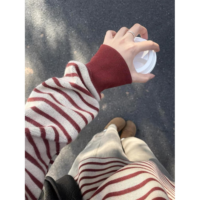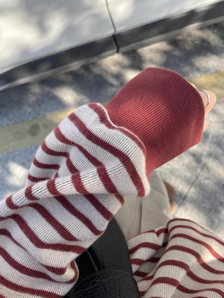 高級感紅色條紋毛衣女2025早秋新款休閒秋冬內搭針織打底衫上衣潮