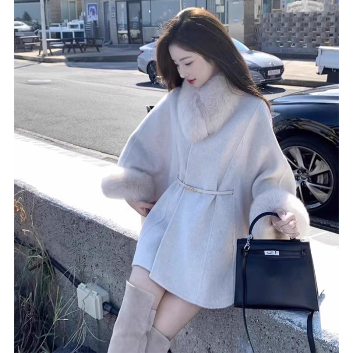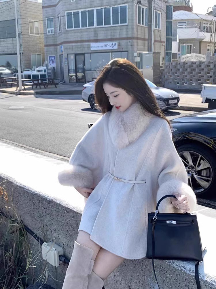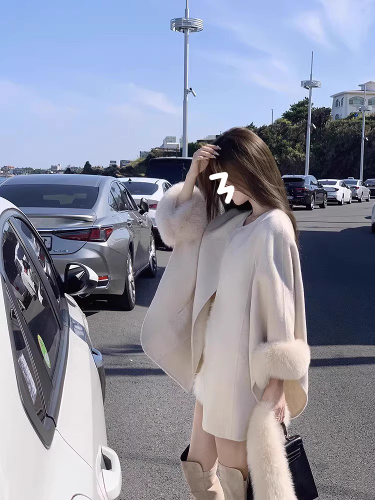 高級感超好看今年流行鬭篷式毛呢外套雙面呢子大衣女春冬2025新款