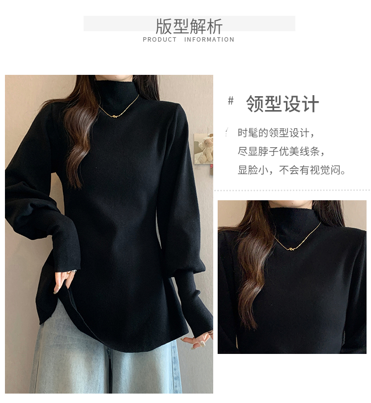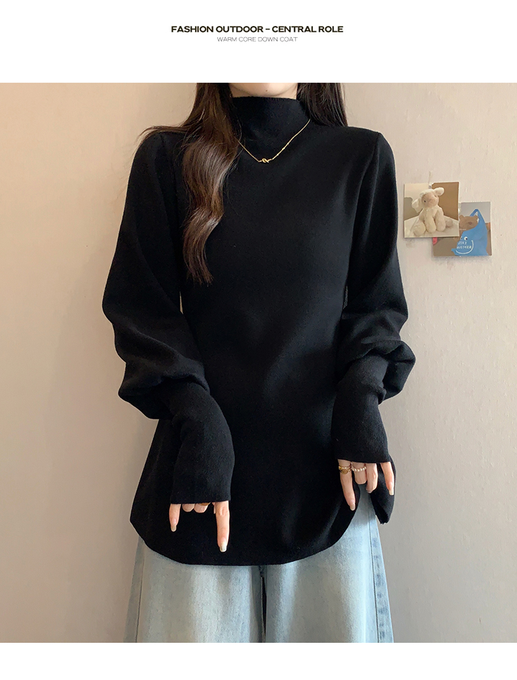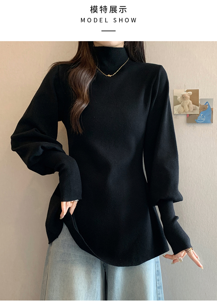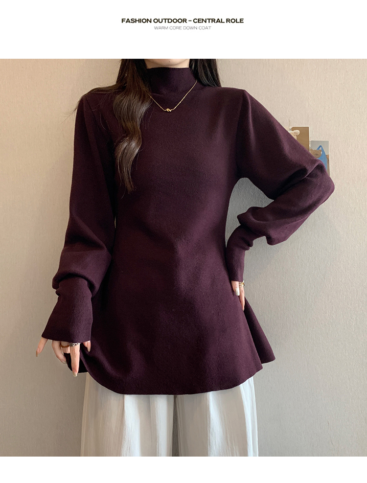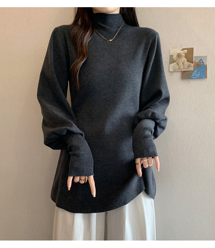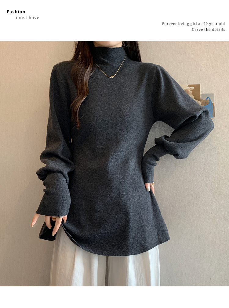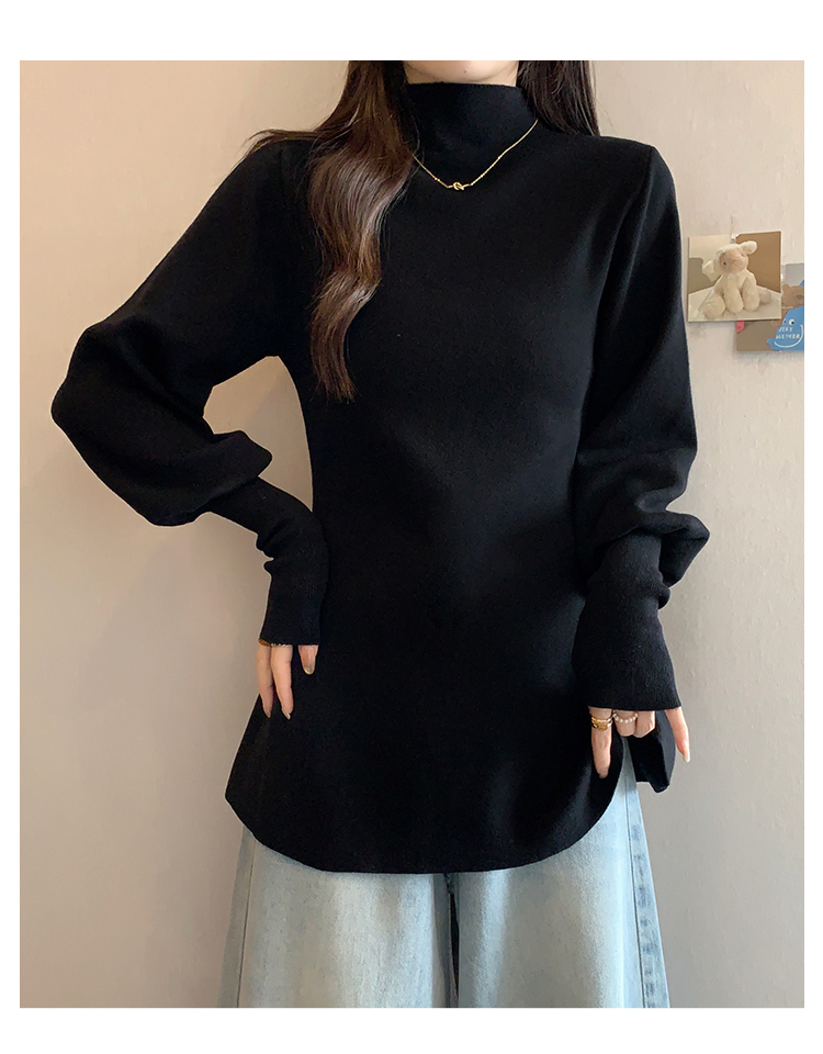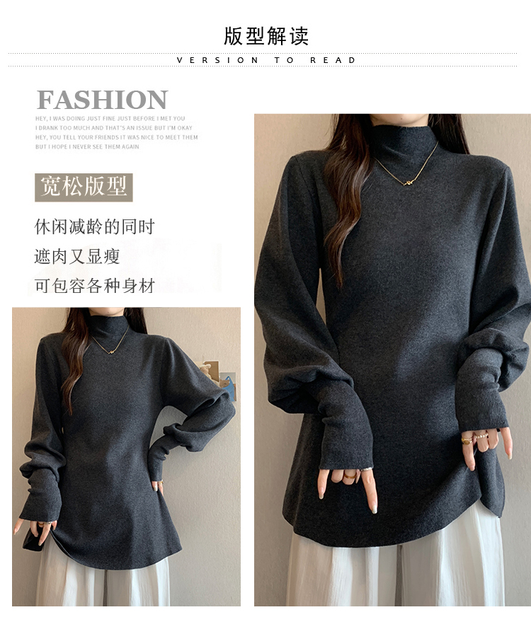 大碼胖MM氣質半高領長袖毛衣女秋冬外穿顯瘦中長款針織衫純色上衣