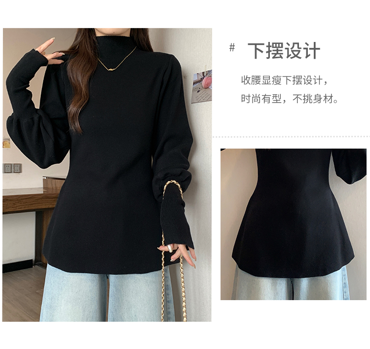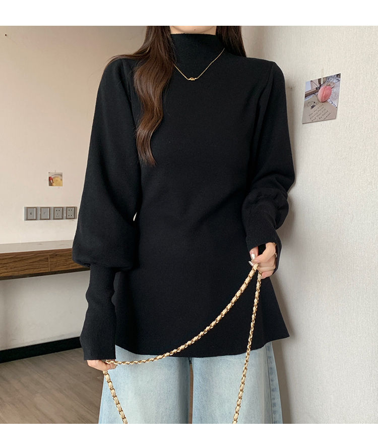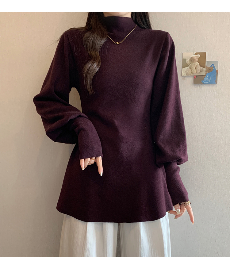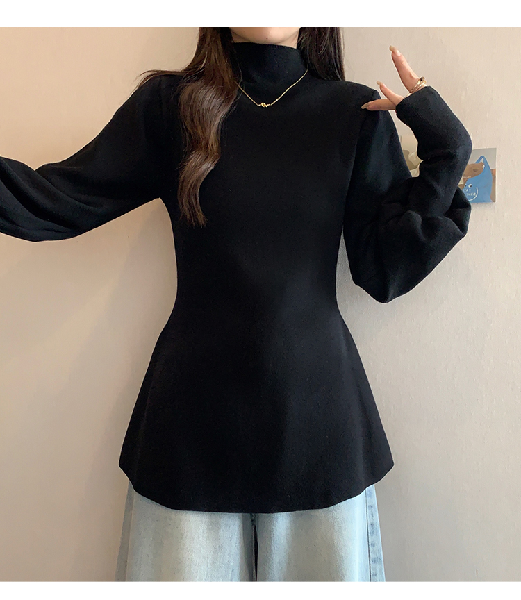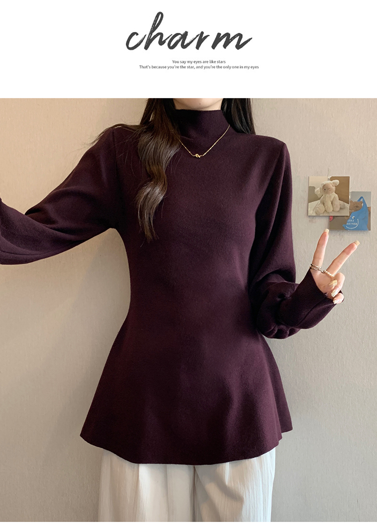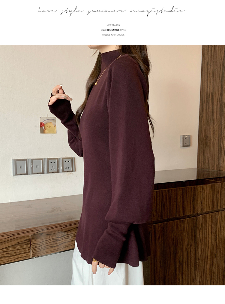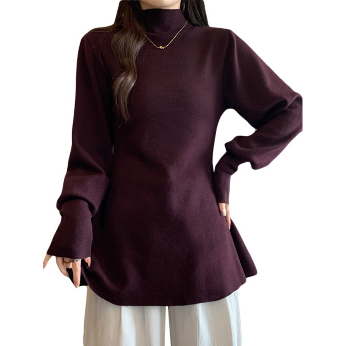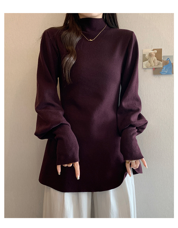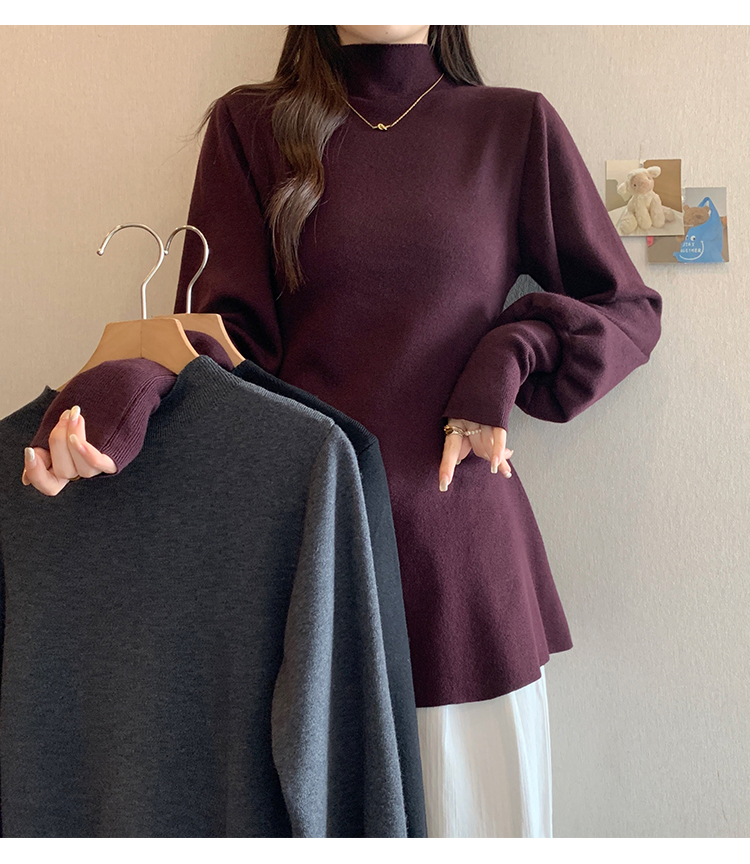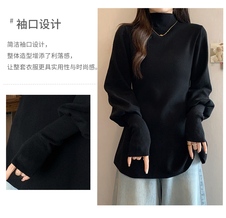 大碼胖MM氣質半高領長袖毛衣女秋冬外穿顯瘦中長款針織衫純色上衣
