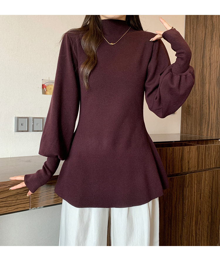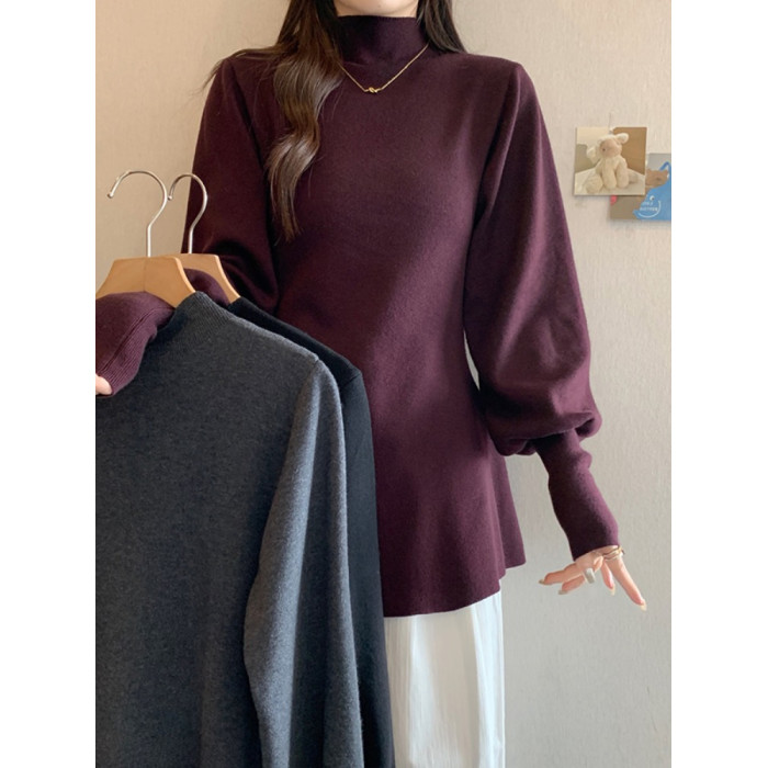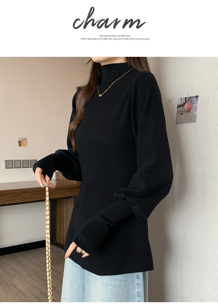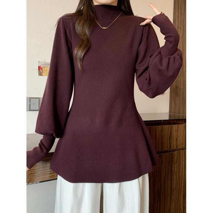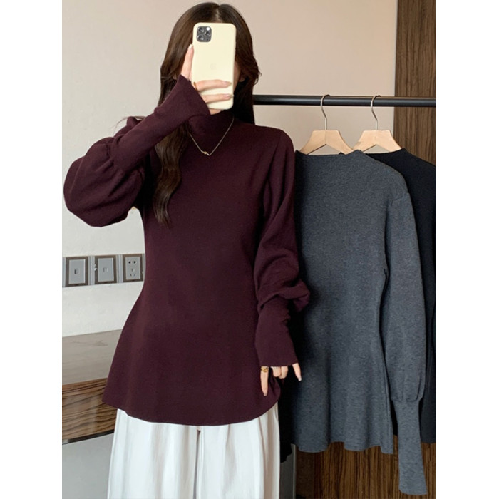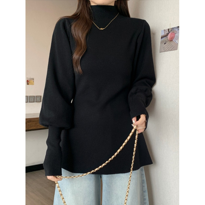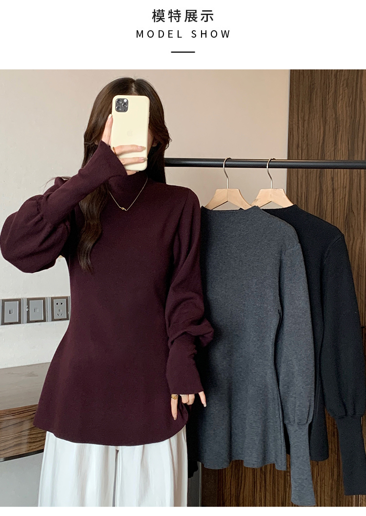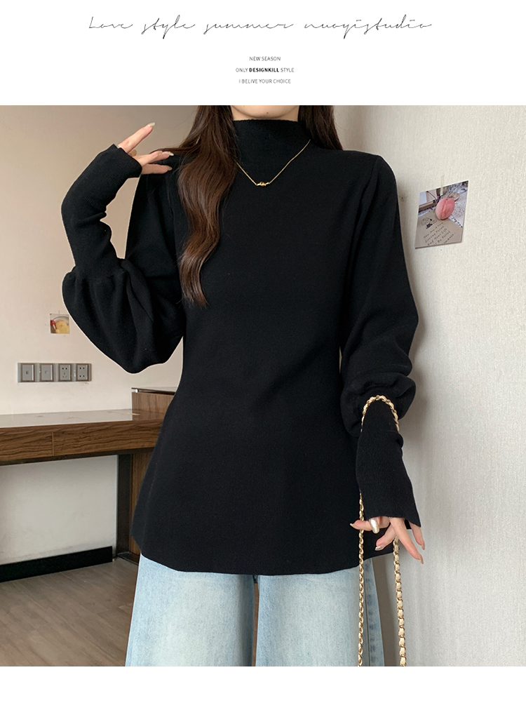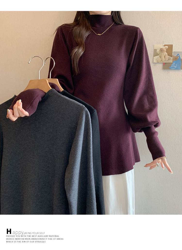 大碼胖MM氣質半高領長袖毛衣女秋冬外穿顯瘦中長款針織衫純色上衣