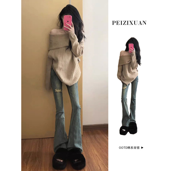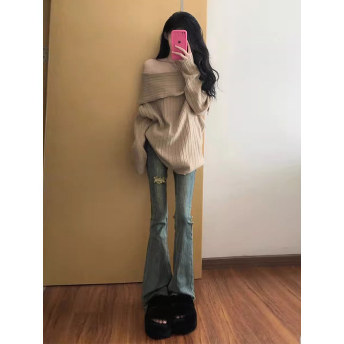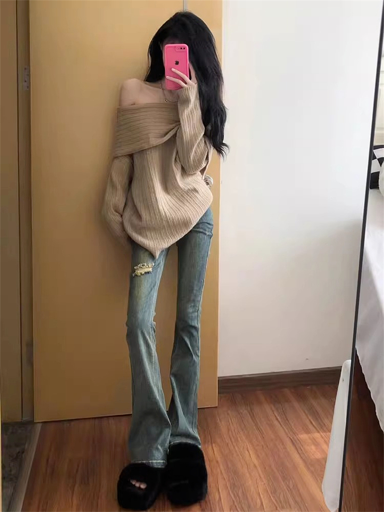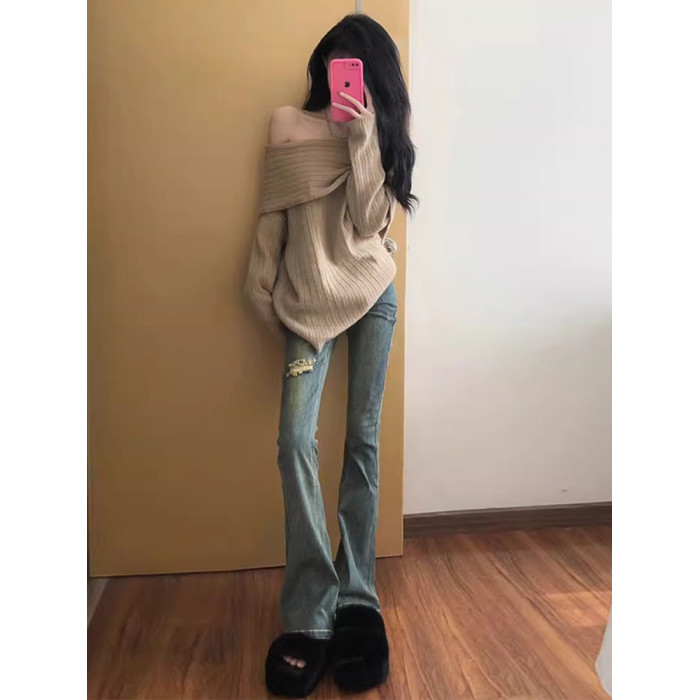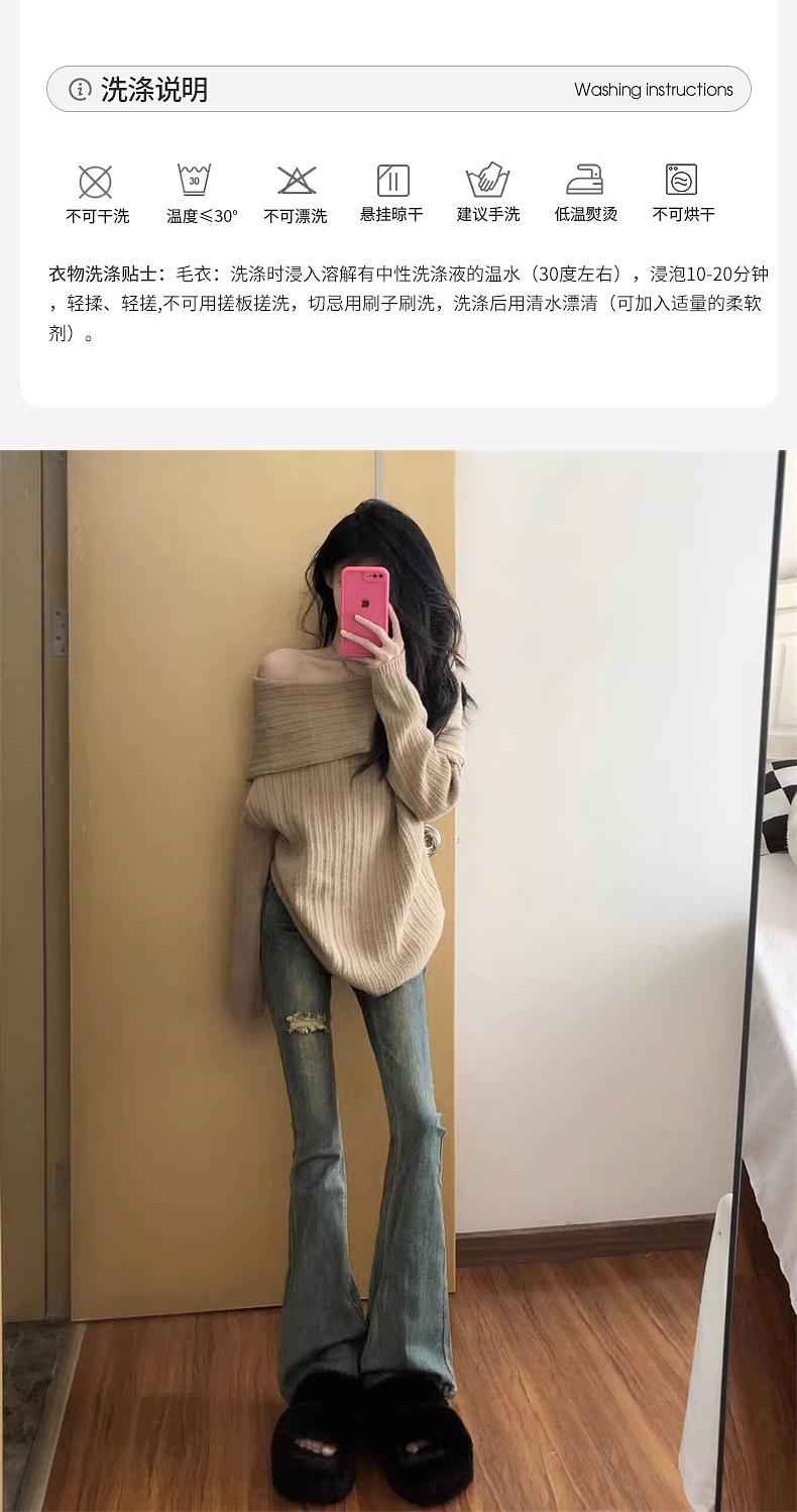 法式慵懶風軟糯內搭一字肩毛衣女秋冬季2025新爆款寬松中長款上衣