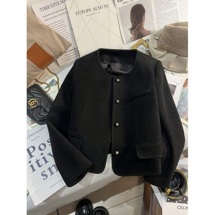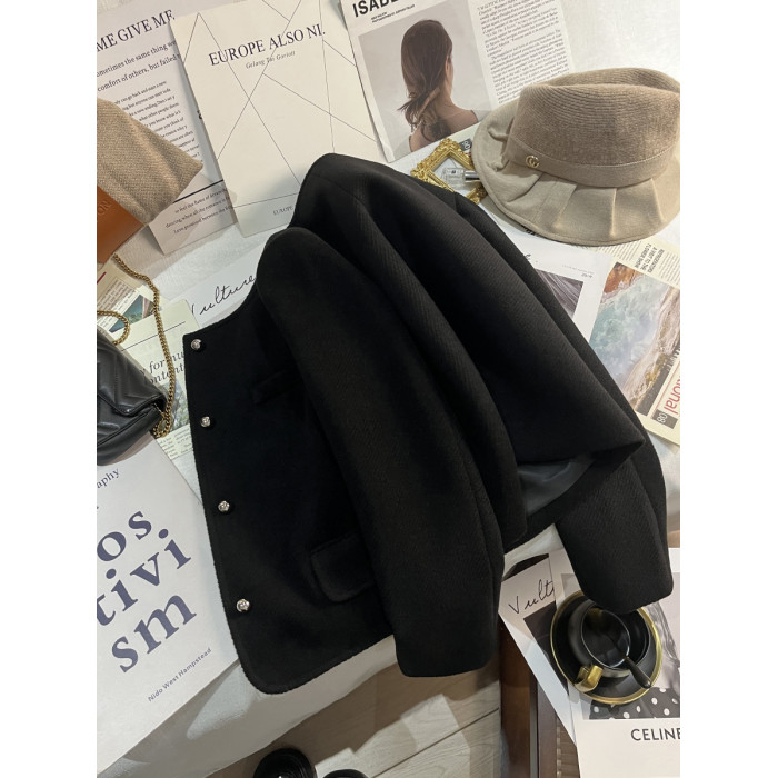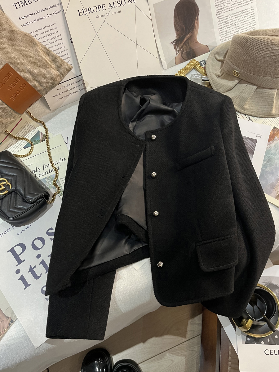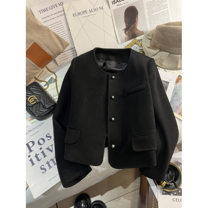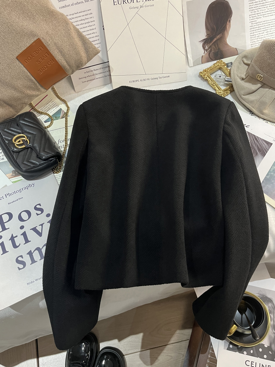 毛呢法式小香風西裝外套女黑色短款2025秋冬季新款高級感氣質百搭