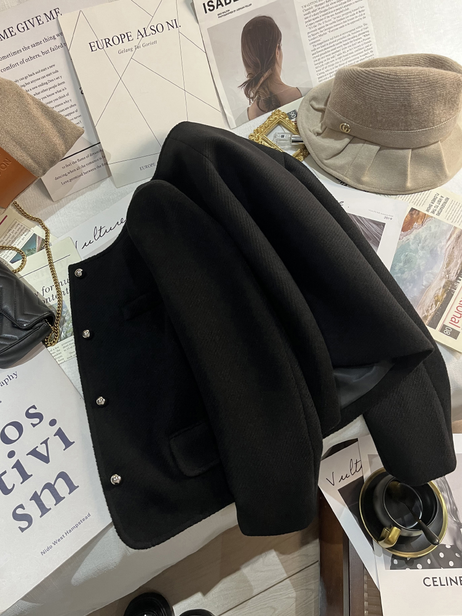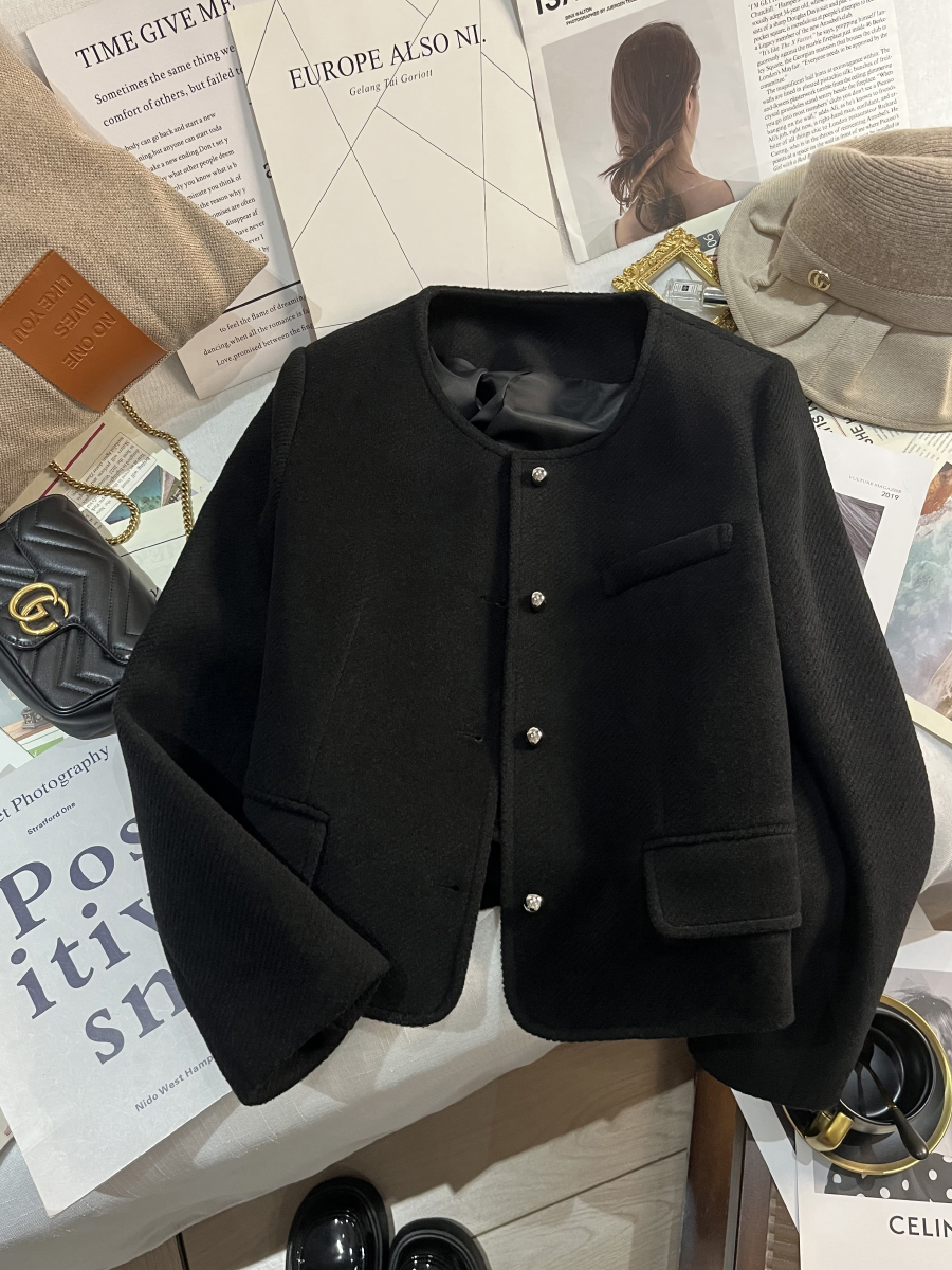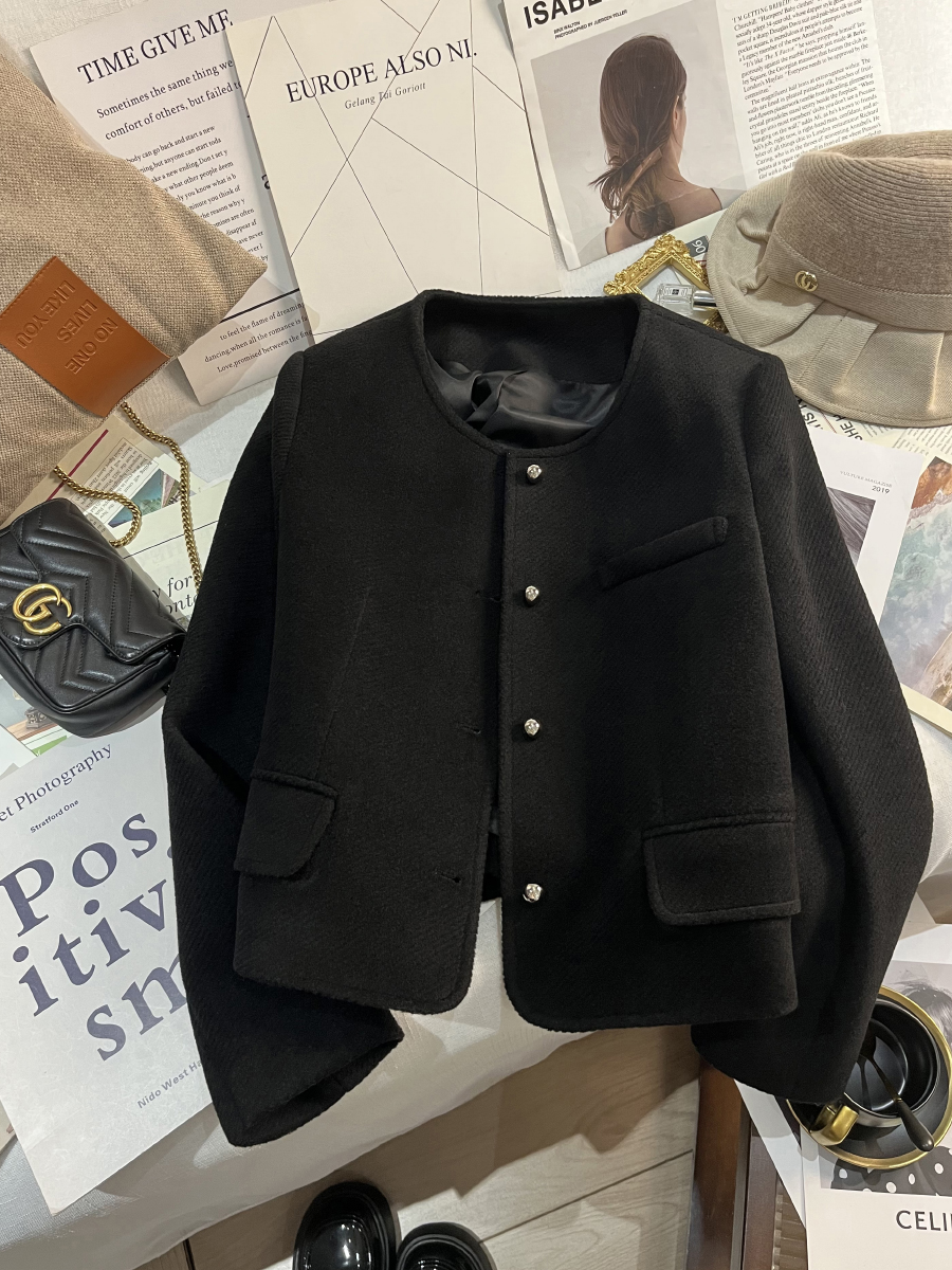 毛呢法式小香風西裝外套女黑色短款2025秋冬季新款高級感氣質百搭