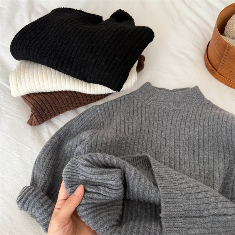布呐呐兒2025童冬季加厚彈力毛衣男女寶寶高領坑條毛衣純色針織衫
