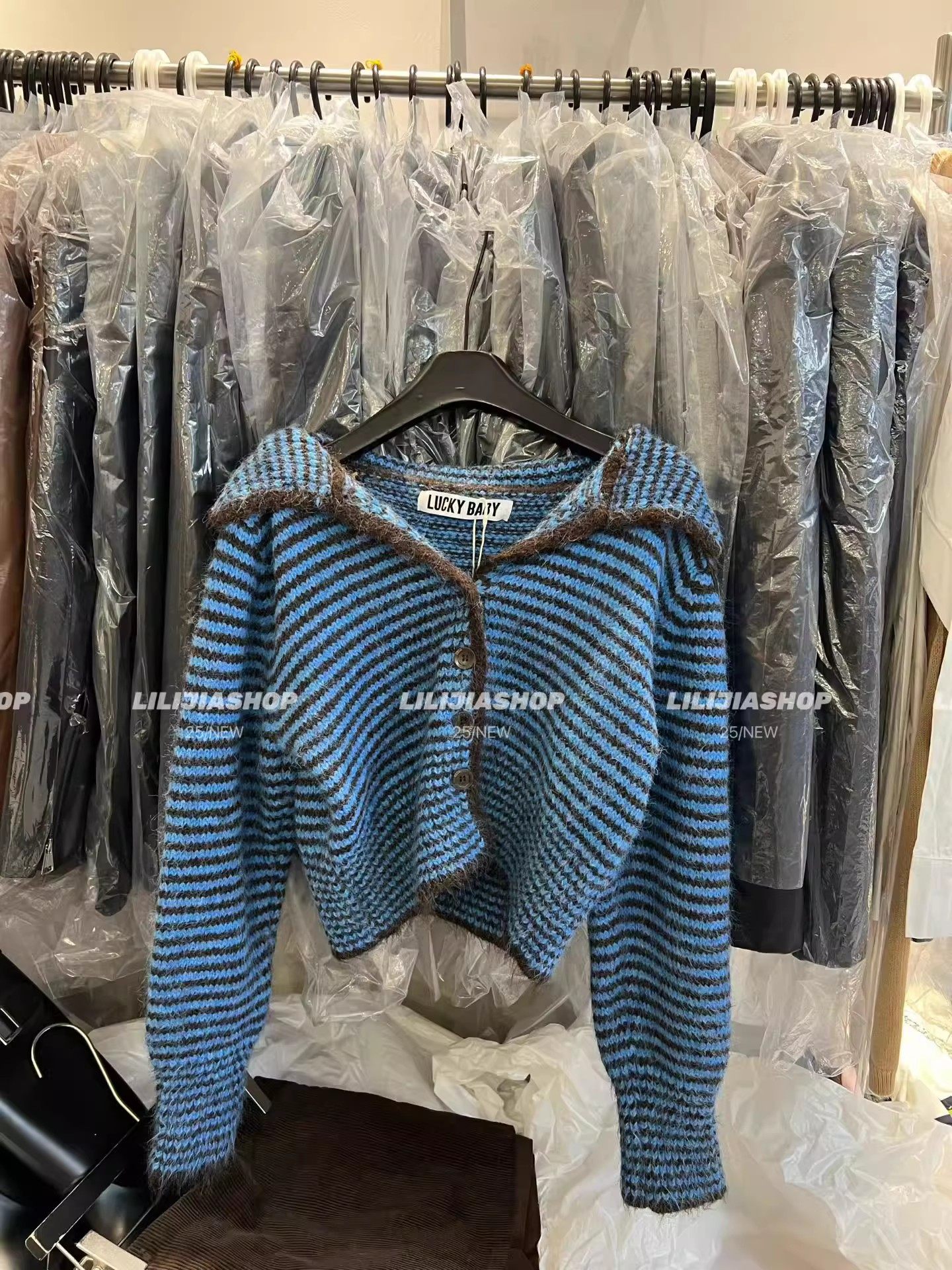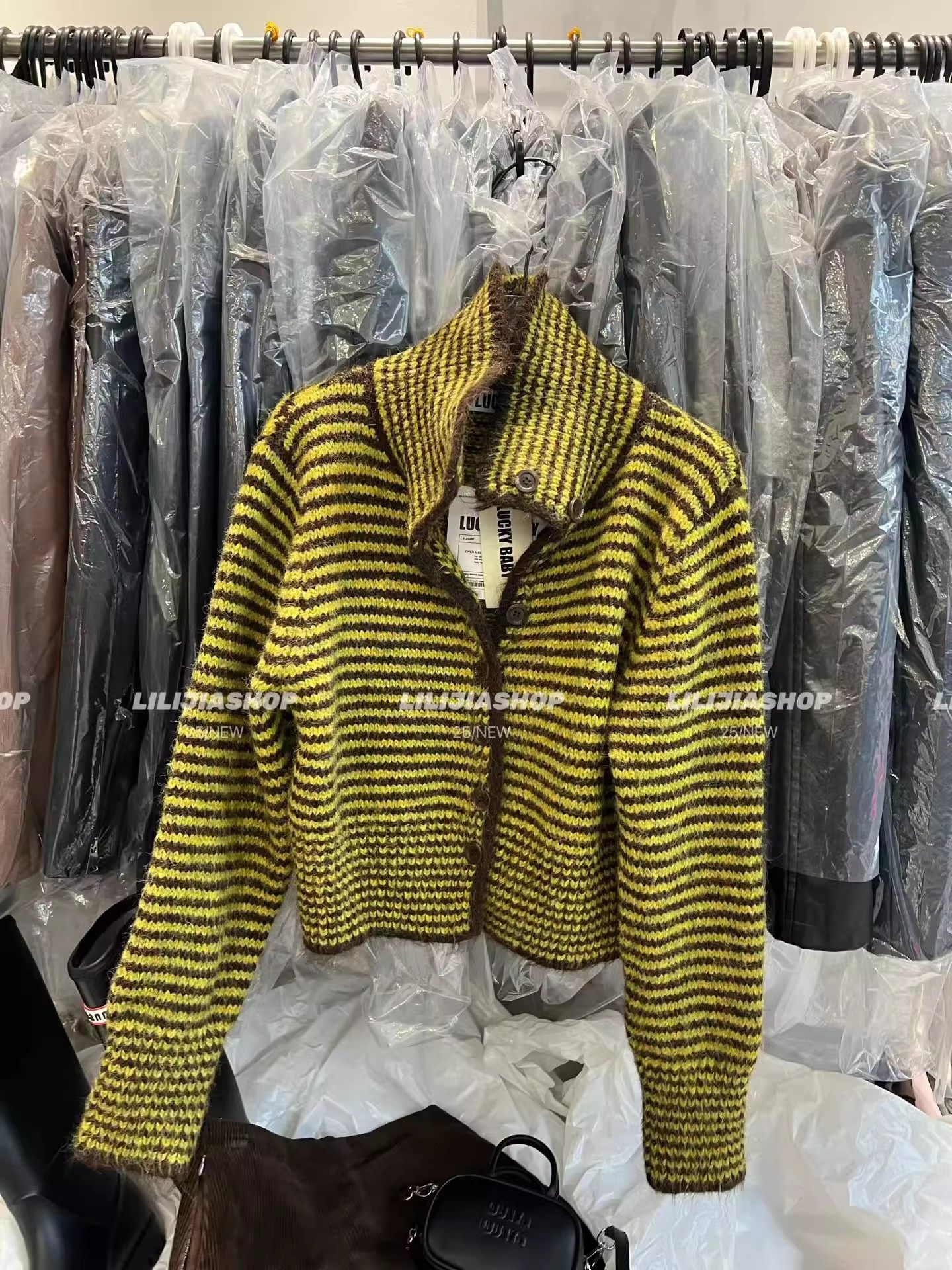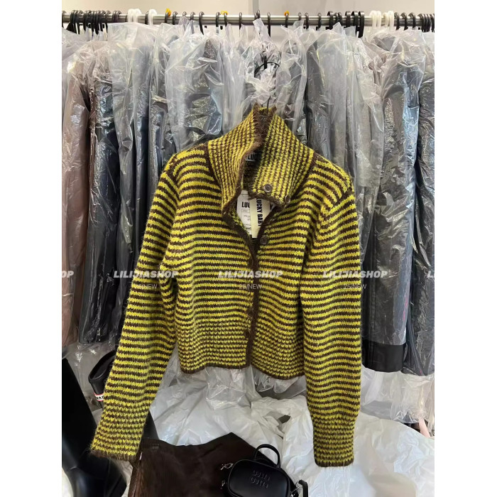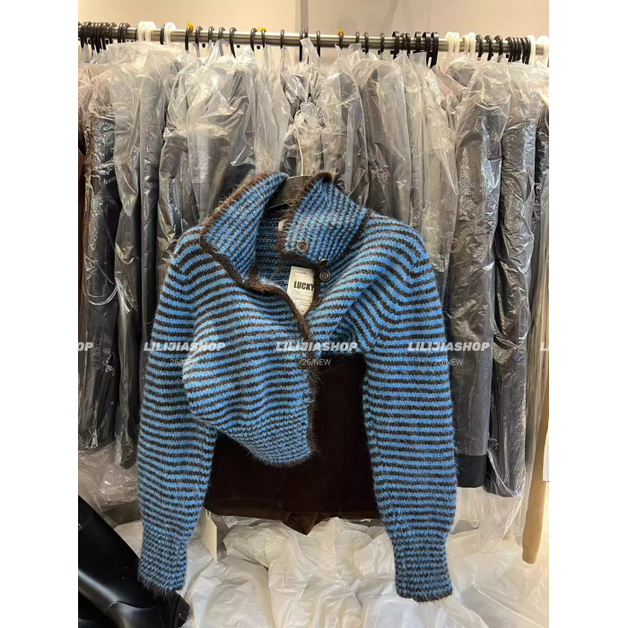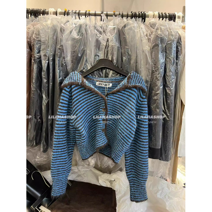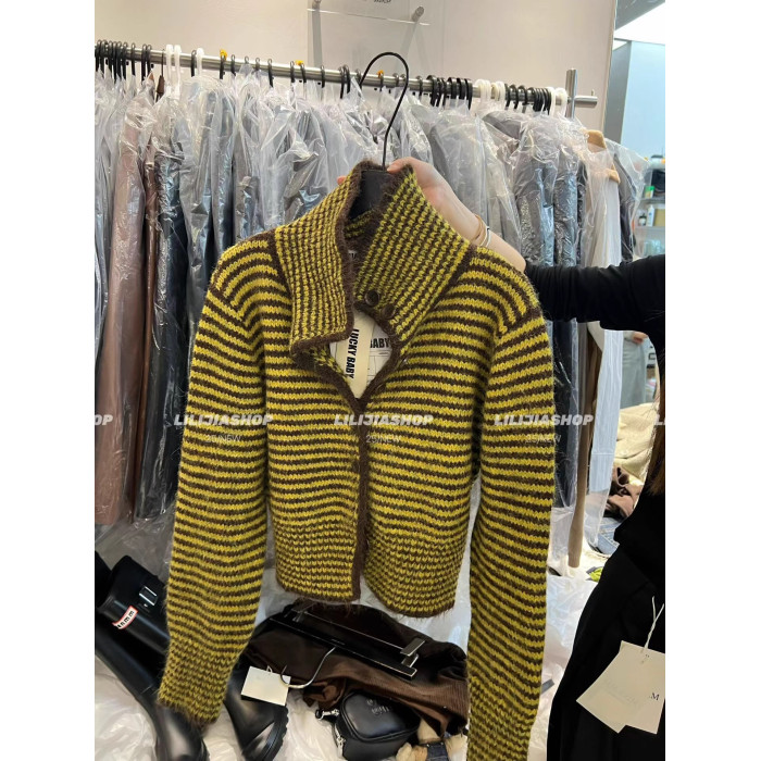 十三行2025秋季新款韓版寬鬆顯瘦復古條紋針織開衫單排釦毛衣外套