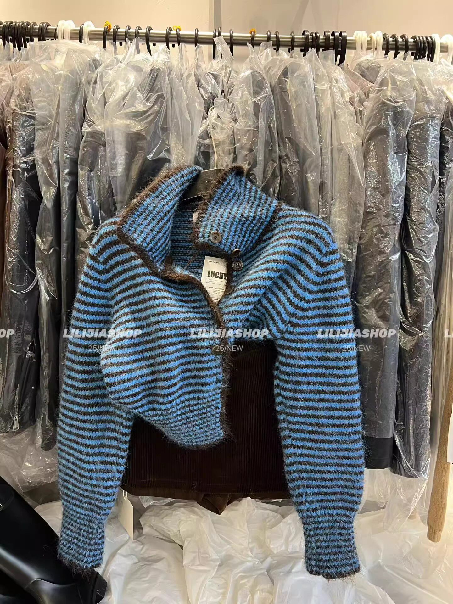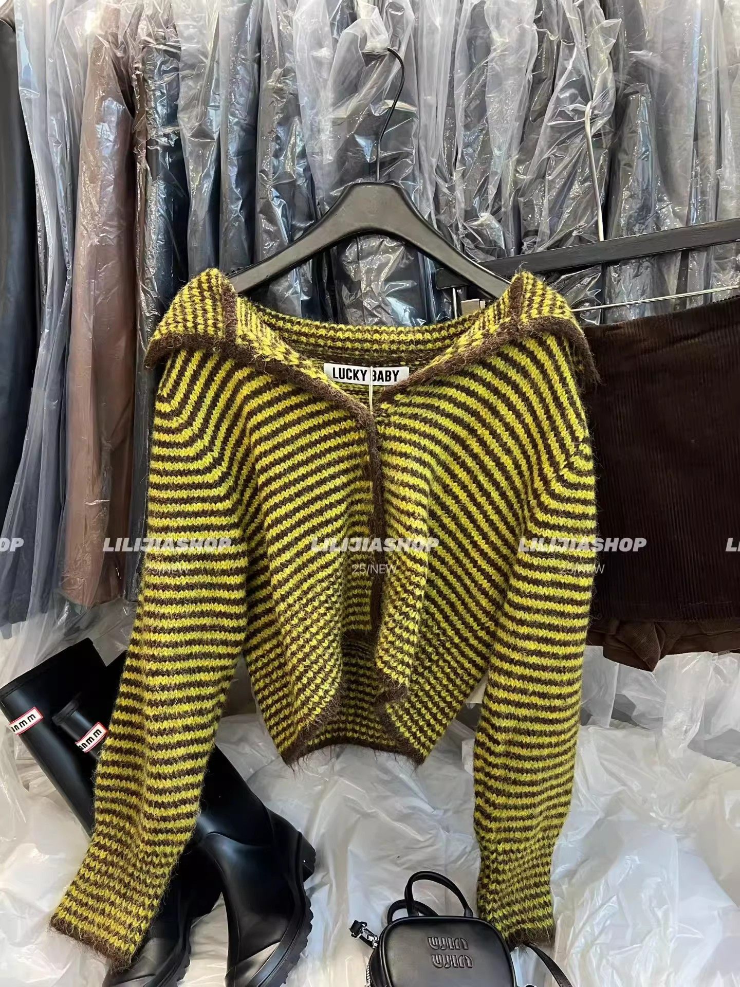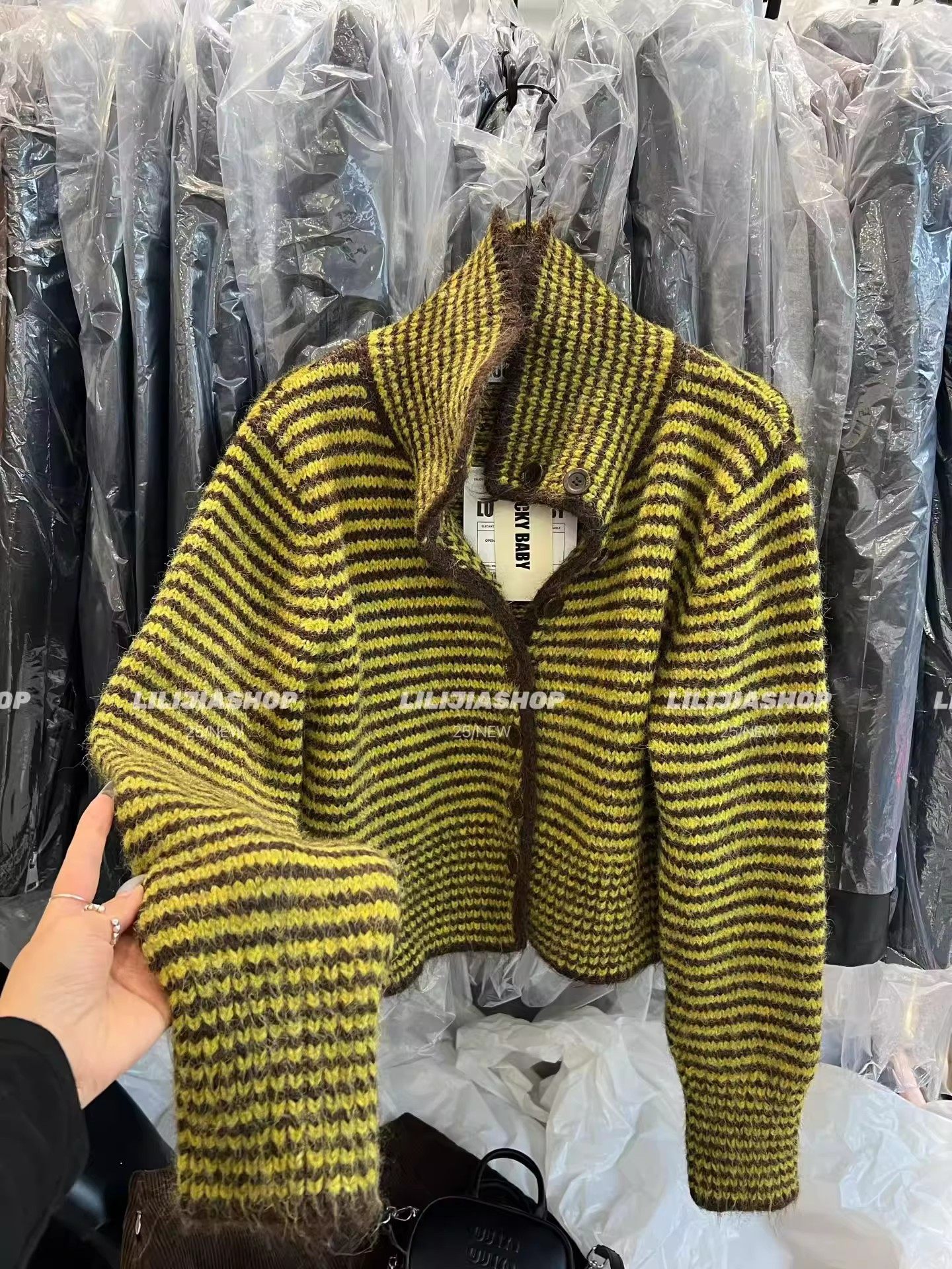 十三行2025秋季新款韓版寬鬆顯瘦復古條紋針織開衫單排釦毛衣外套