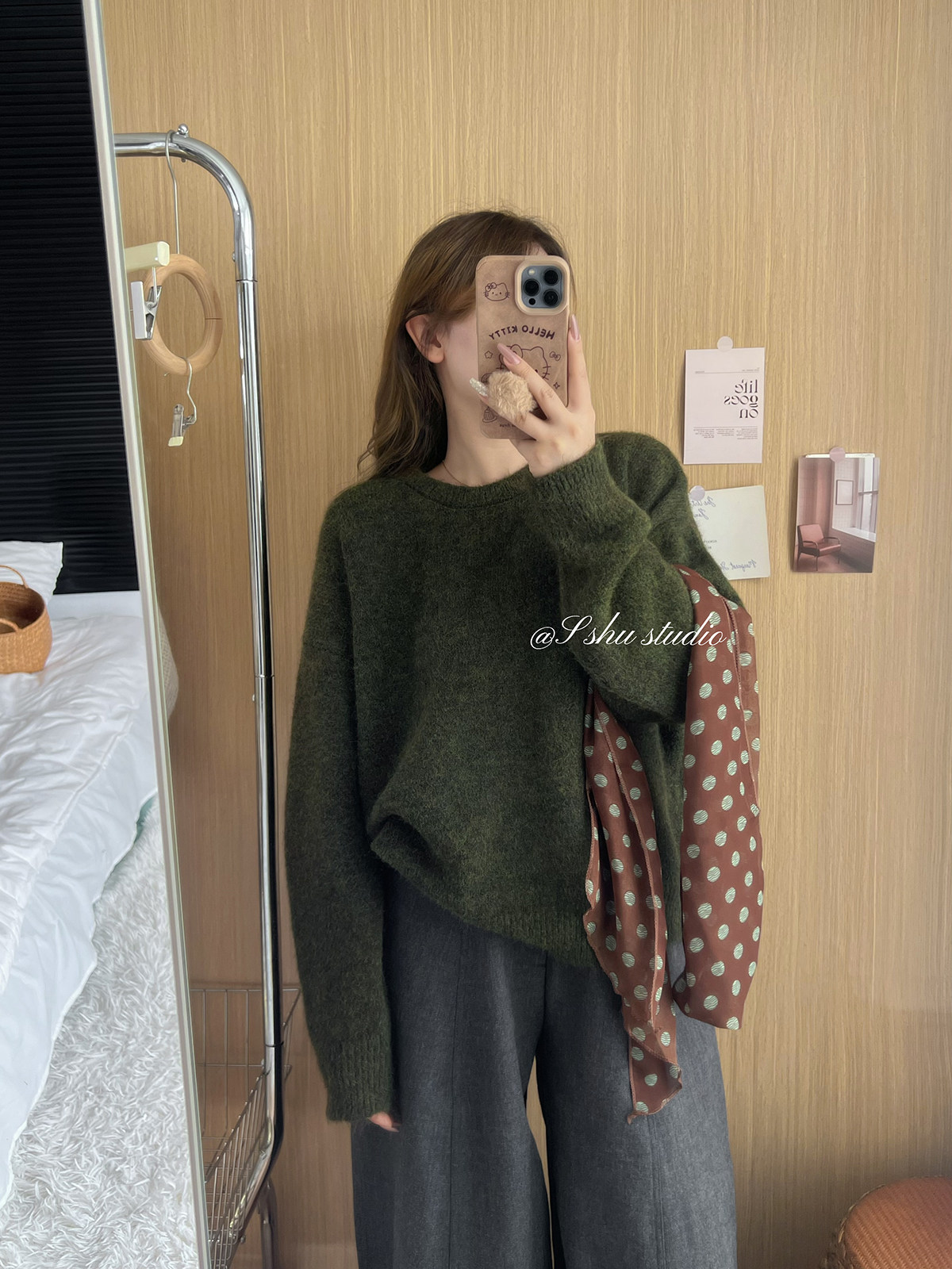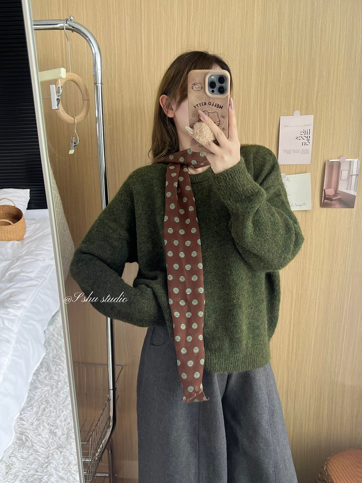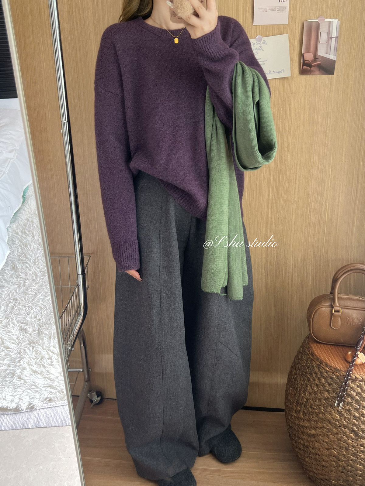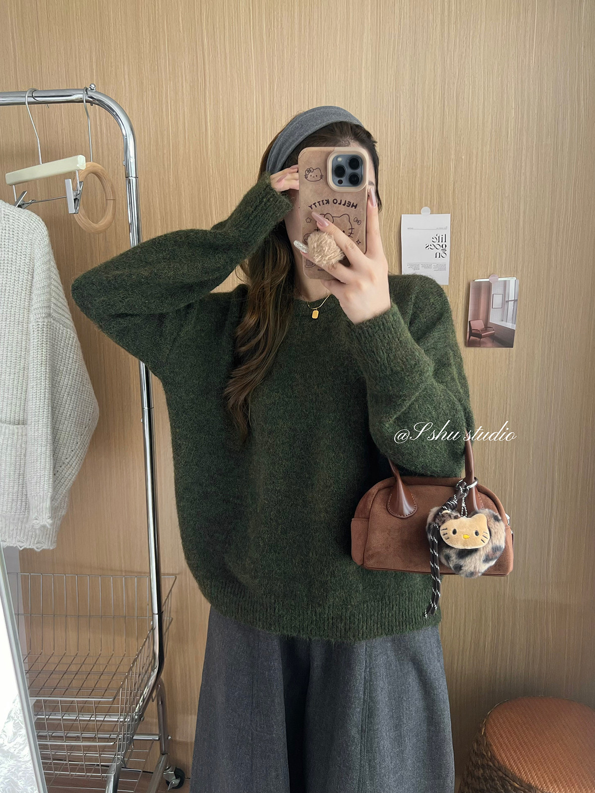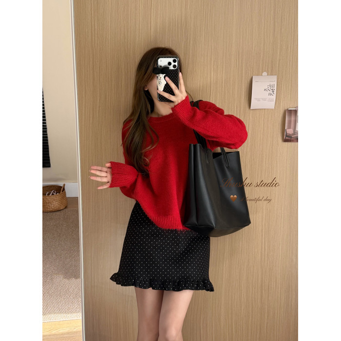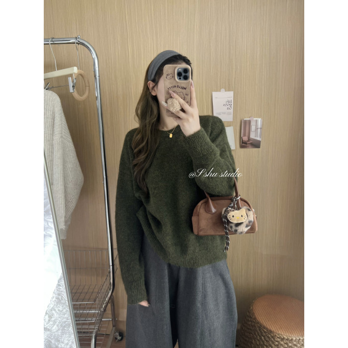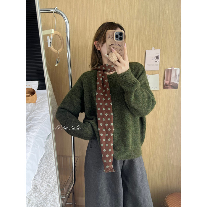韓系簡約溫柔慵嬾風綠色圓領毛衣女寬鬆百搭針織上衣秋冬內搭
