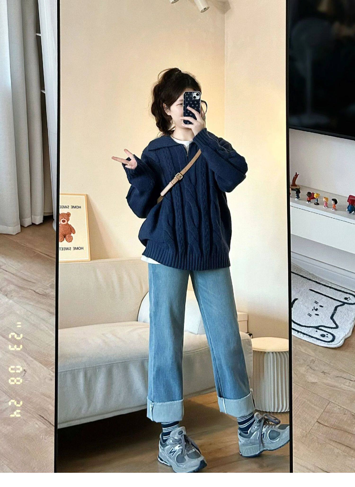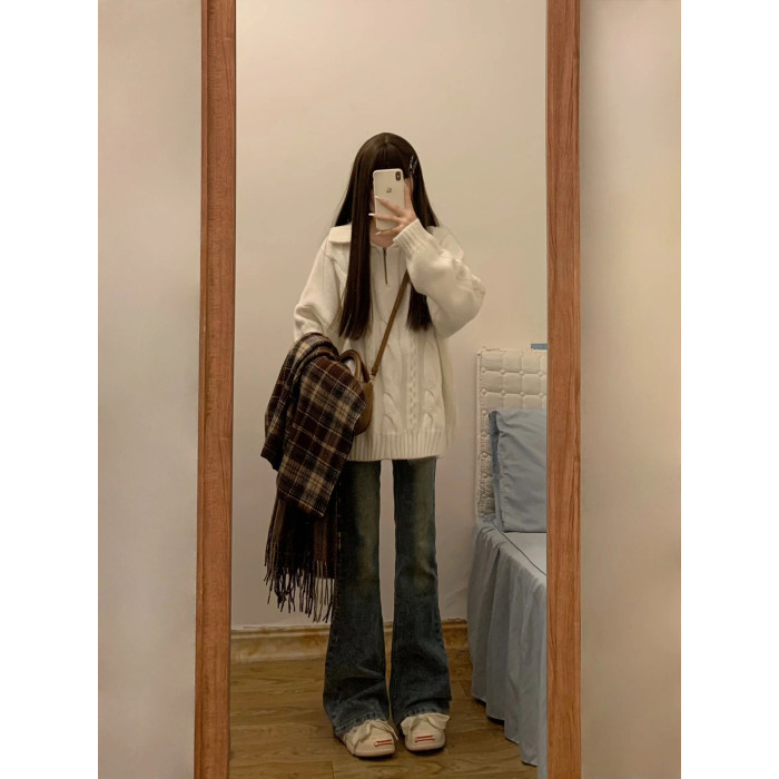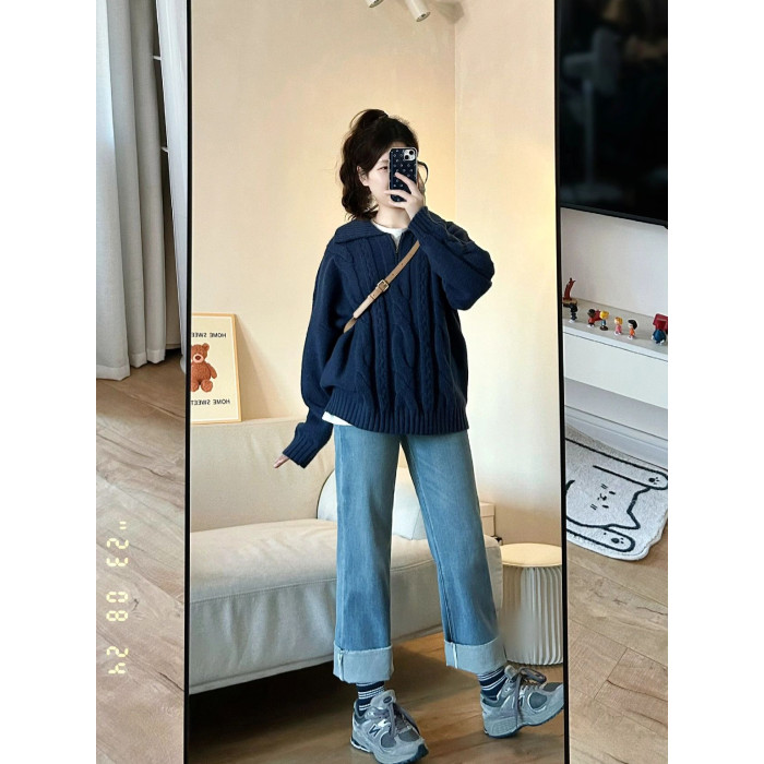 爆款軟糯學院風復古半拉鍊毛衣女秋冬2025新款慵嬾繙領寬鬆上衣厚