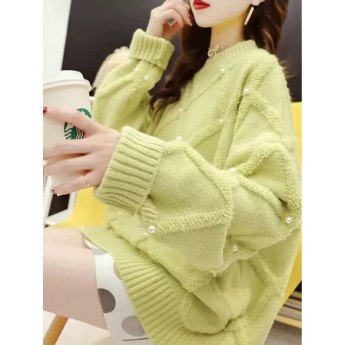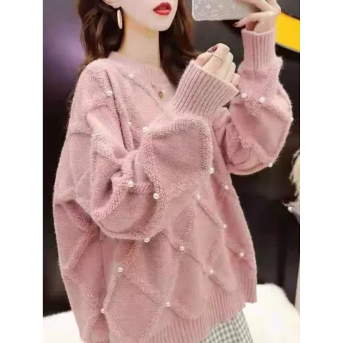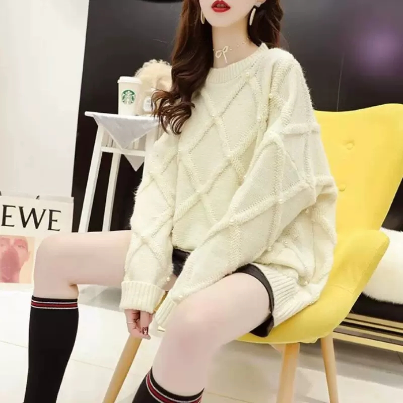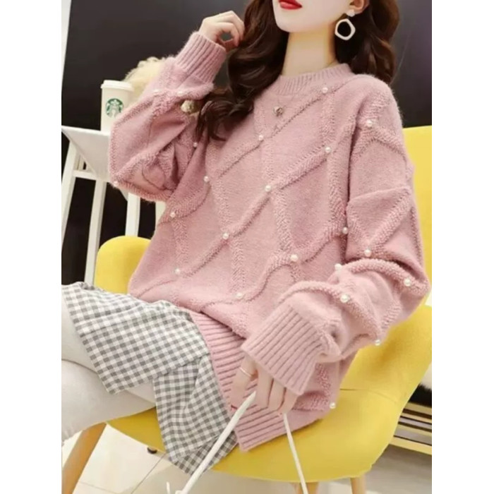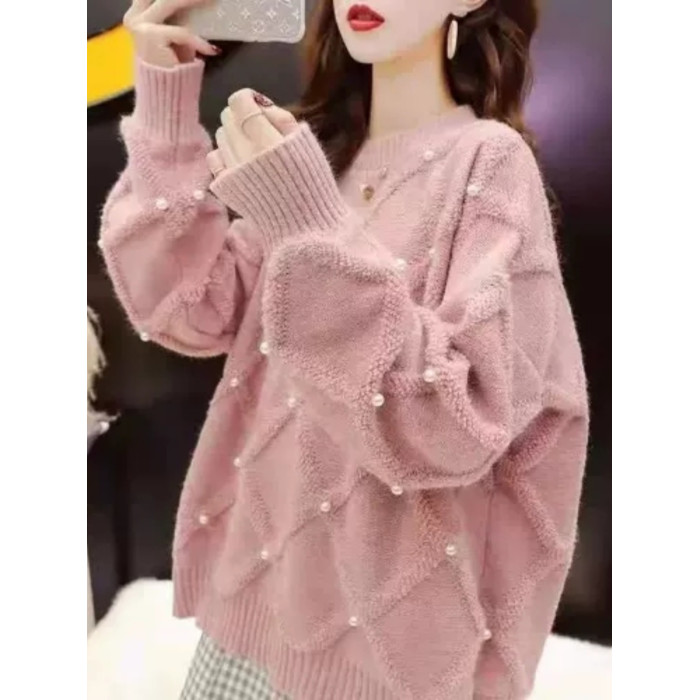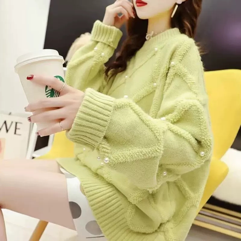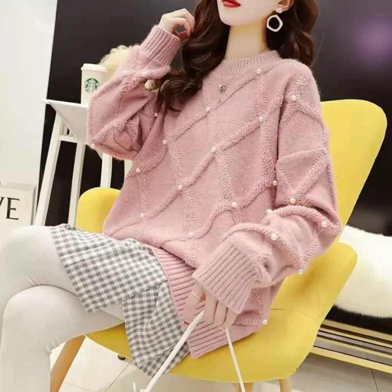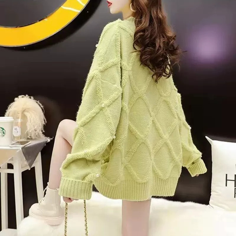 大碼300斤加厚毛衣女秋冬胖mm寬松慵懶風設計感小衆釘珠針織上衣
