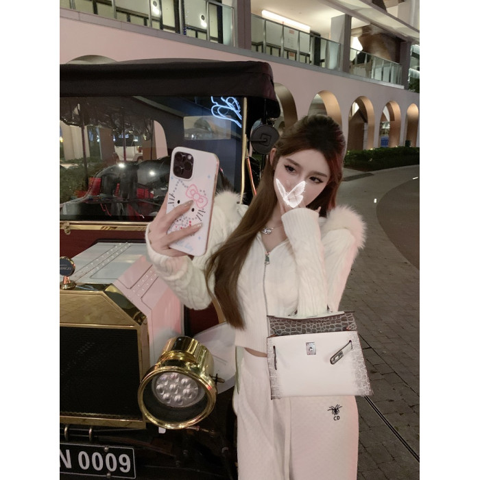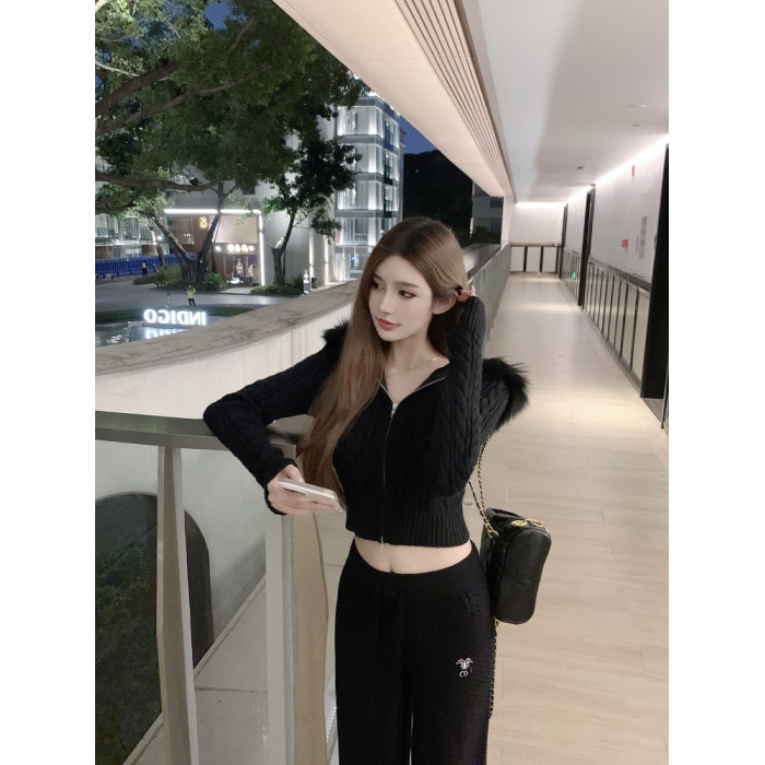 luna潞娜10.21新品毛毛連帽毛衣開衫純欲風針織衫短外套