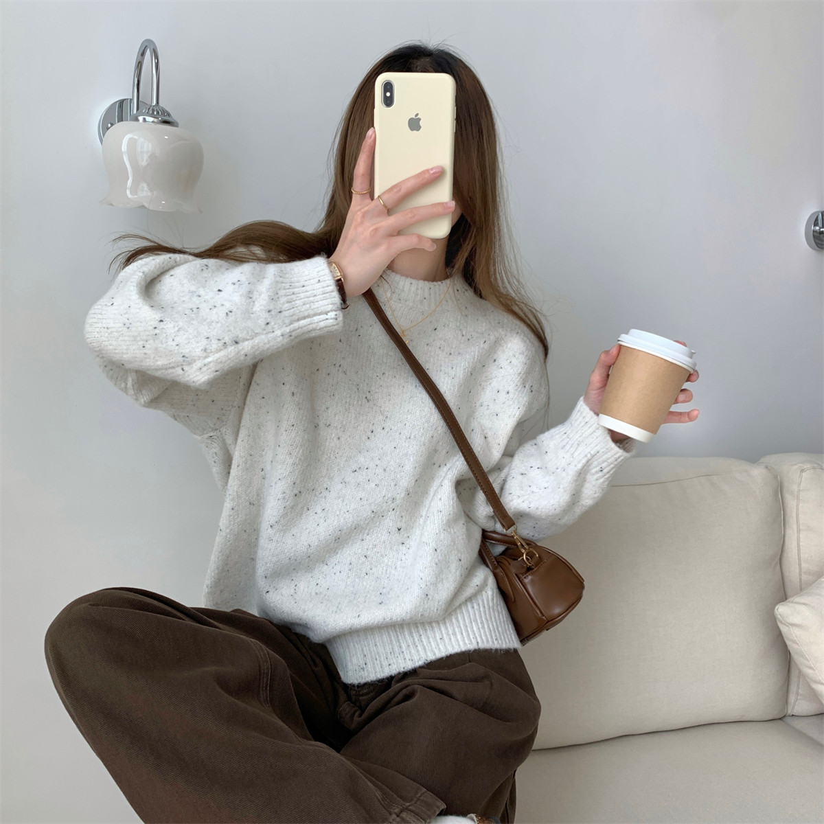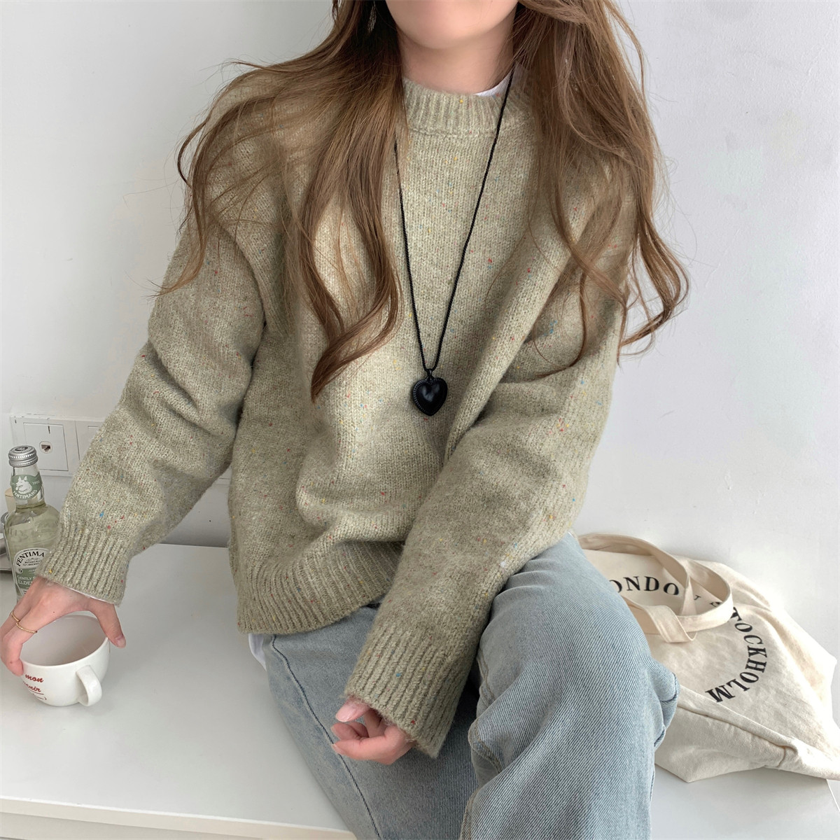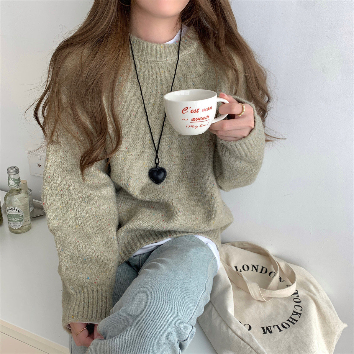 日系復古軟糯套頭曡穿毛衣女秋季慵懶風小個子寬鬆休閒圓領針織衫