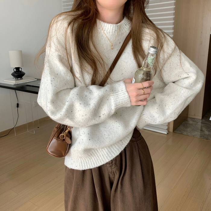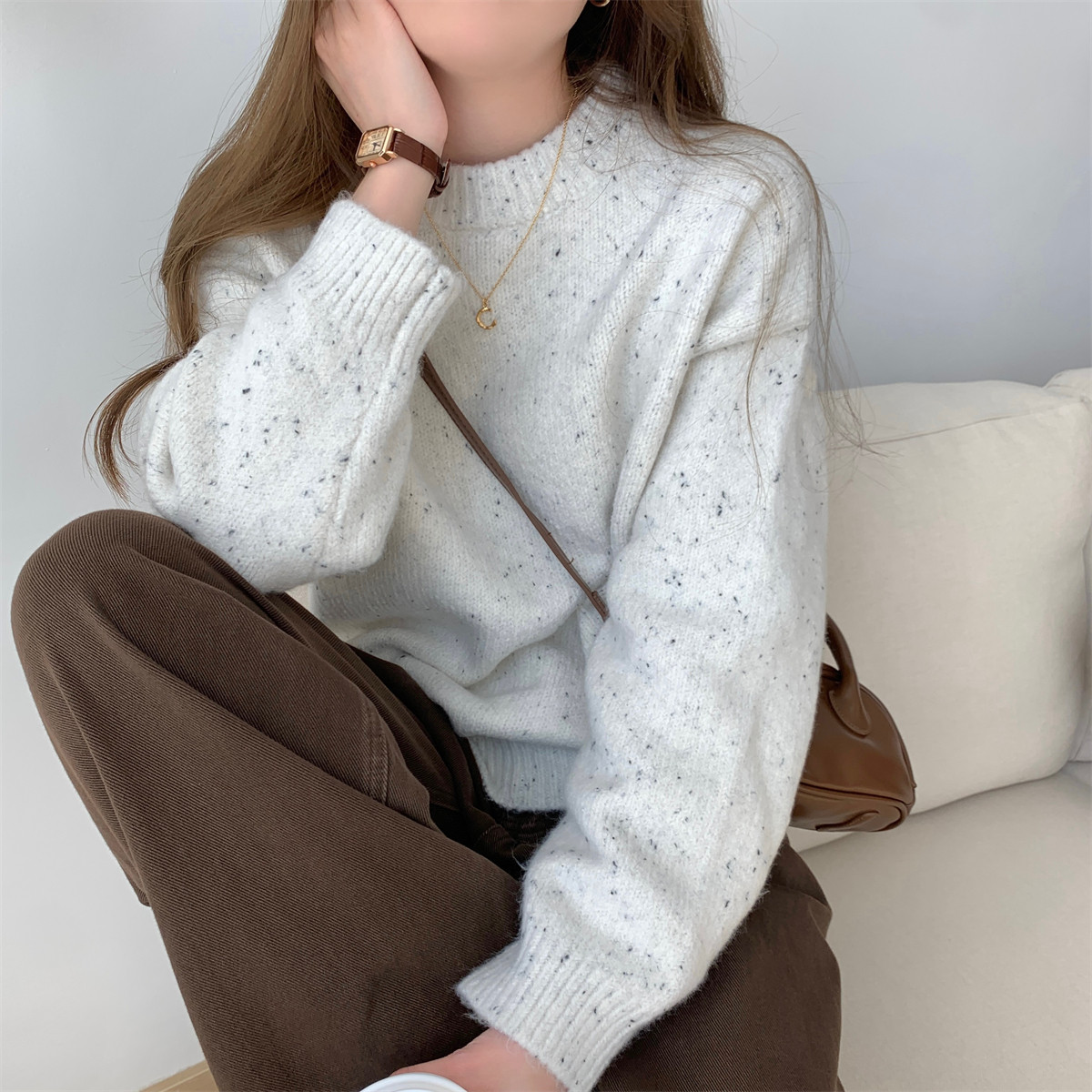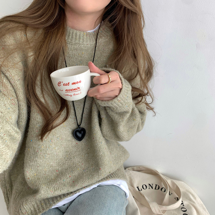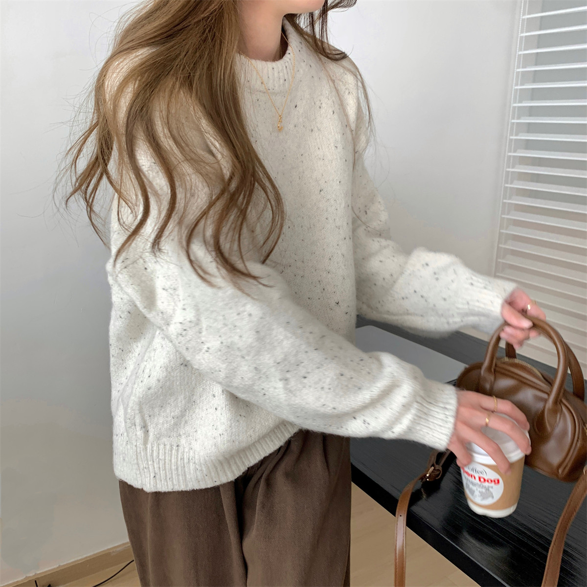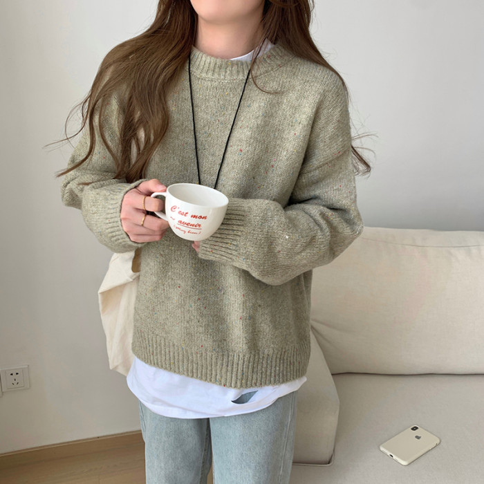 日系復古軟糯套頭曡穿毛衣女秋季慵懶風小個子寬鬆休閒圓領針織衫
