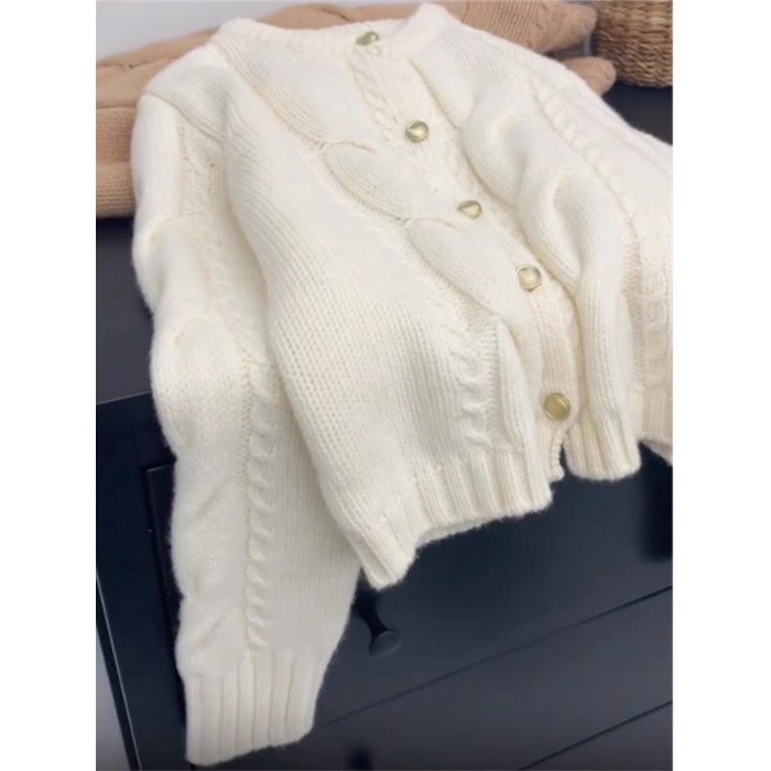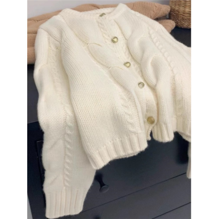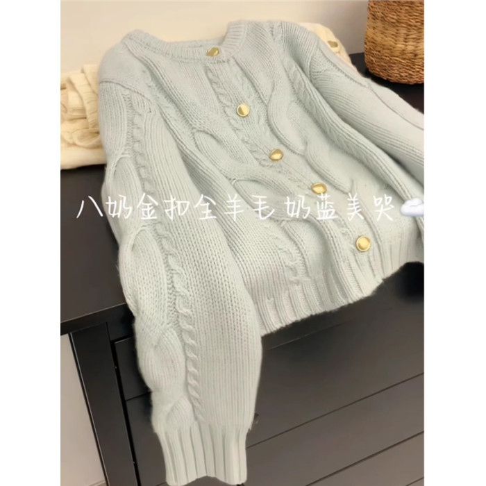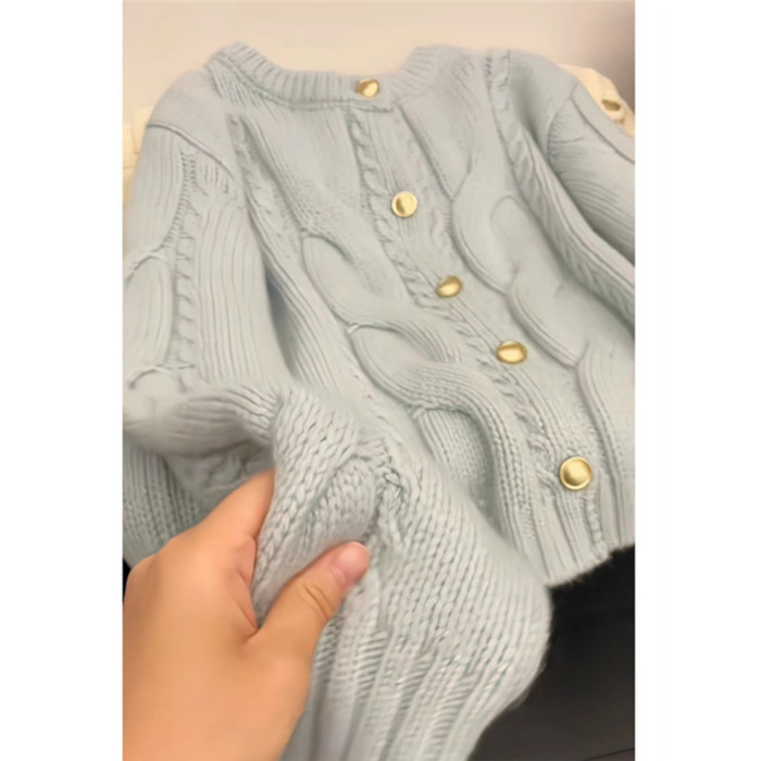 小香風藍色麻花浣熊絨毛衣針織開衫女秋冬寬松慵懶風軟糯上衣外套