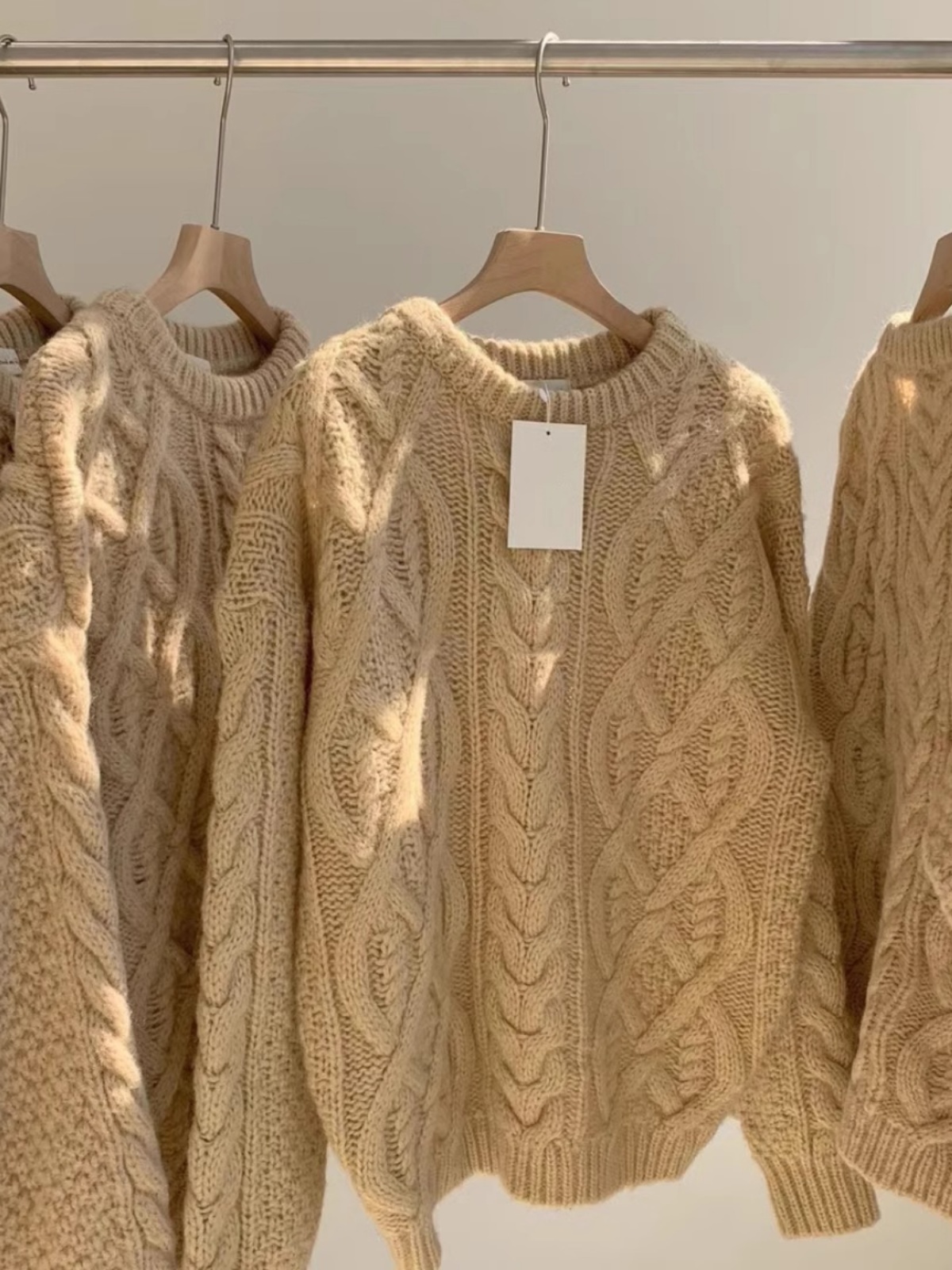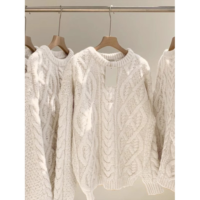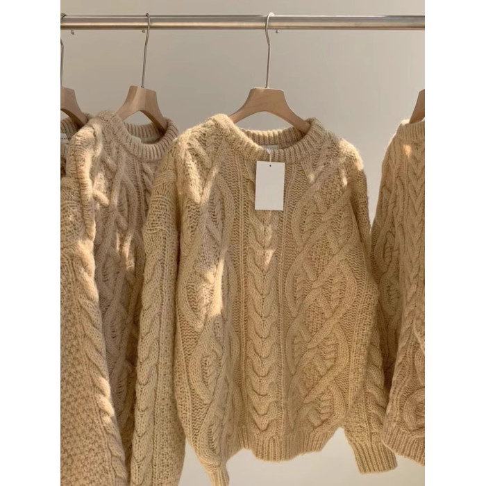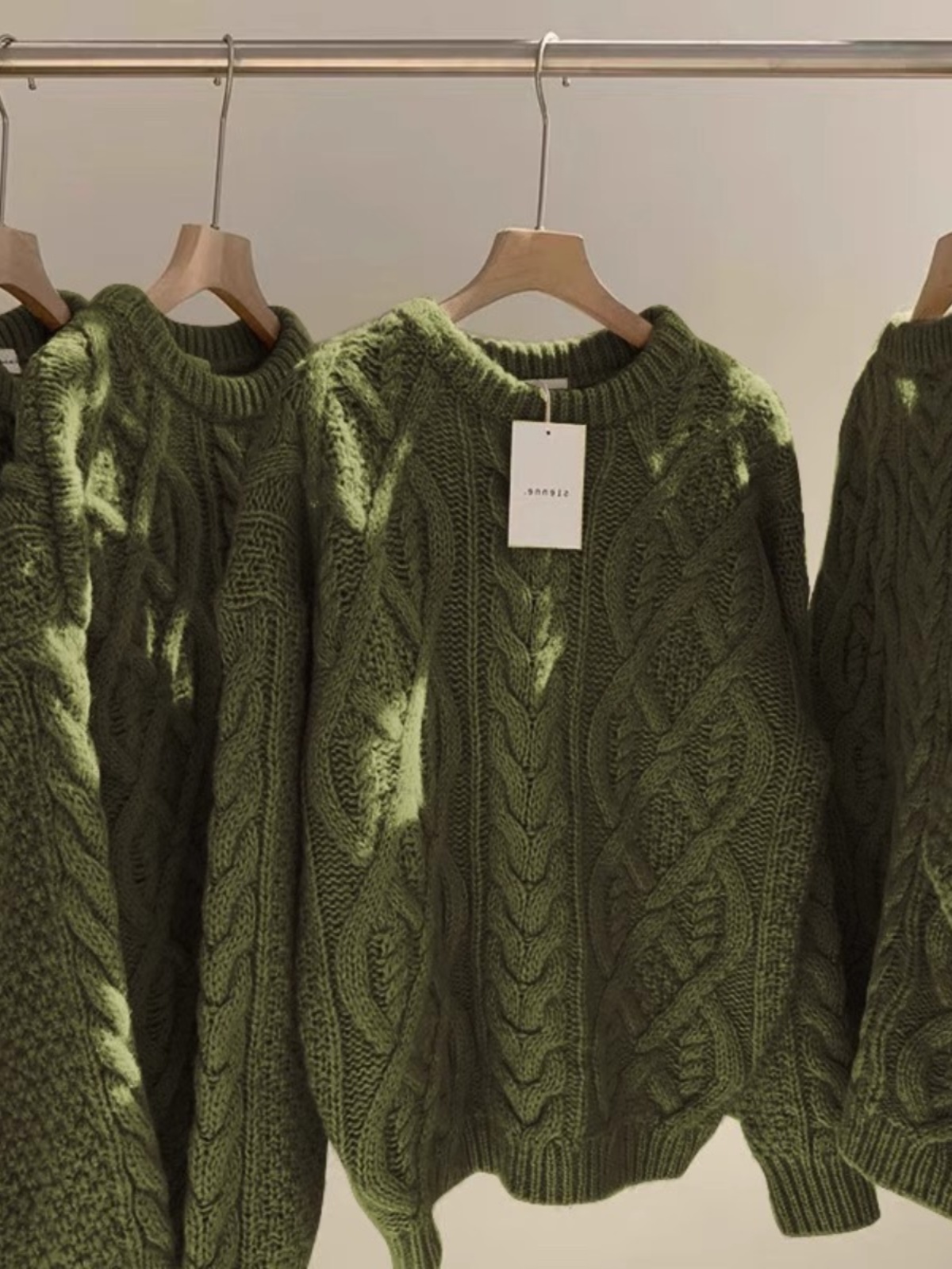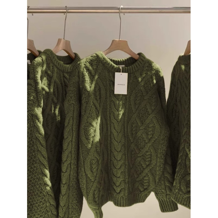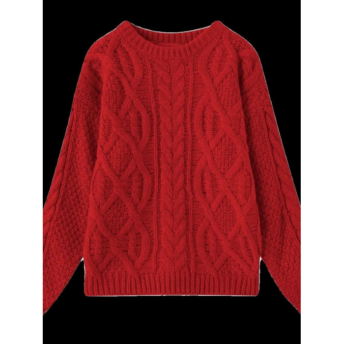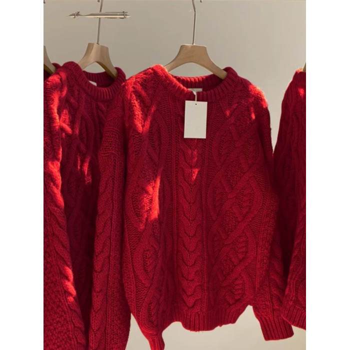 新年紅麻花毛衣女秋冬復古高級感超好看慵懶重工軟糯粗線針織上衣