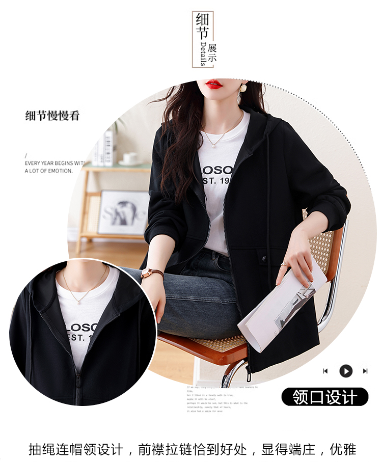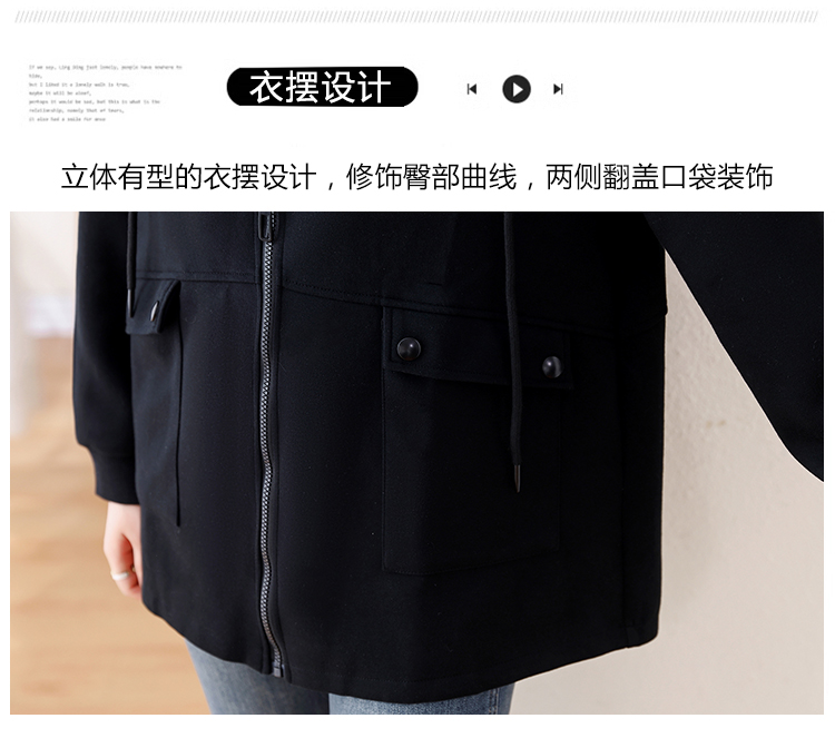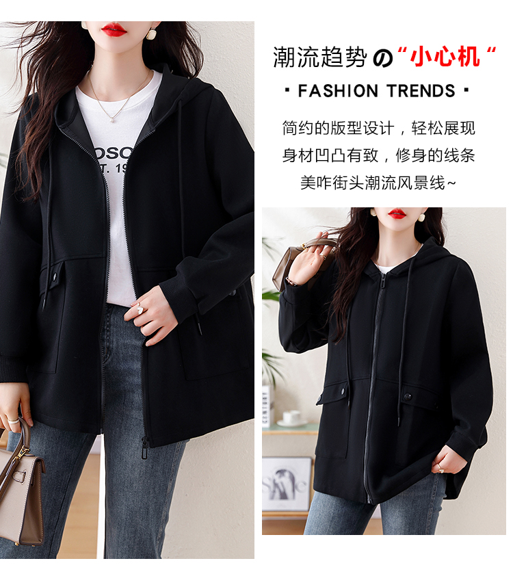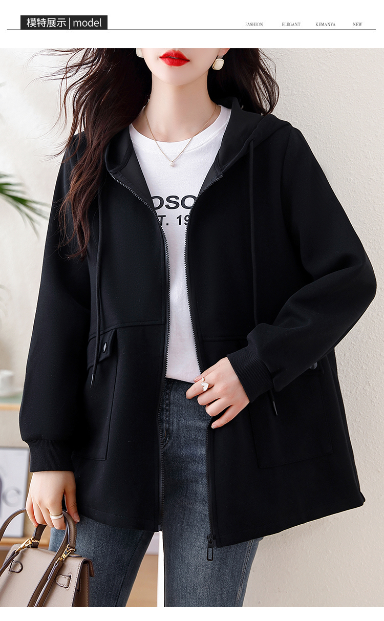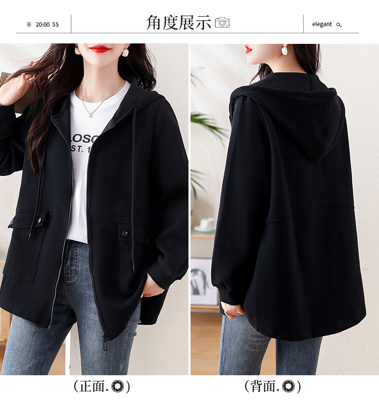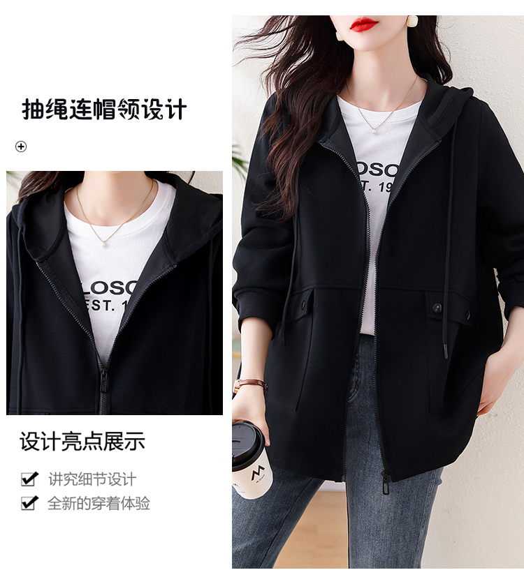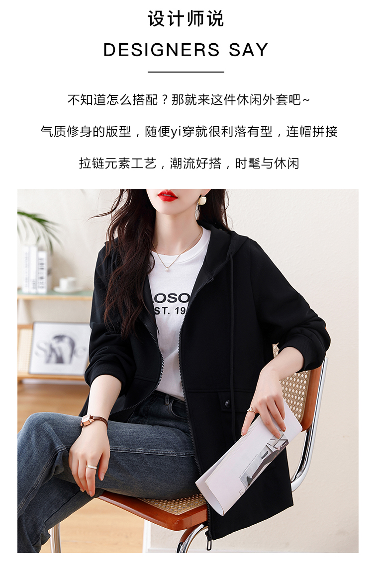 九月陌墨寬松休閒短外套開衫衛衣女裝春秋季時尚寬松休閒連帽外套