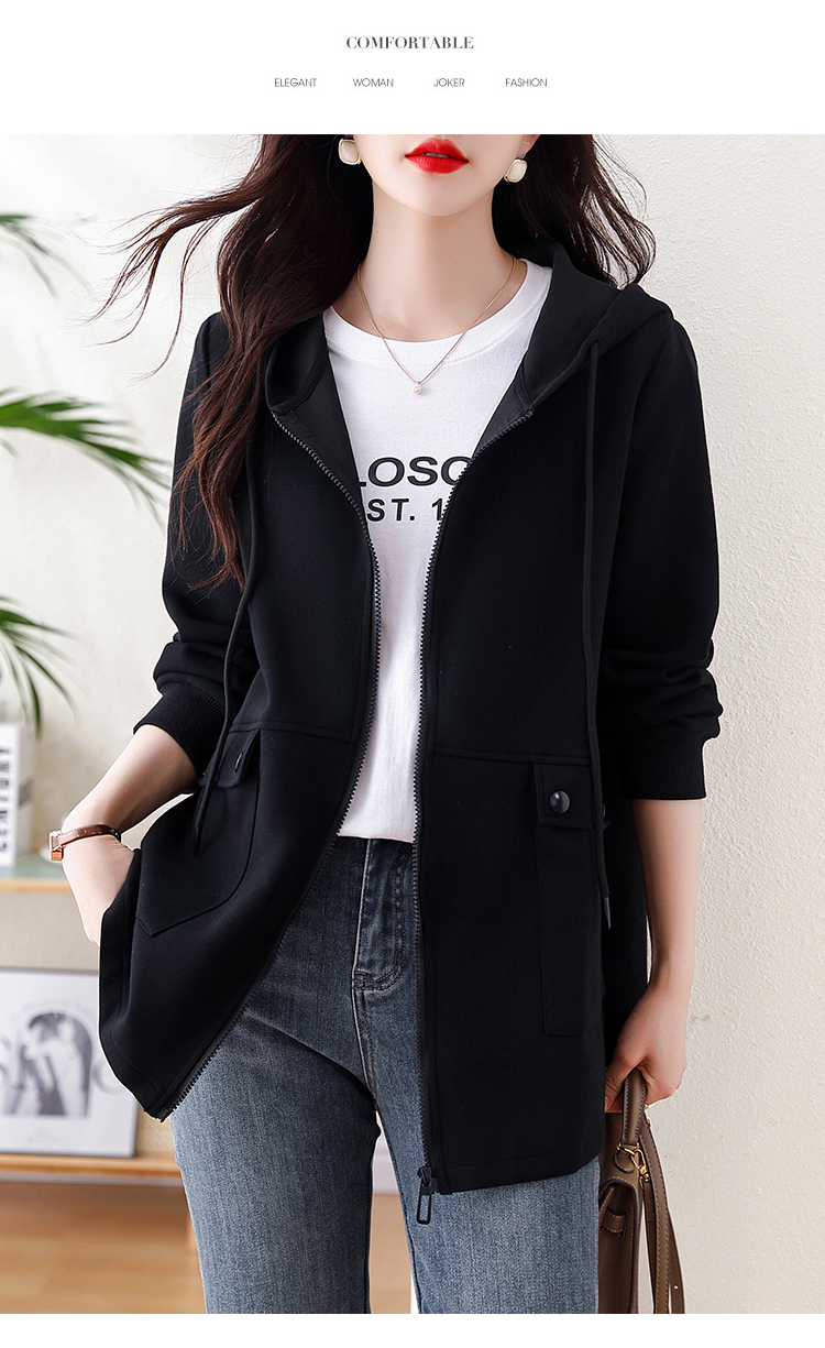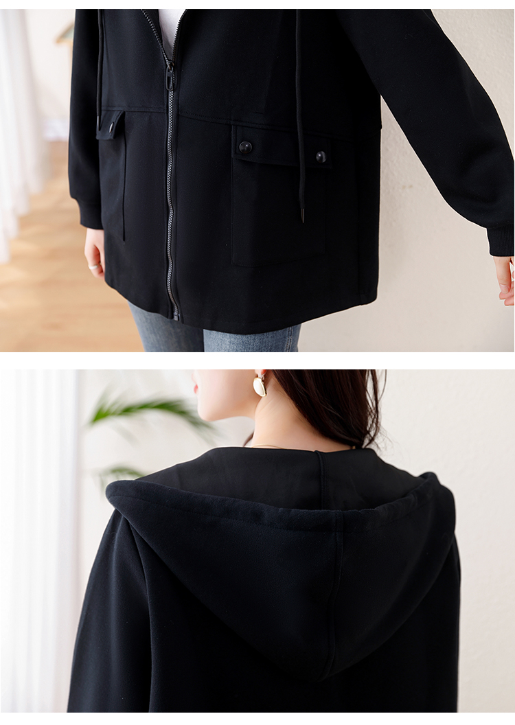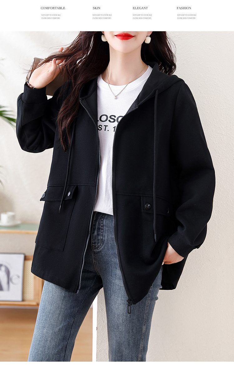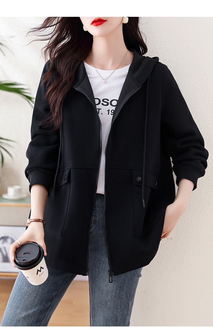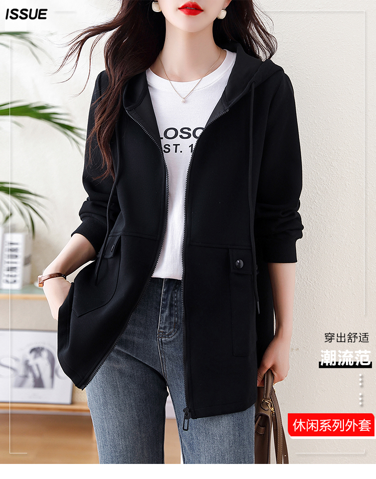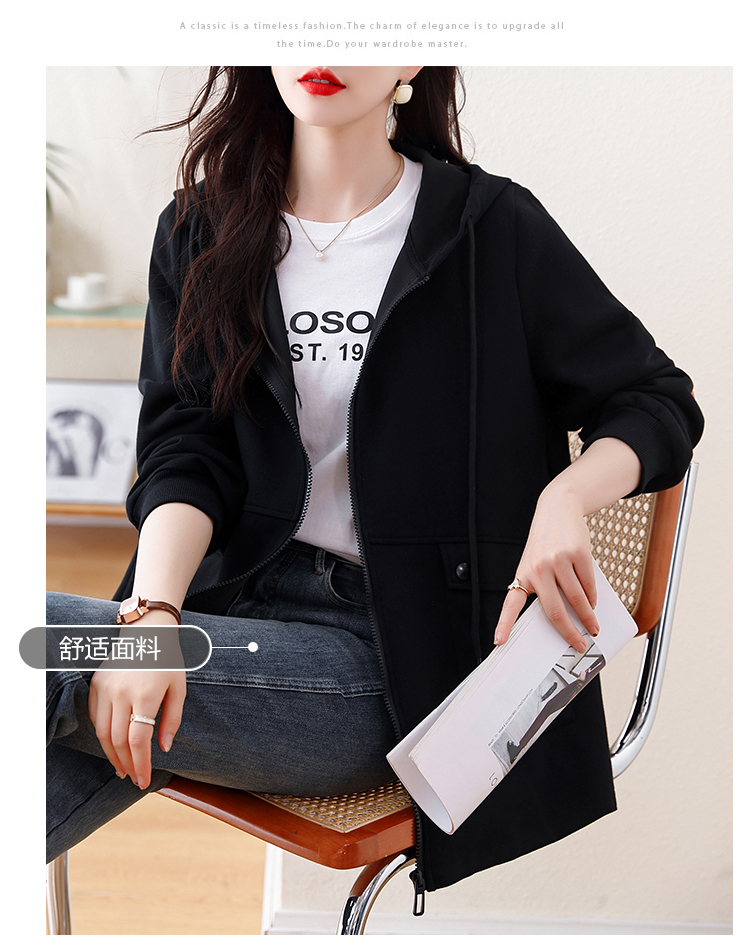 九月陌墨寬松休閒短外套開衫衛衣女裝春秋季時尚寬松休閒連帽外套