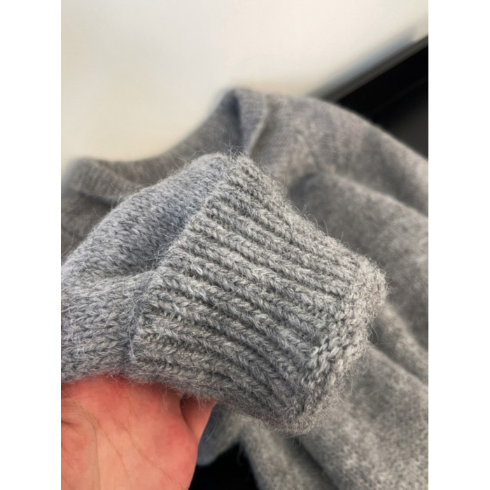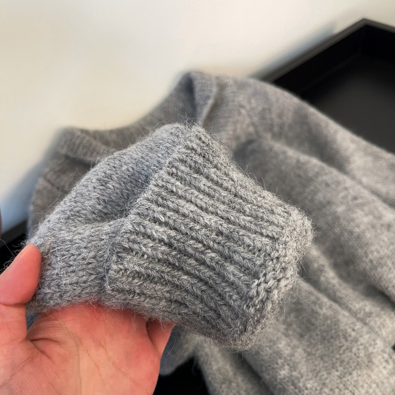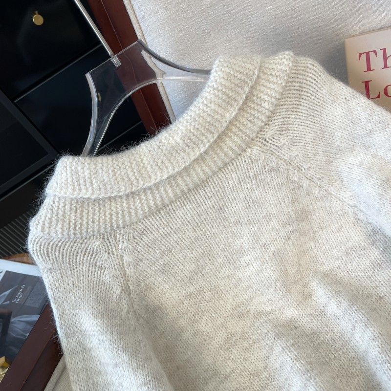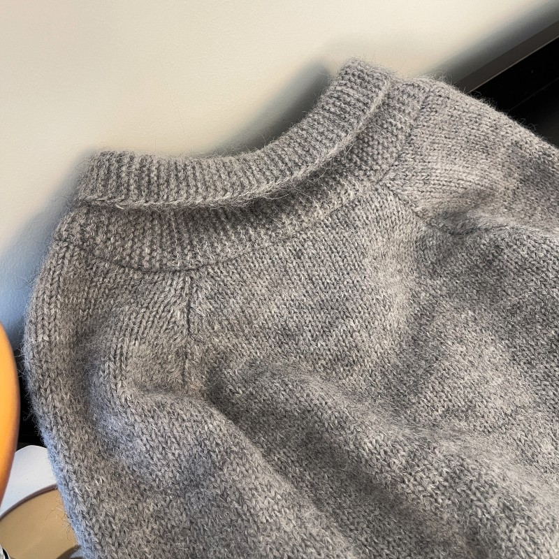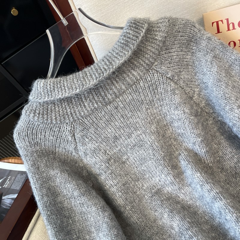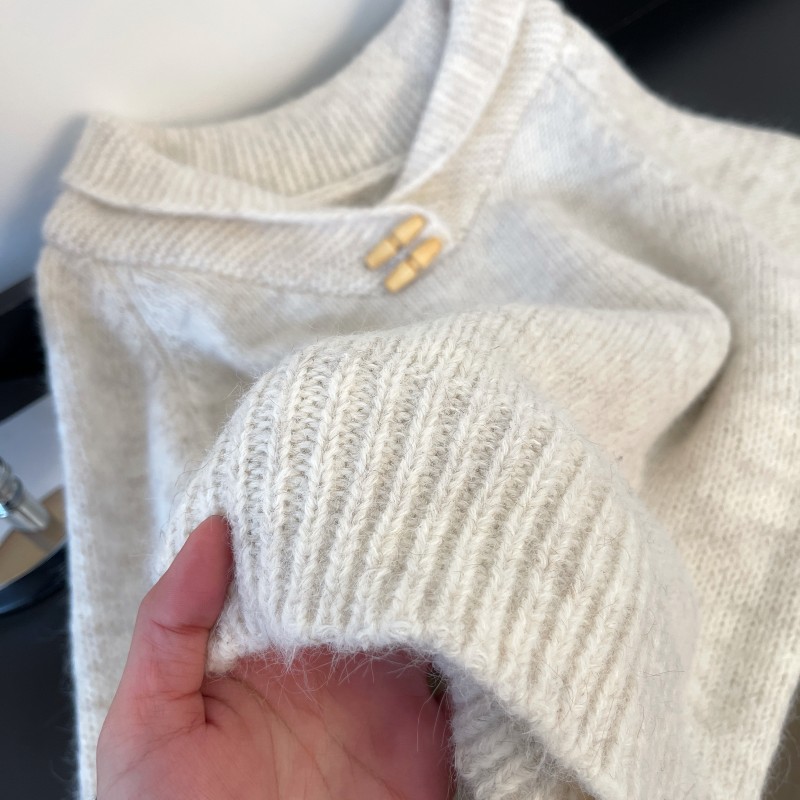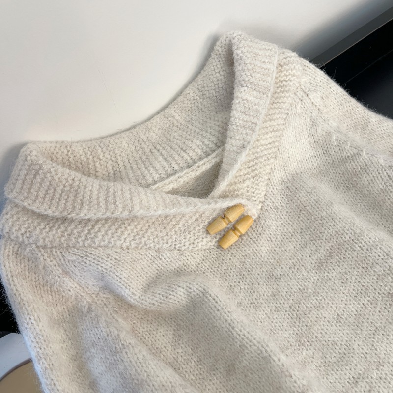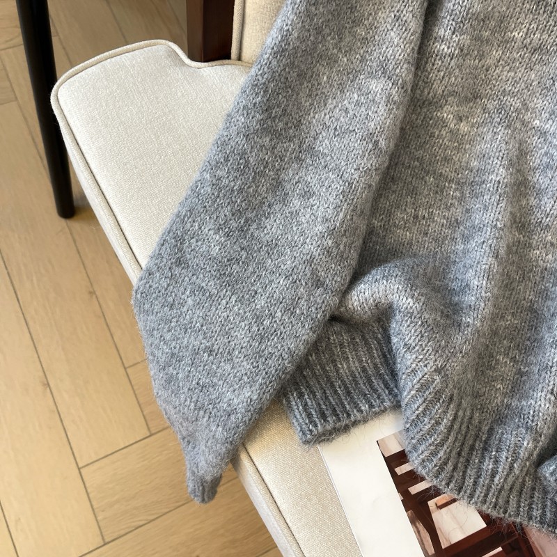 慵懶風牛角釦灰色翻領毛衣女早秋裝大碼胖mm插肩袖正肩顯瘦針織衫