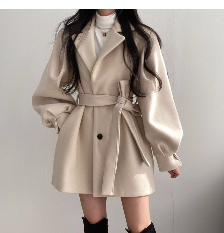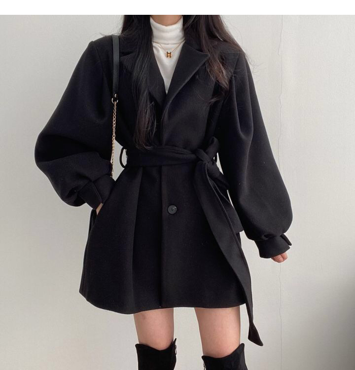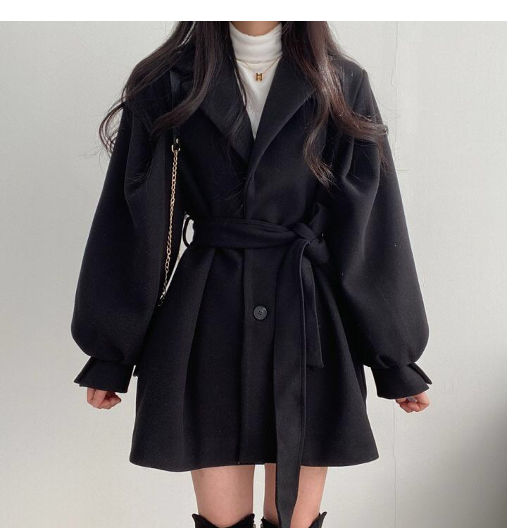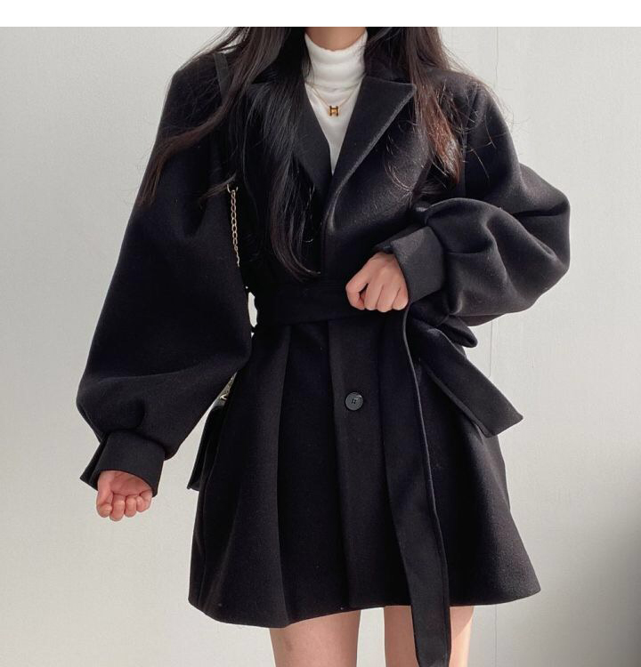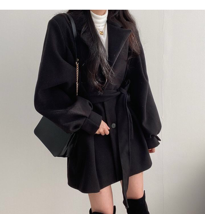 黑色短款毛呢外套女秋冬2025新款小個子收腰風衣高級感中長款大衣