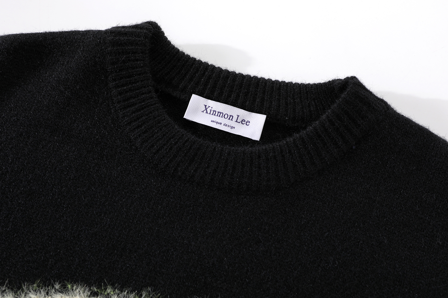 XinmonLee高級感黑色圓領針織衫毛衣冬季女氣質洋氣減齡內搭上衣