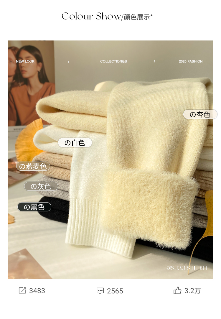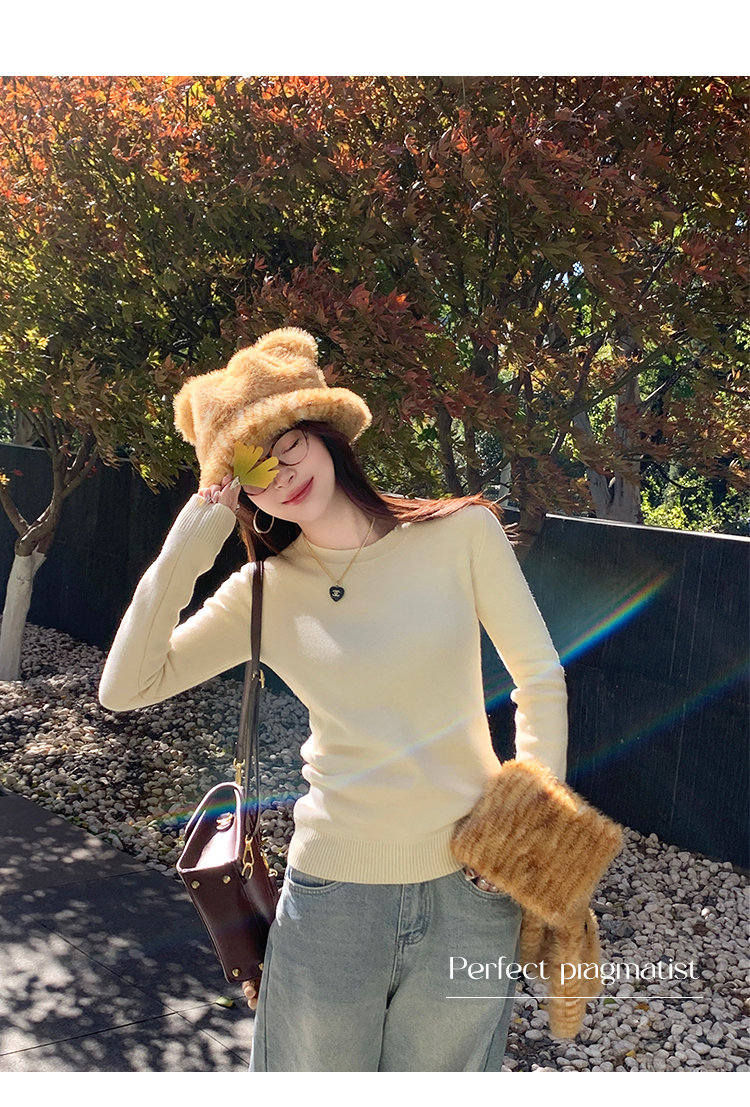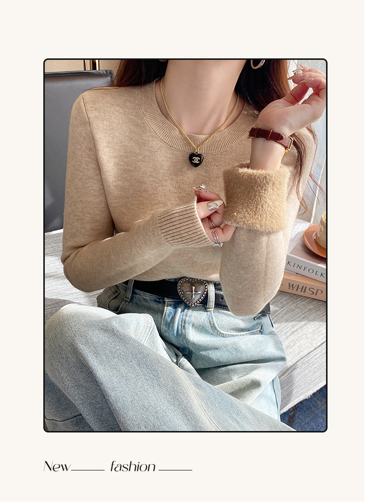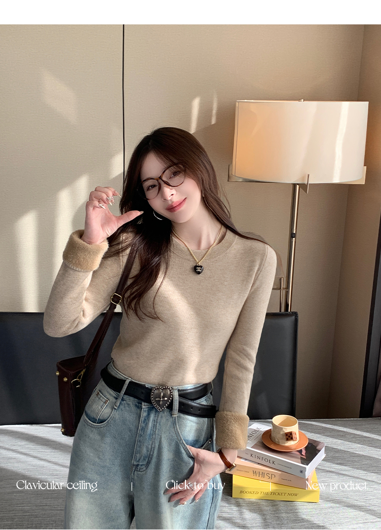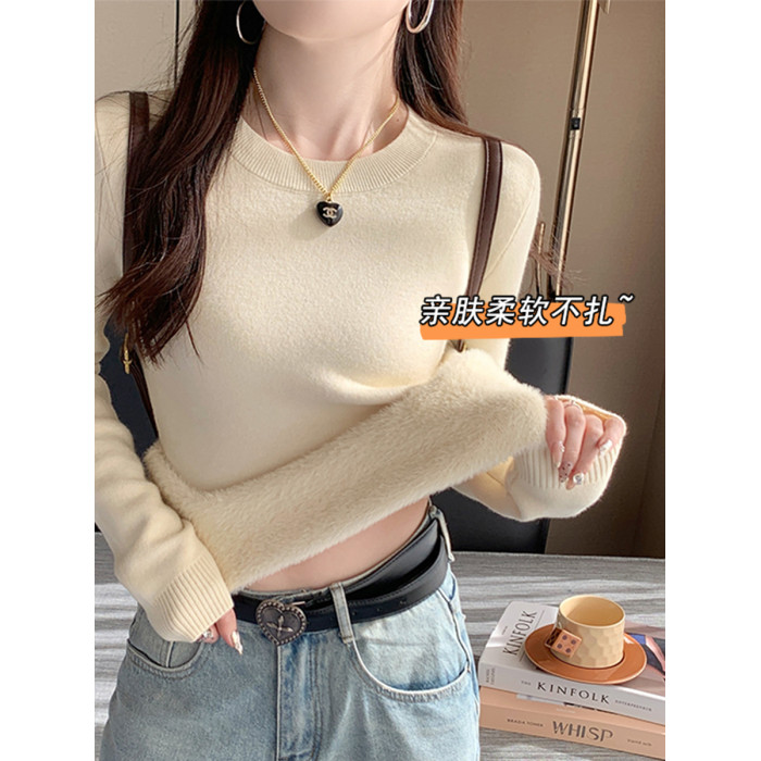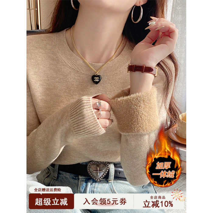 圓領加絨毛衣女款2025新款冬季加厚一體絨內搭打底衫秋冬針織上衣