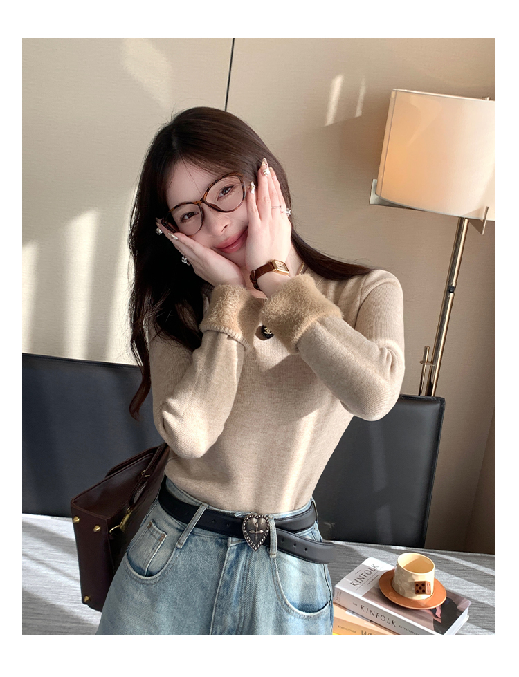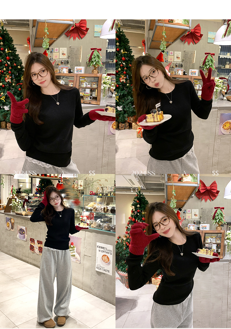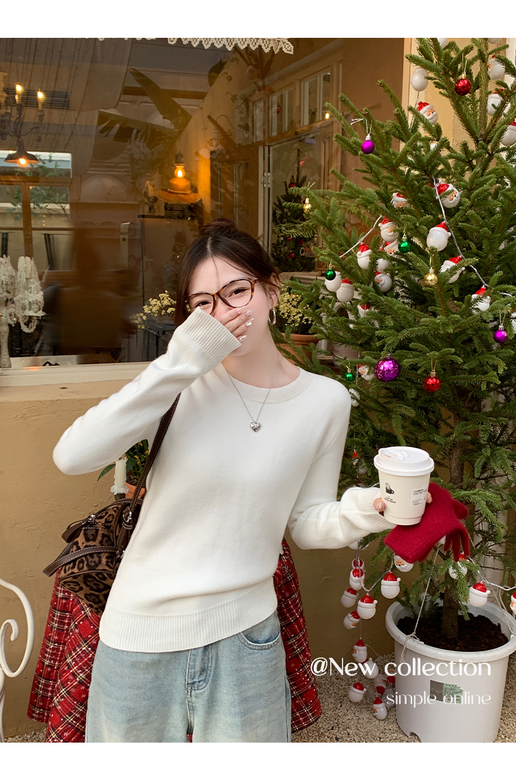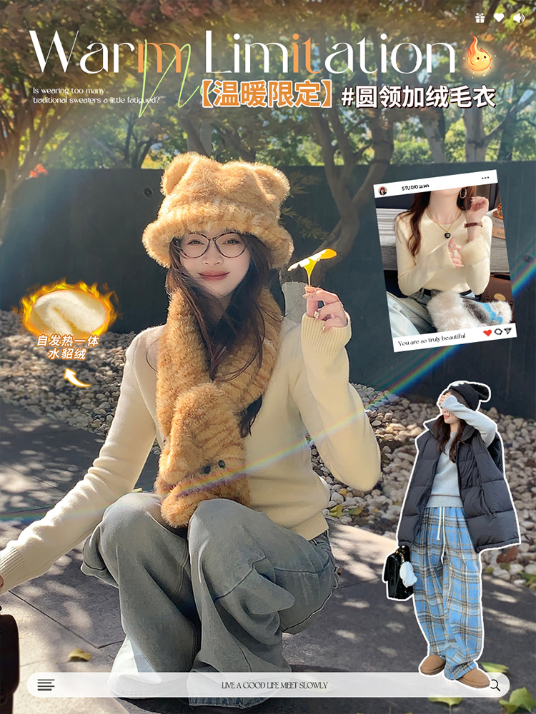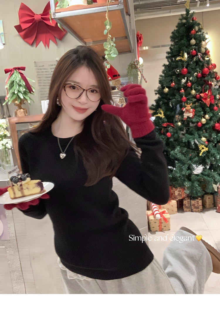 圓領加絨毛衣女款2025新款冬季加厚一體絨內搭打底衫秋冬針織上衣