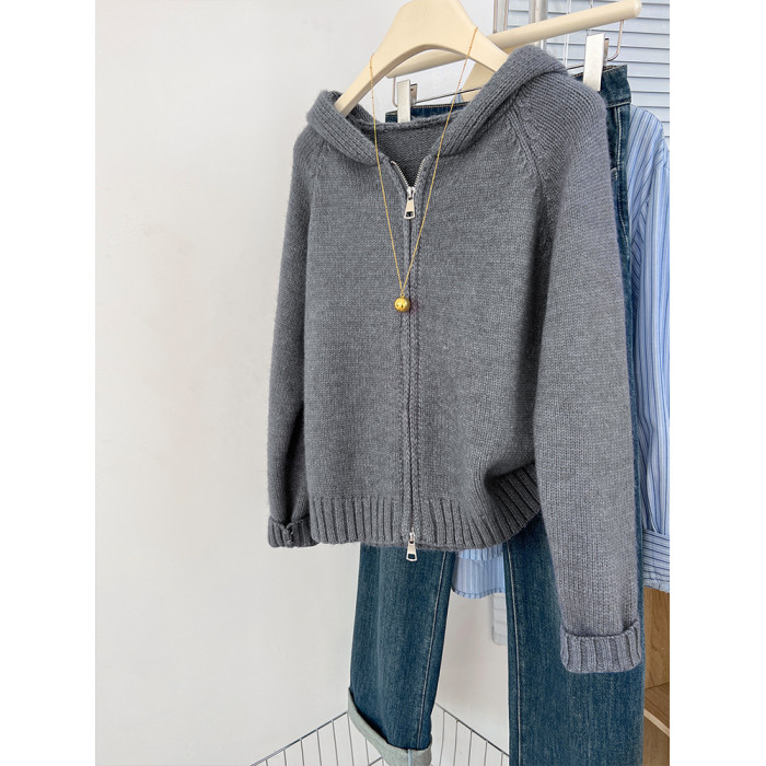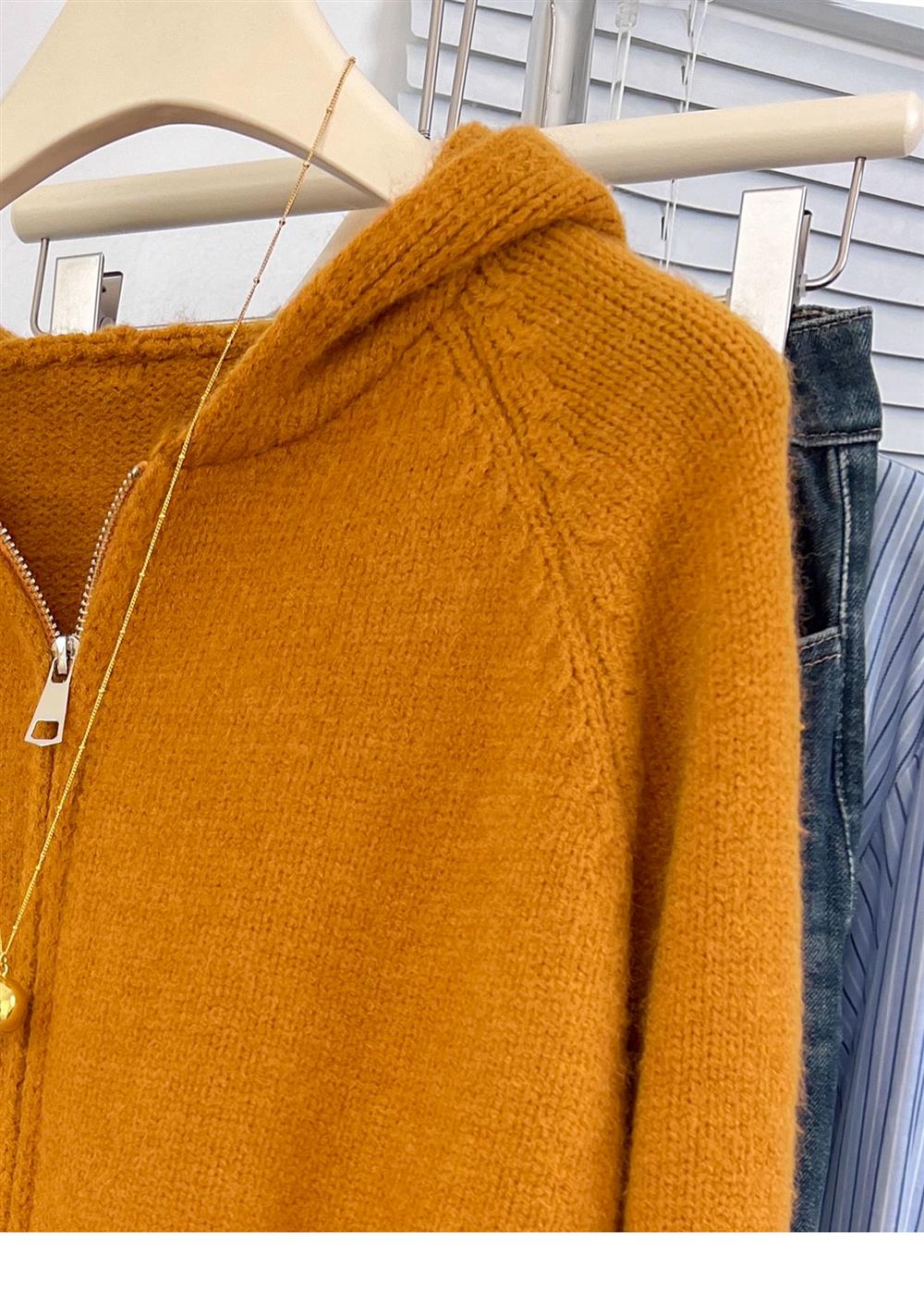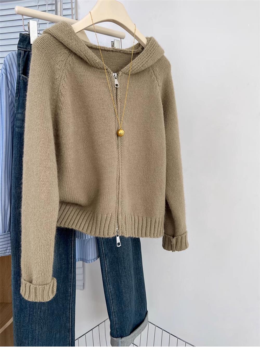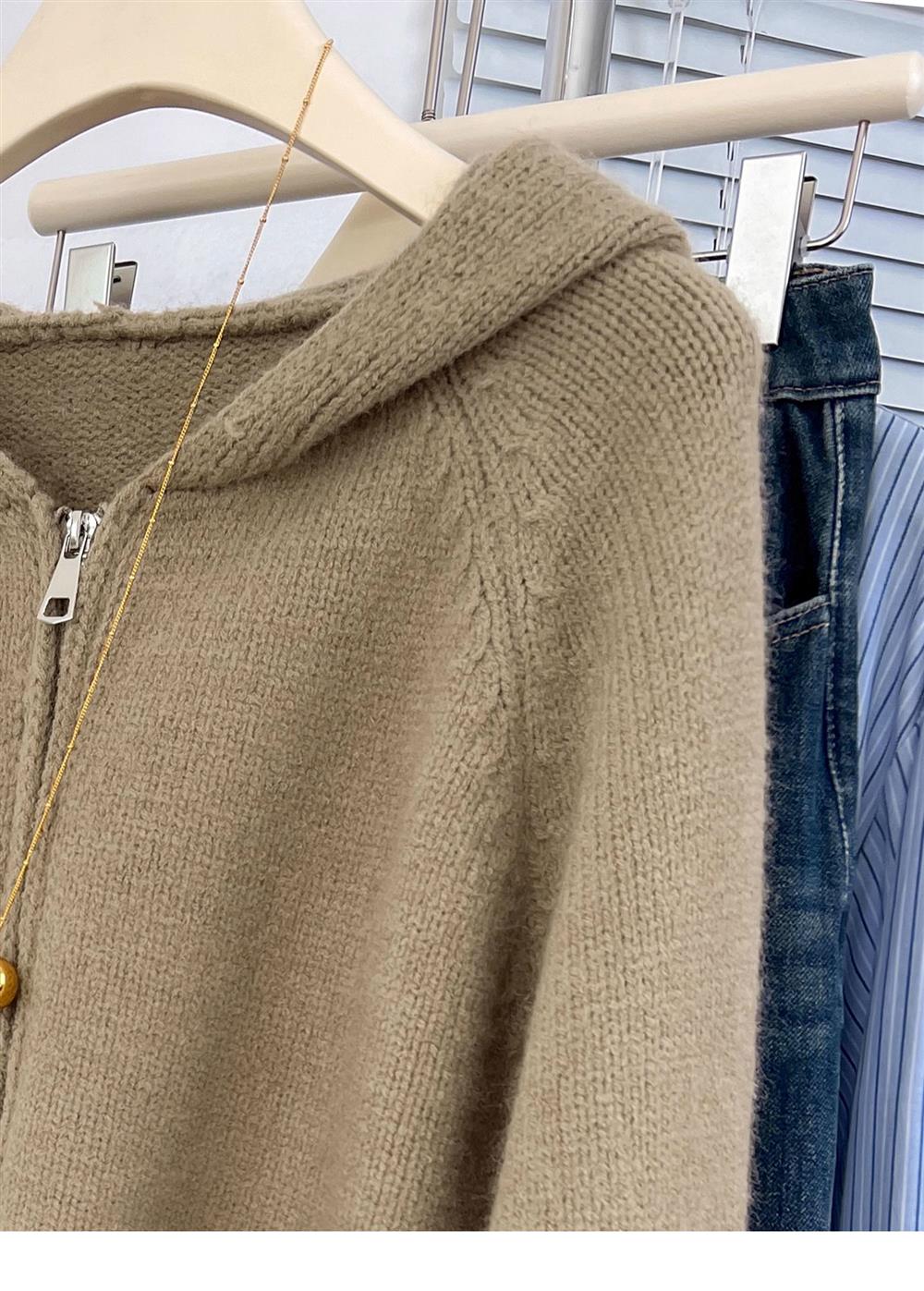 設計感拉鍊連帽開衫毛衣外套女秋冬慵懶風寬松外穿針織衫連帽上衣