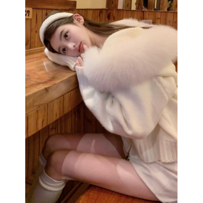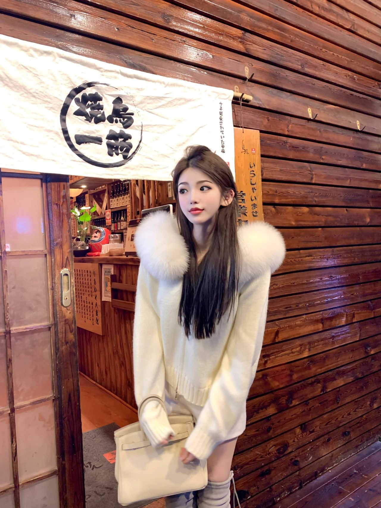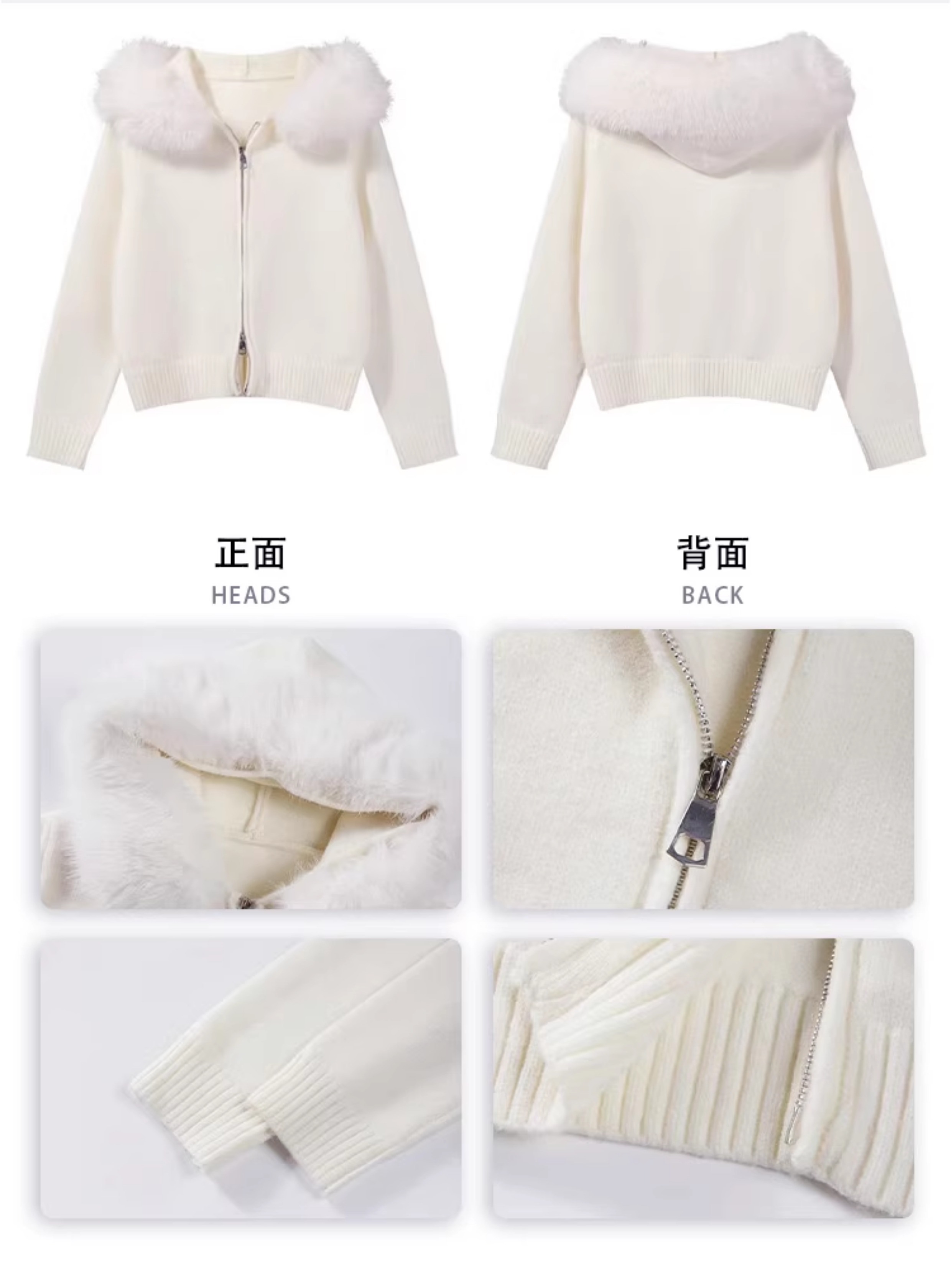 毛毛領連帽奶fufu毛衣女春冬慵懶溫柔風獨特超好看長袖針織衫外套