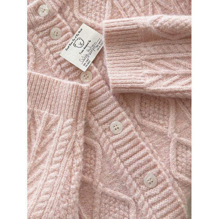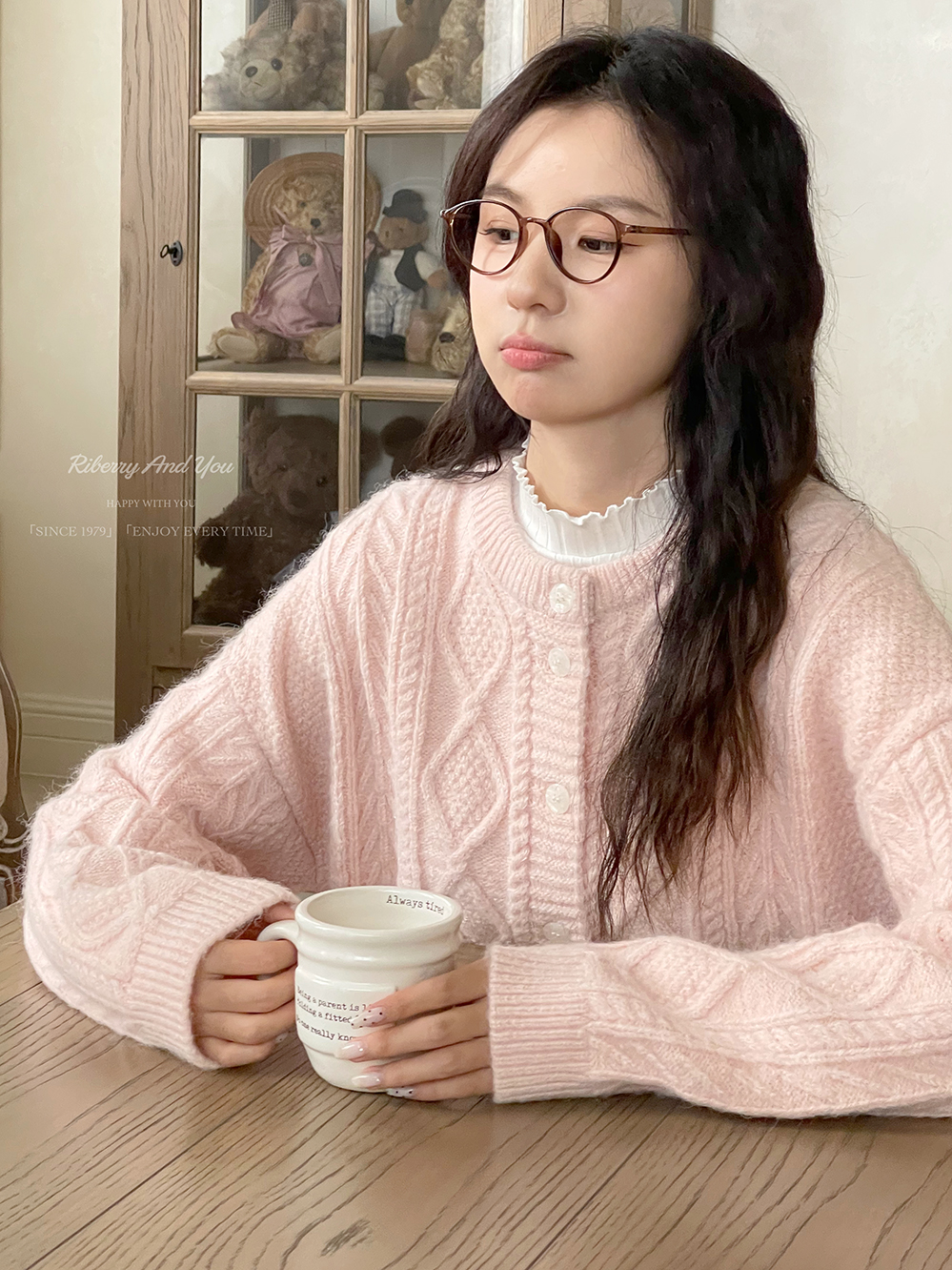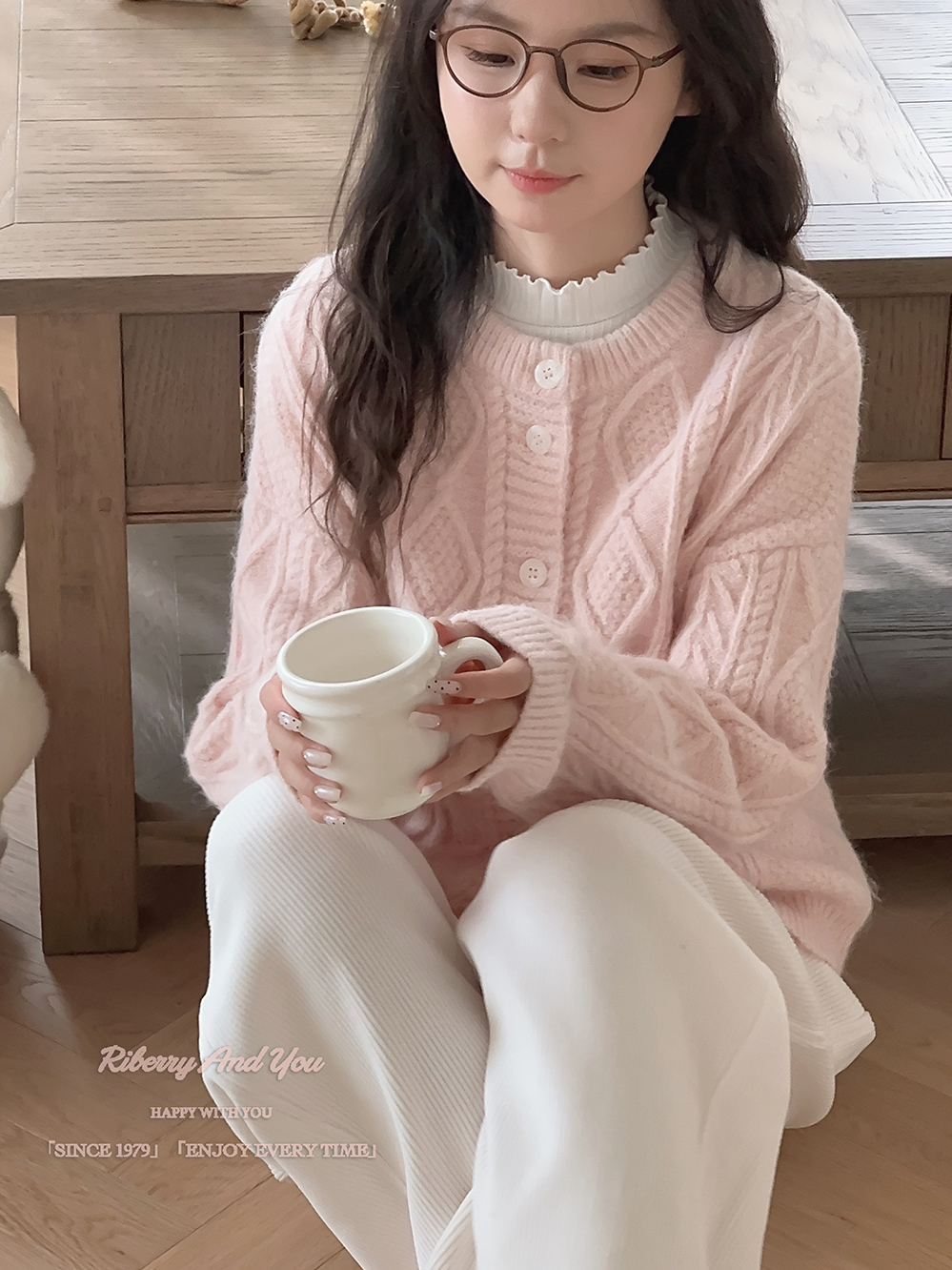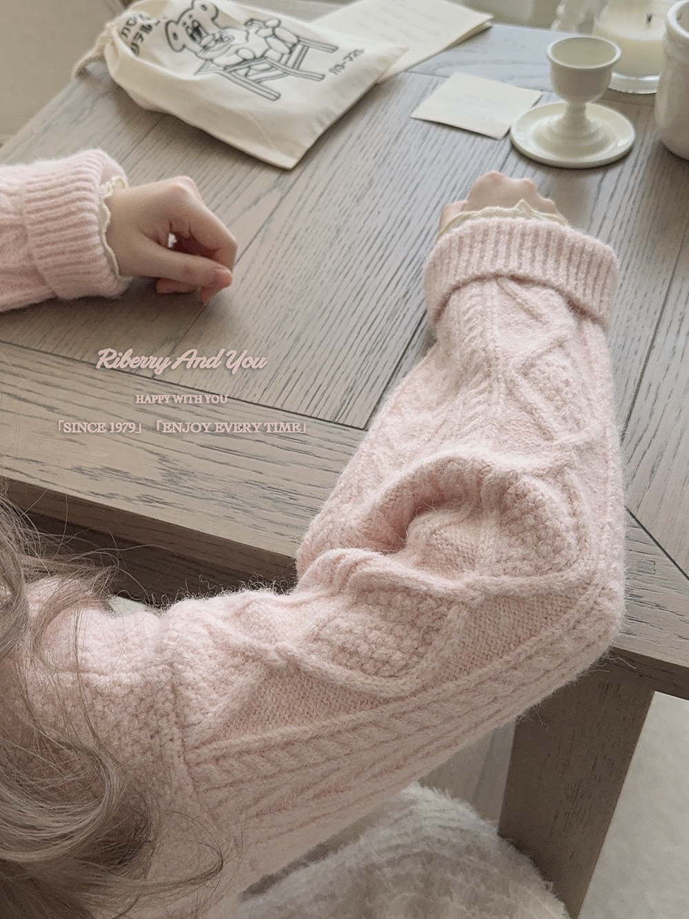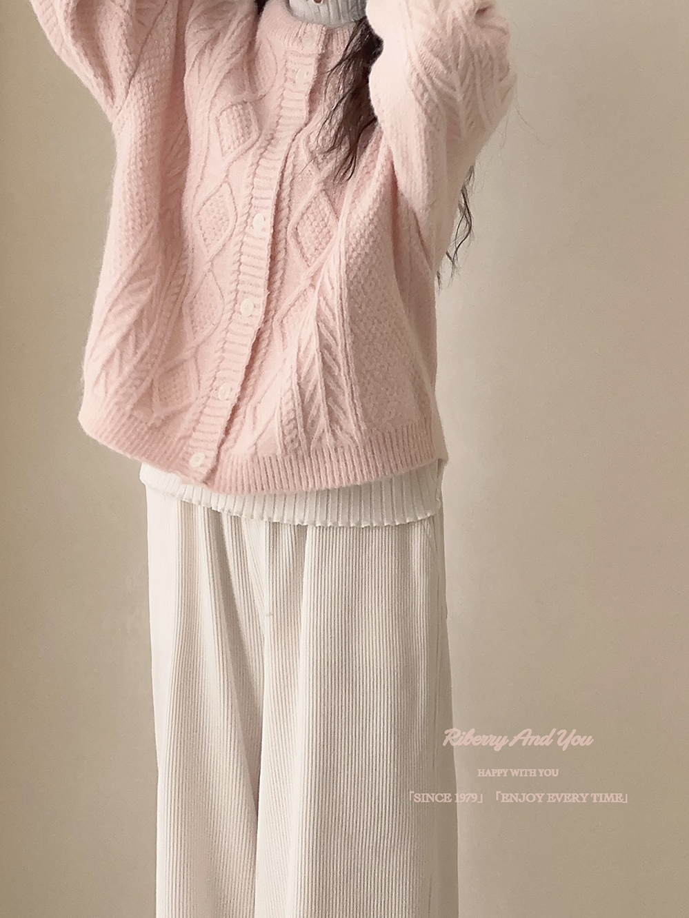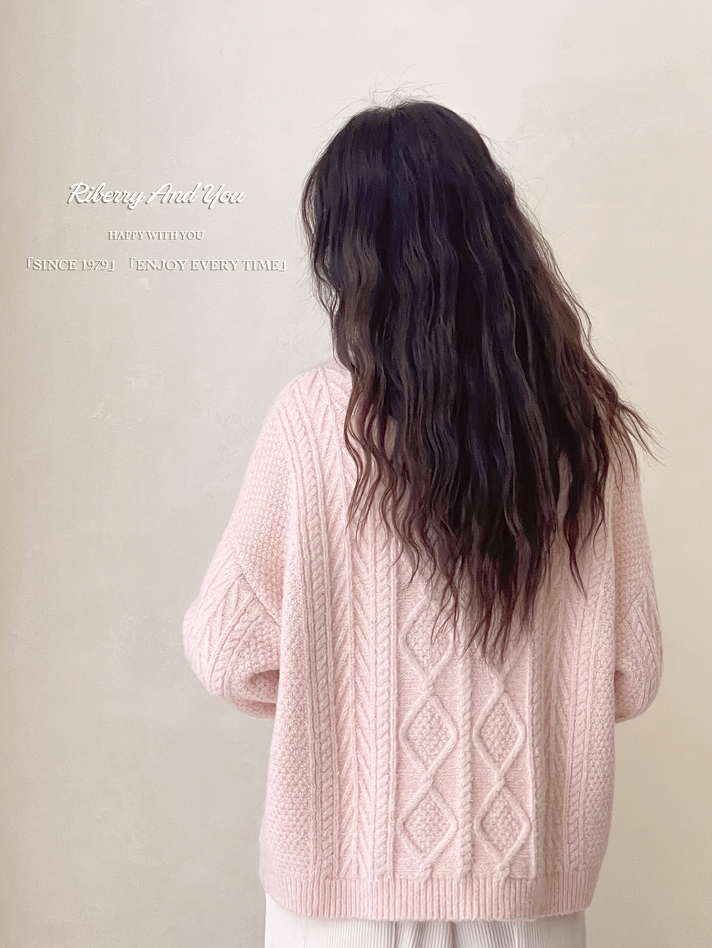 復古麻花 溫柔櫻花粉 古著感奶油杏 針織毛衣開衫 K