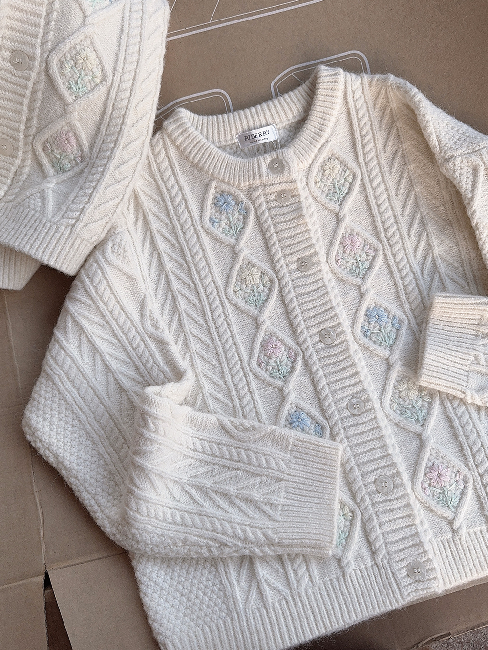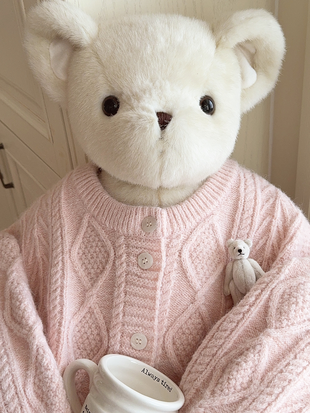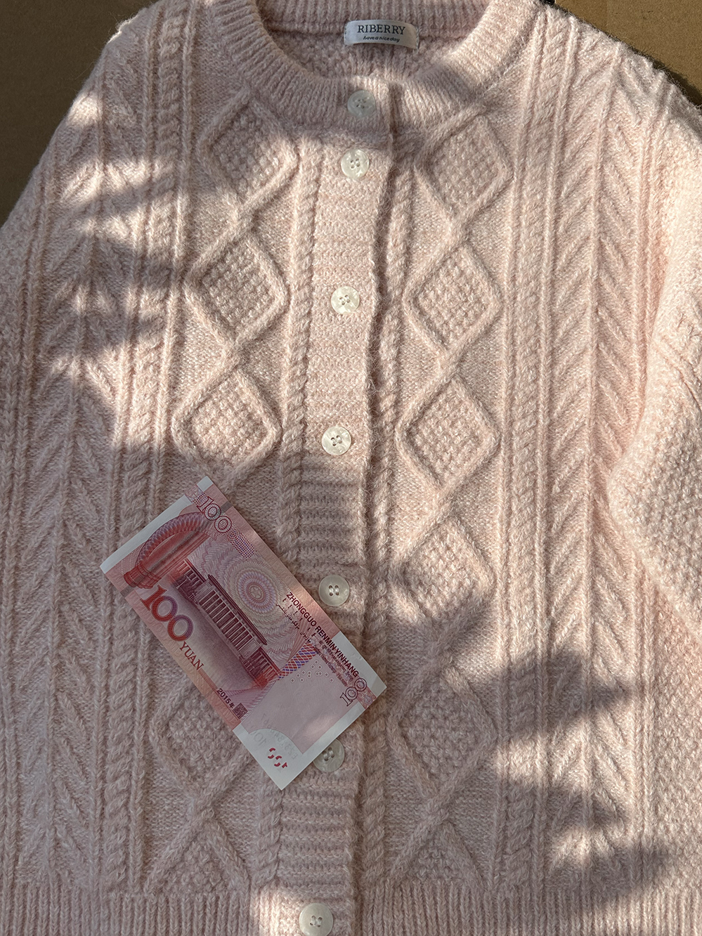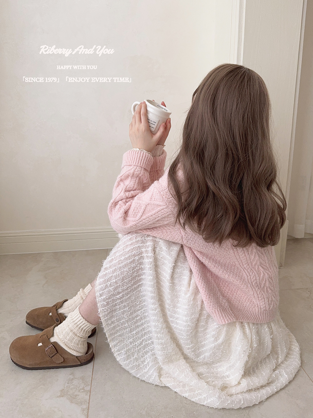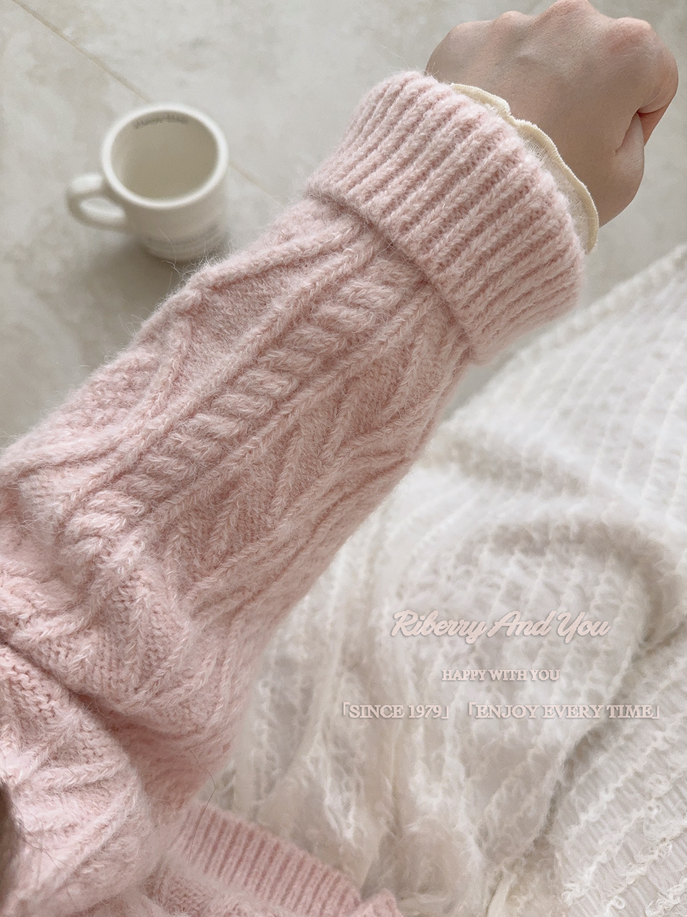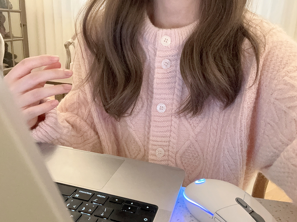 復古麻花 溫柔櫻花粉 古著感奶油杏 針織毛衣開衫 K