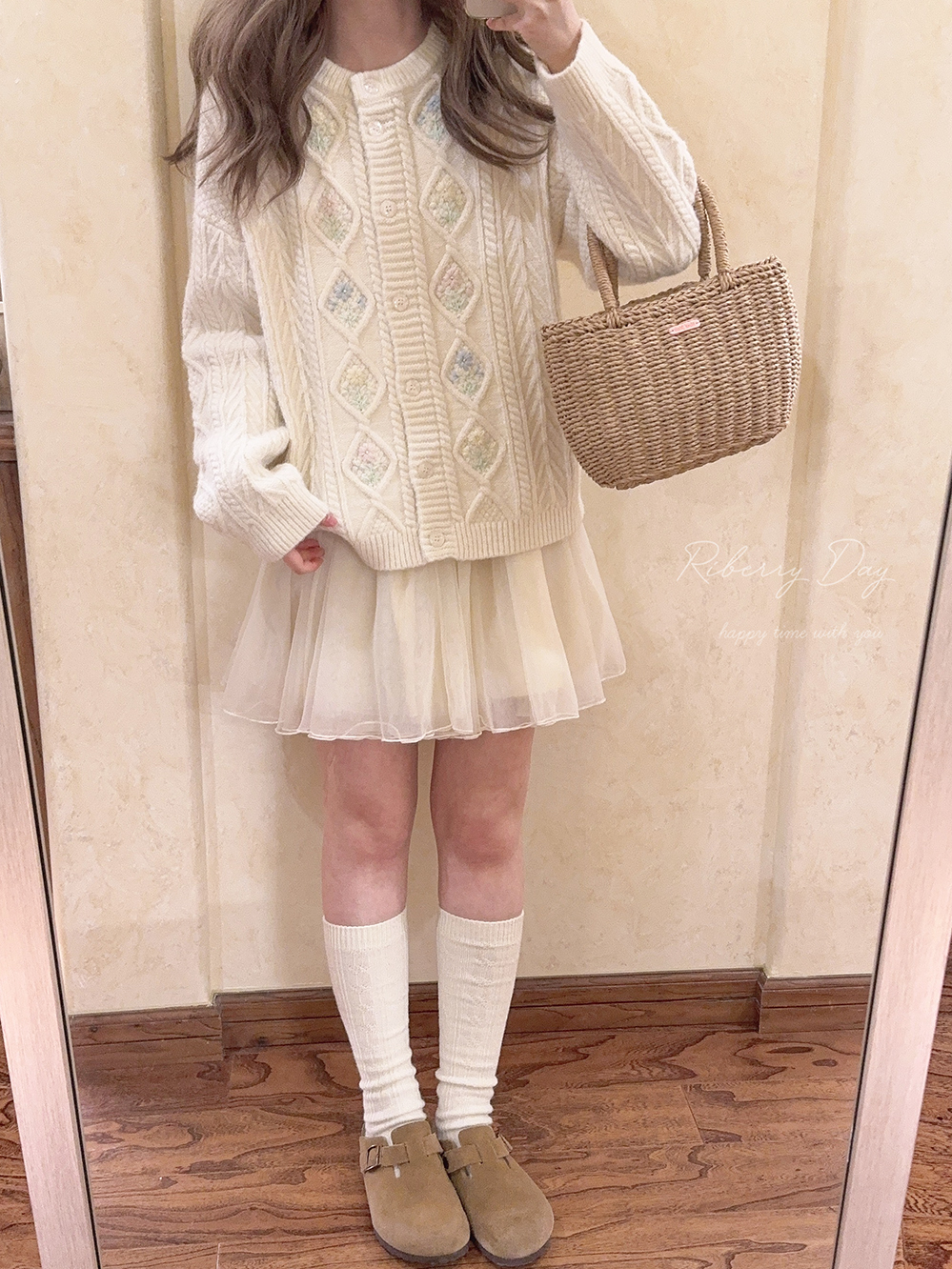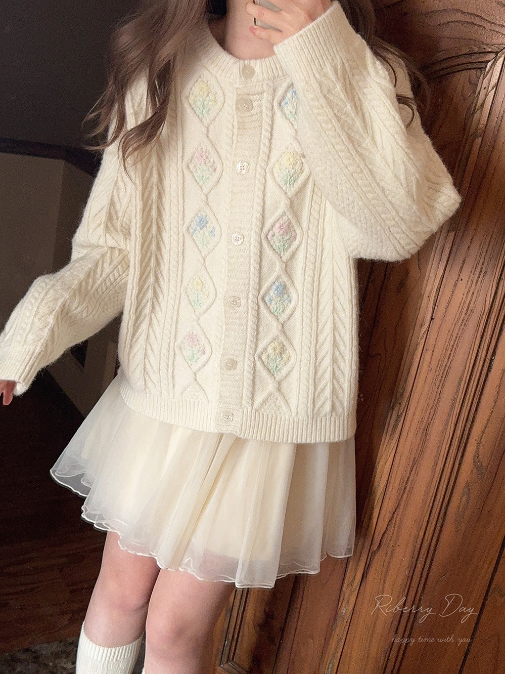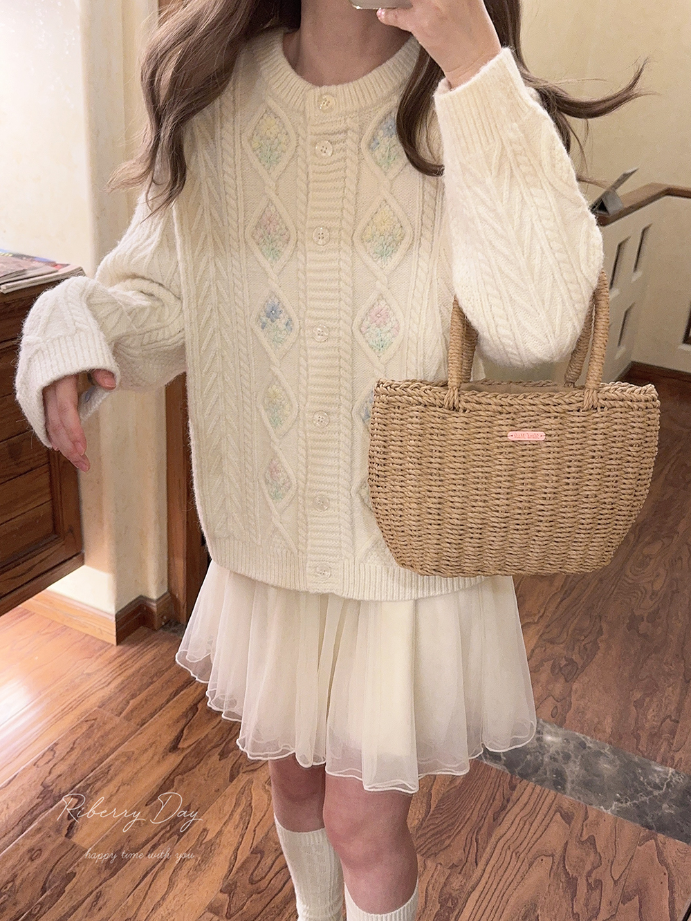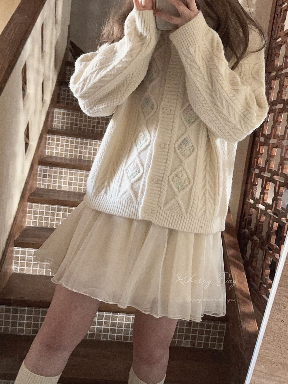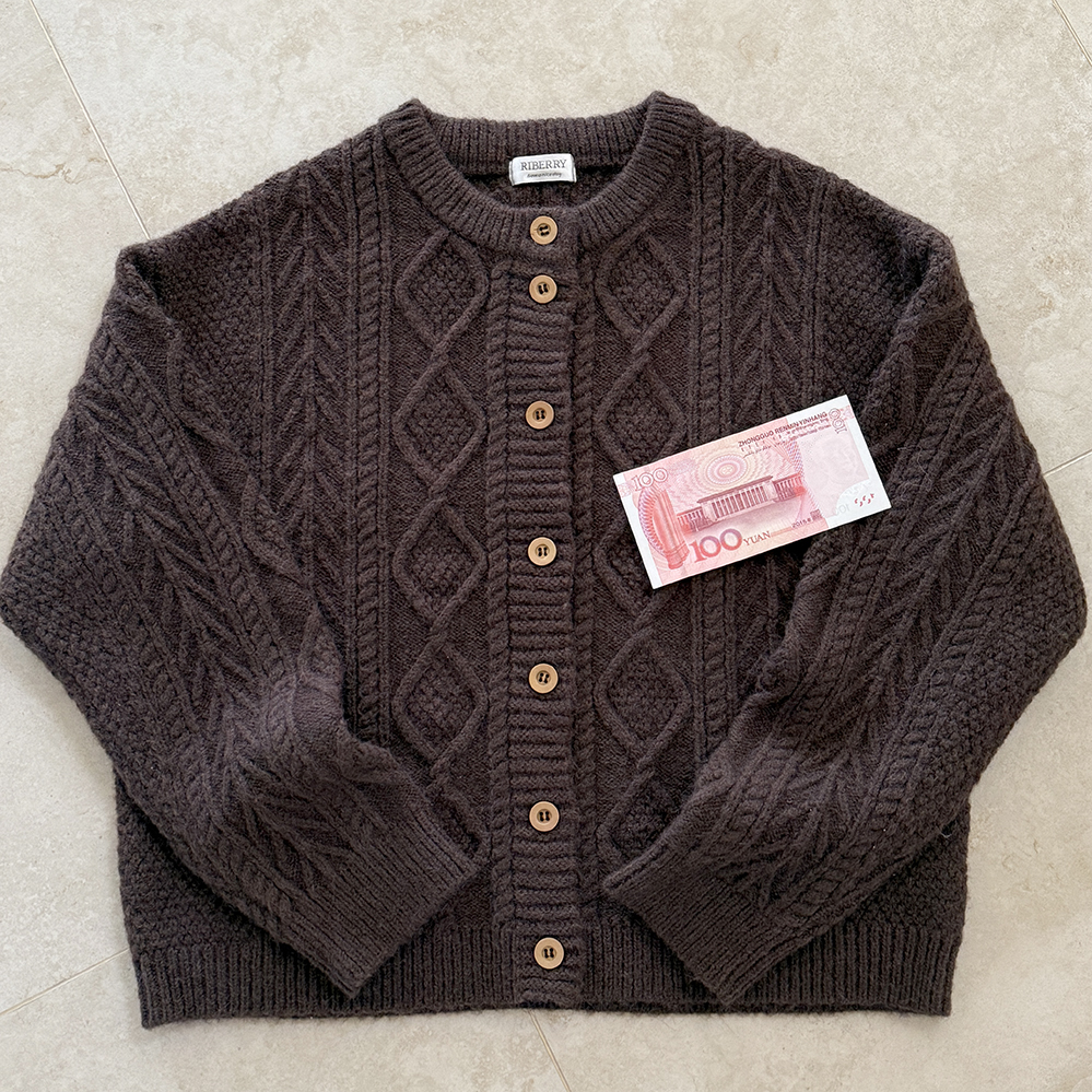 復古麻花 溫柔櫻花粉 古著感奶油杏 針織毛衣開衫 K