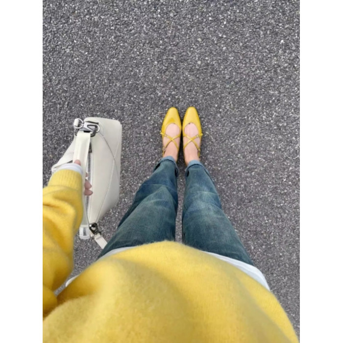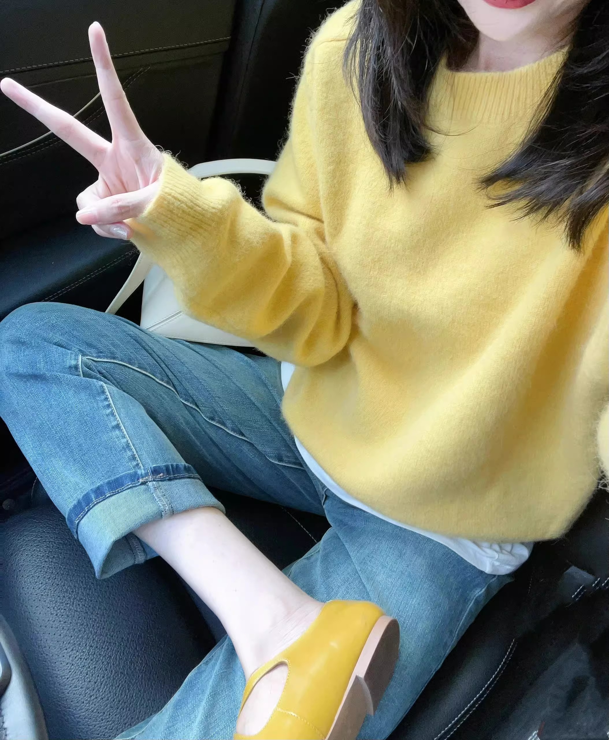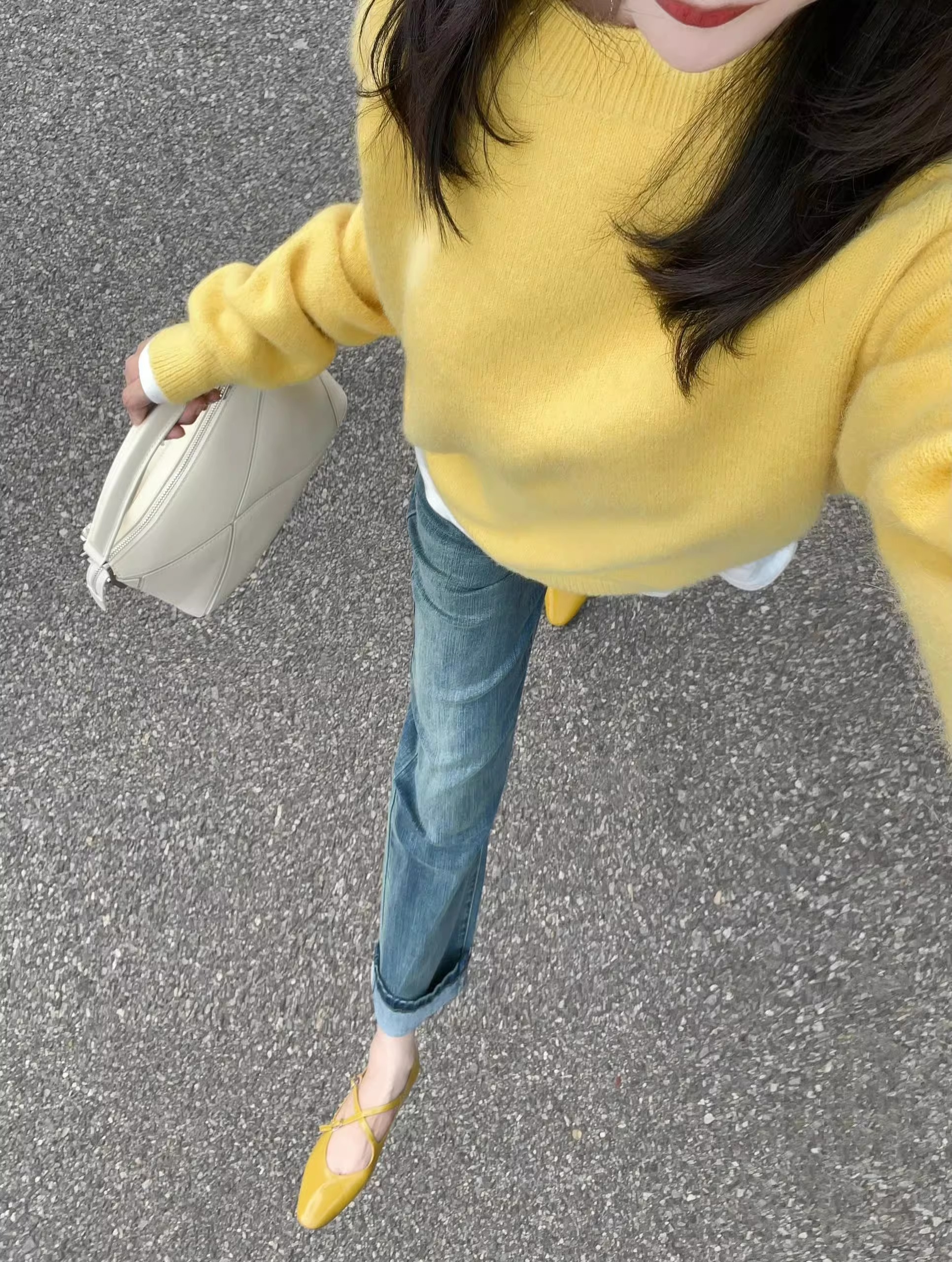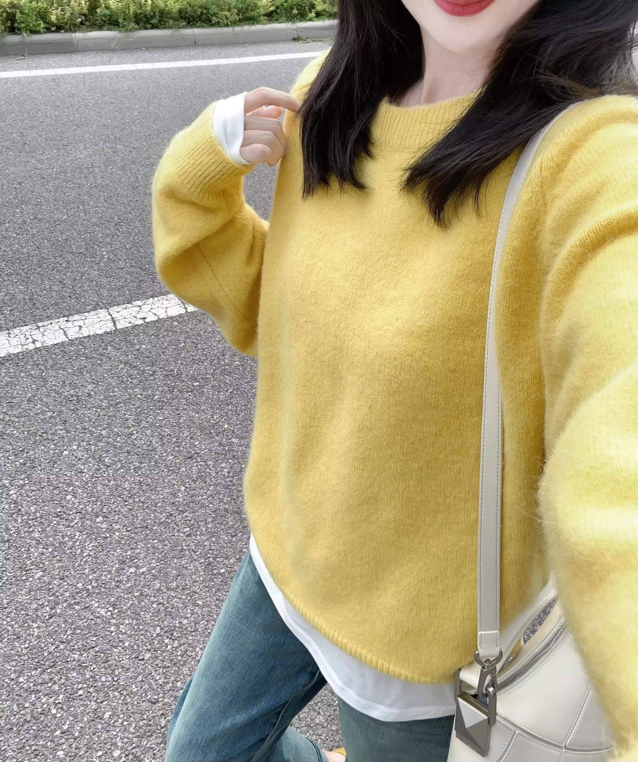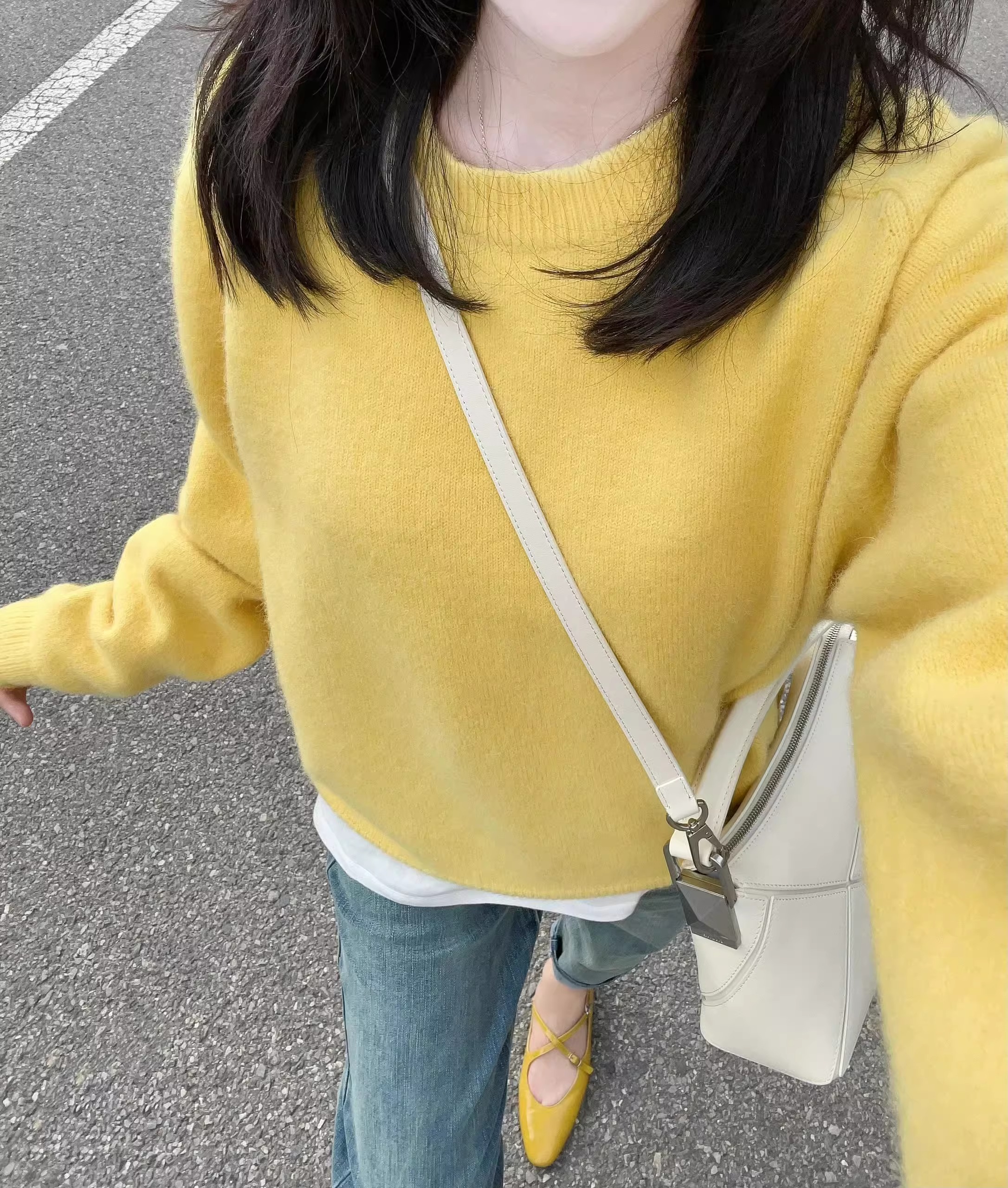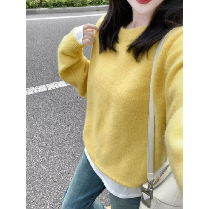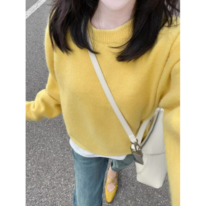 黃色圓領針織毛衣女秋冬新款寬松顯瘦韓版小衆設計感氣質百搭上衣