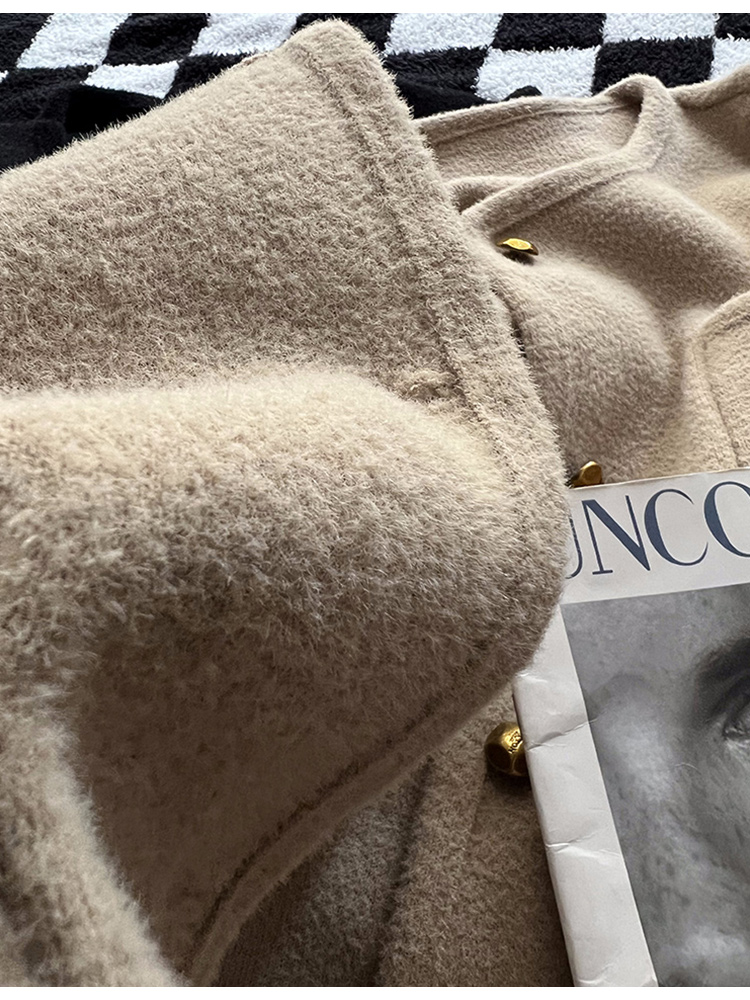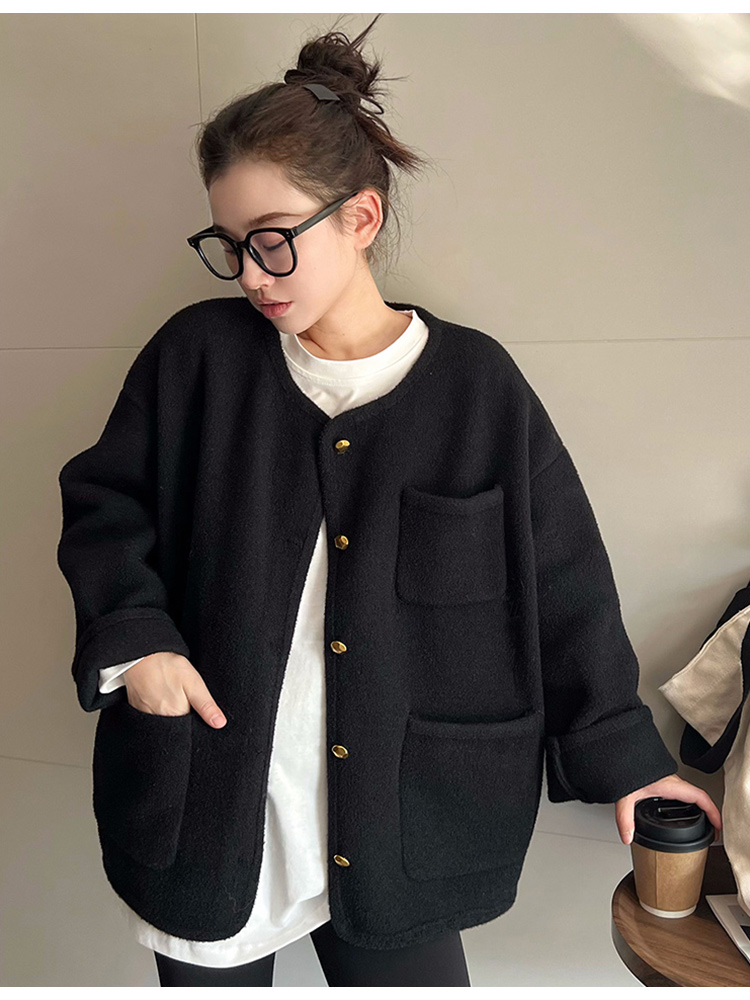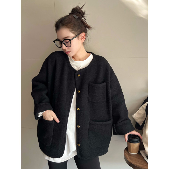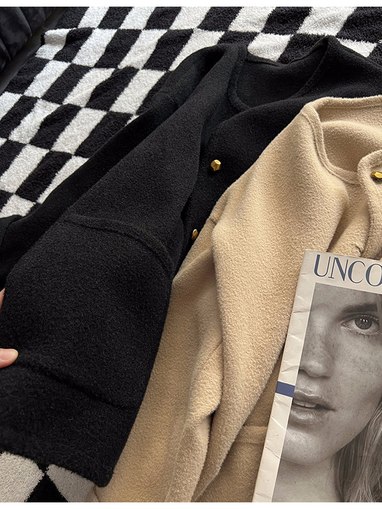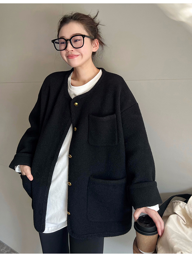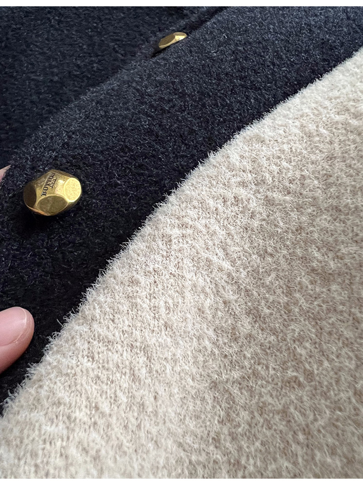 MAY MUZIYA復古黑色針織毛衣外套開衫女2025春秋季圓領慵懶風外套
