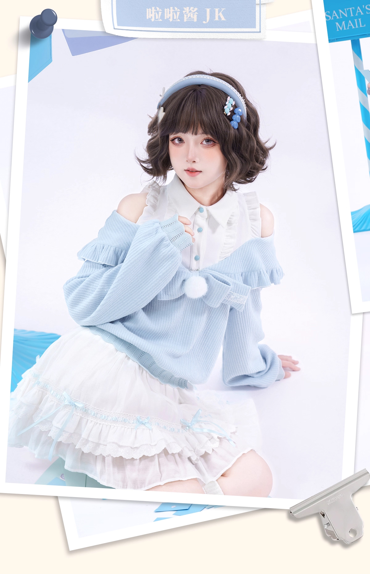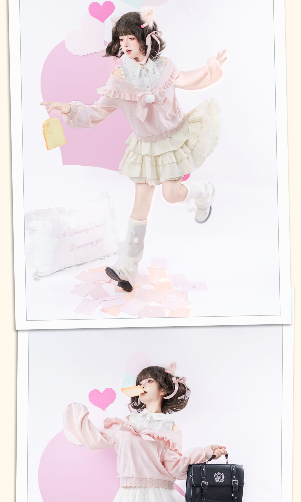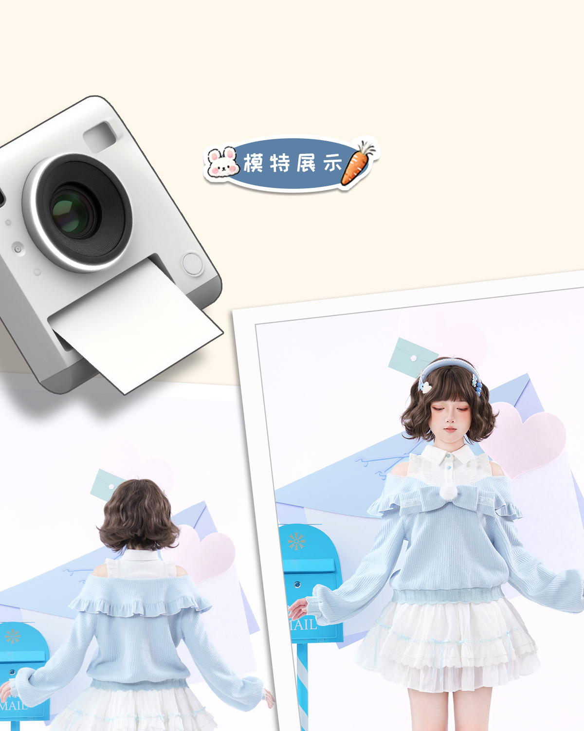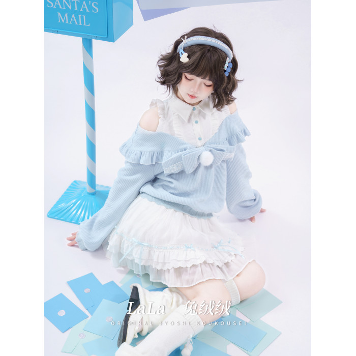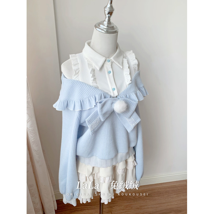 啦啦醬 兔絨絨 原創設計奈奈風水色甜美可愛風百搭秋冬款露肩毛衣