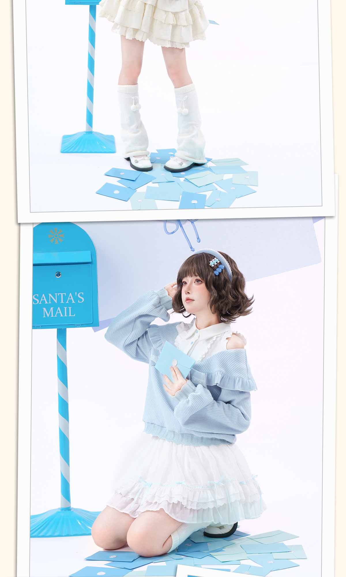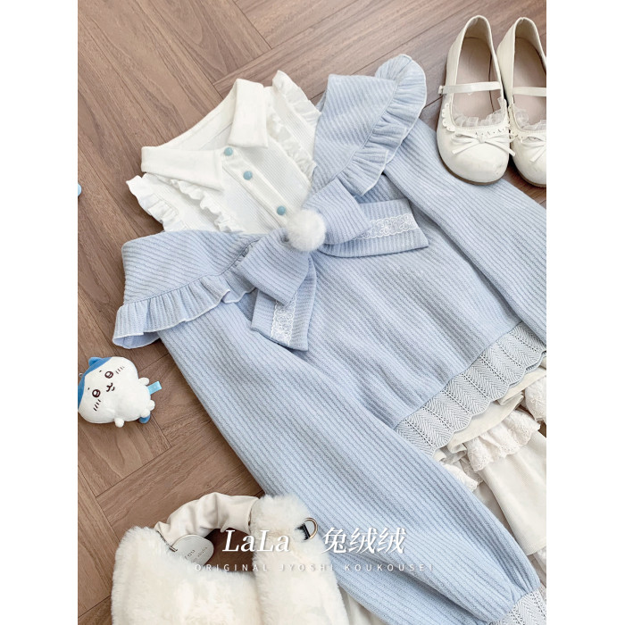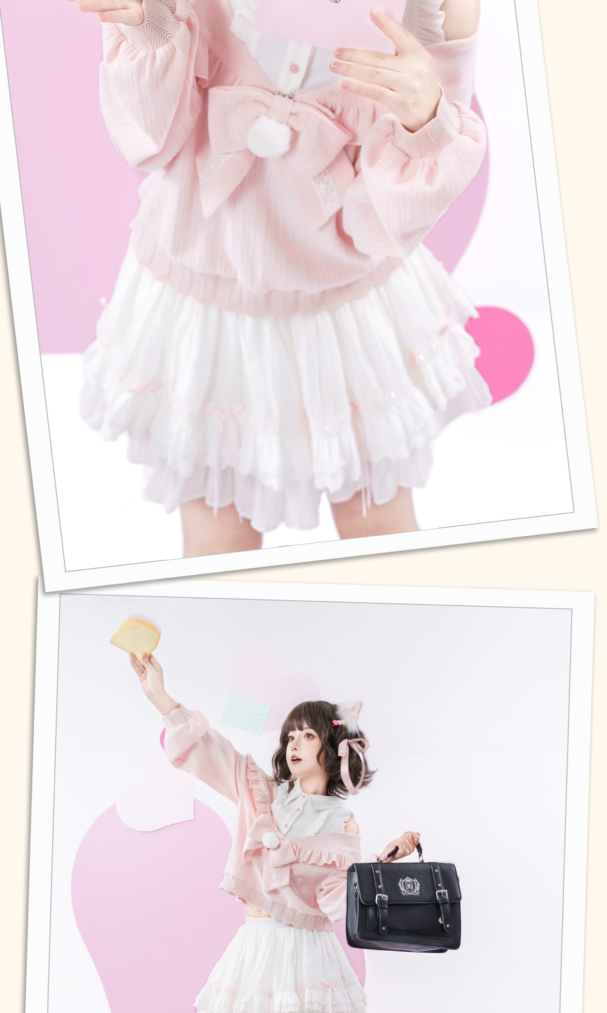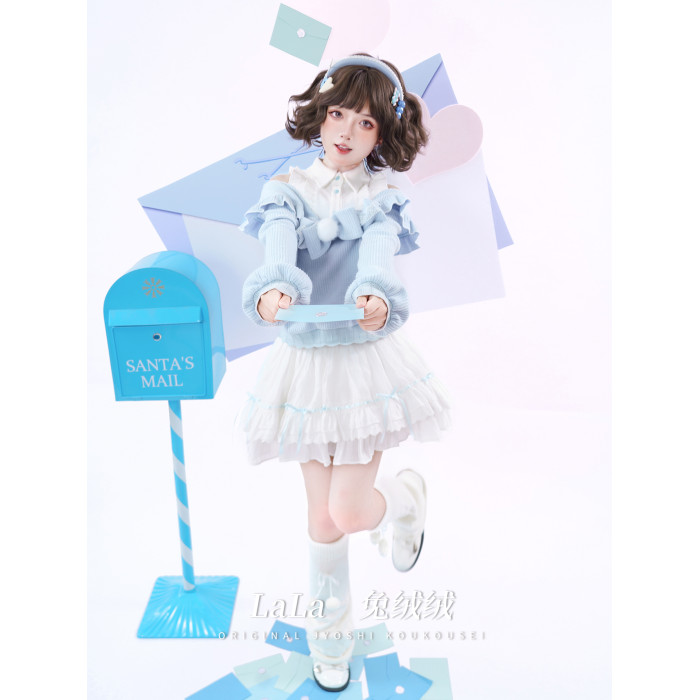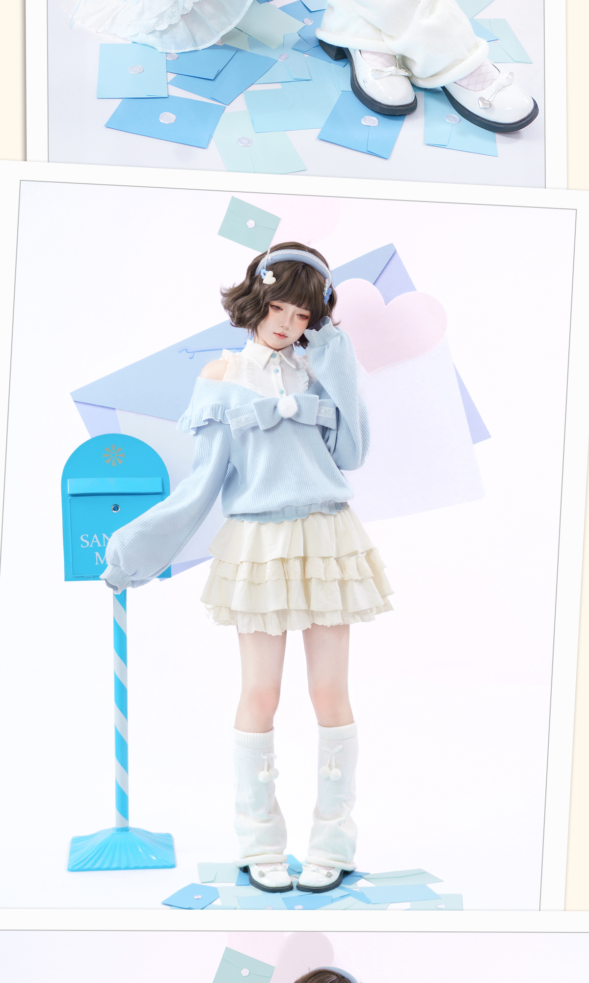啦啦醬 兔絨絨 原創設計奈奈風水色甜美可愛風百搭秋冬款露肩毛衣