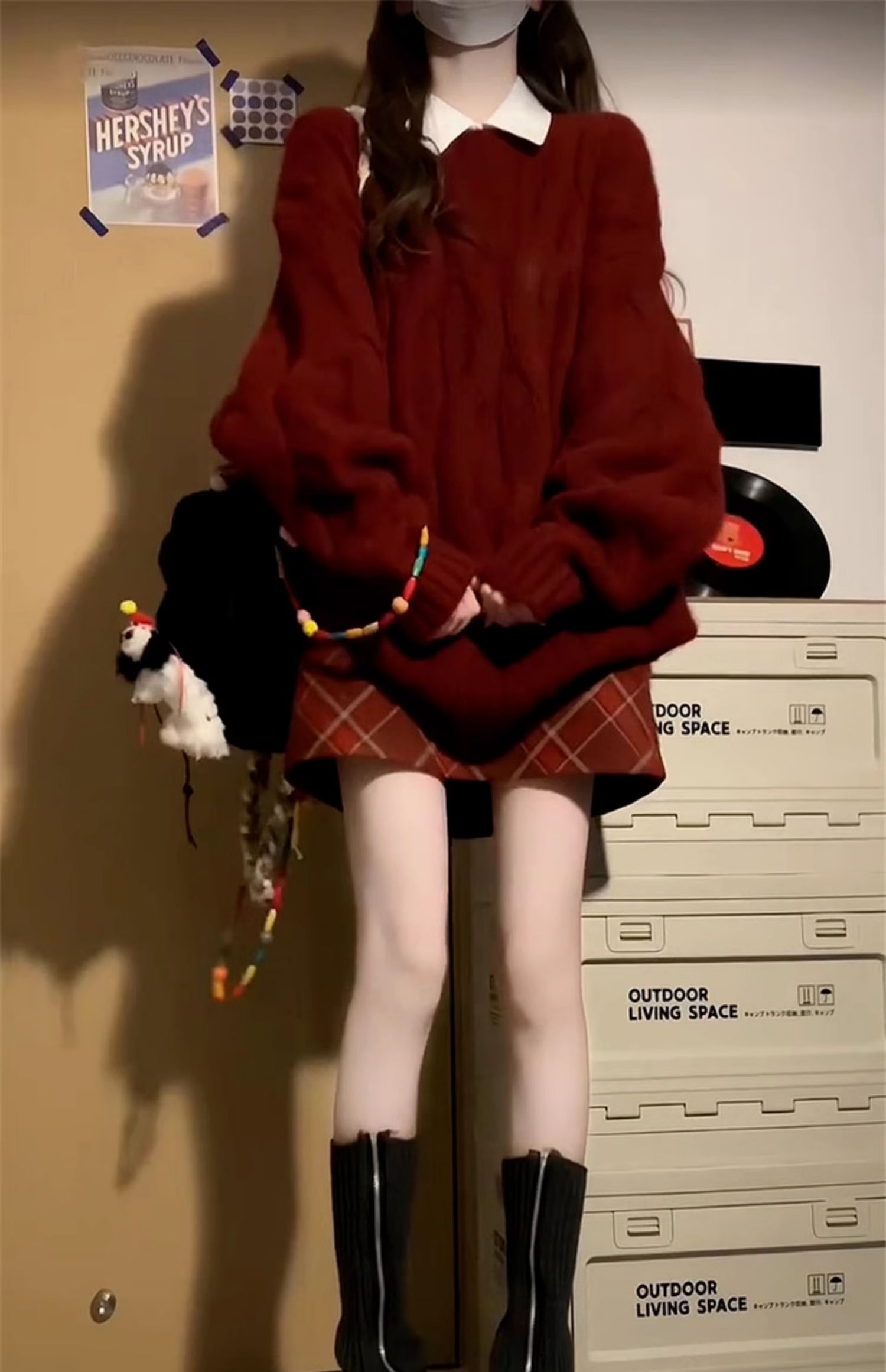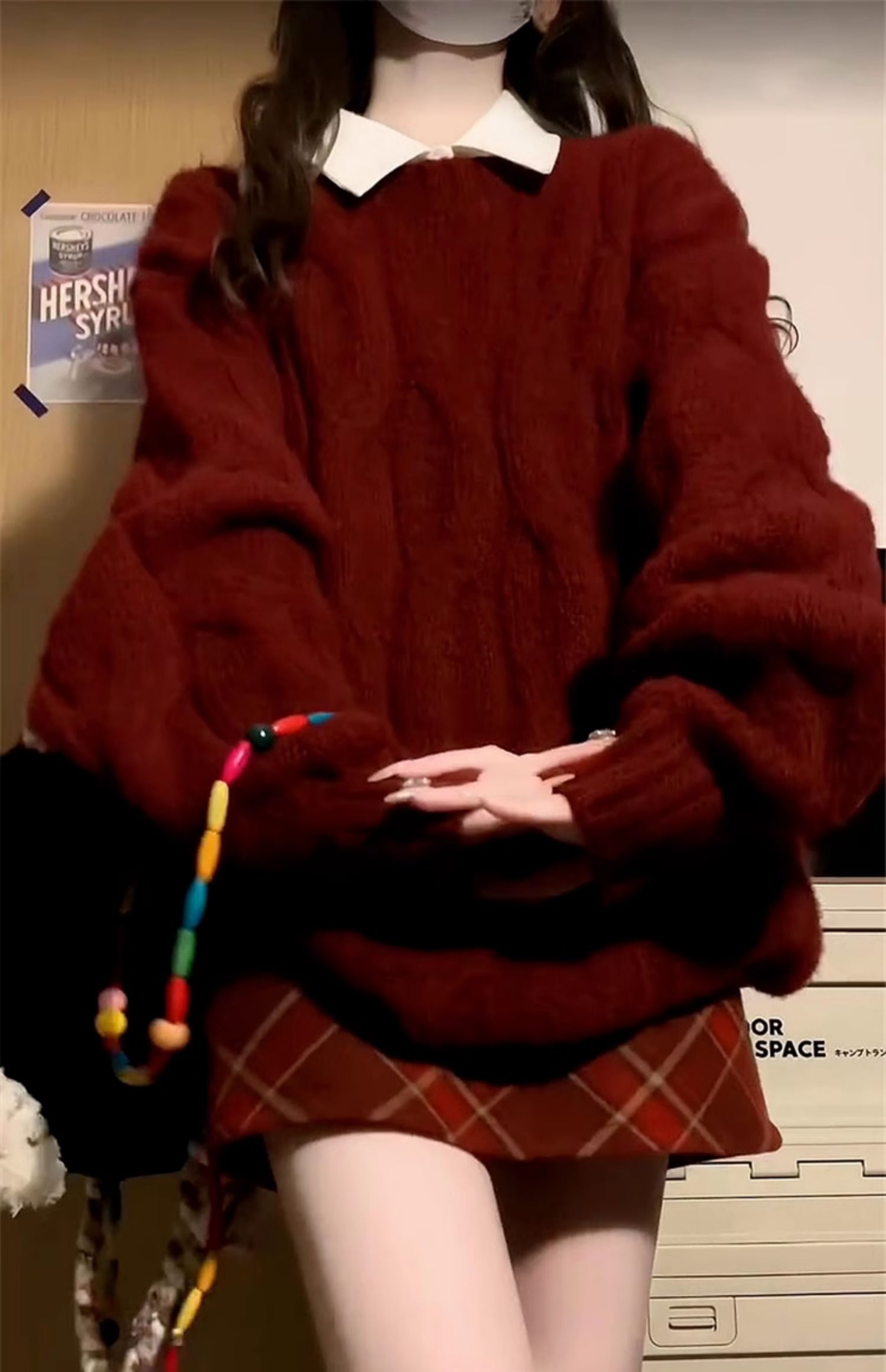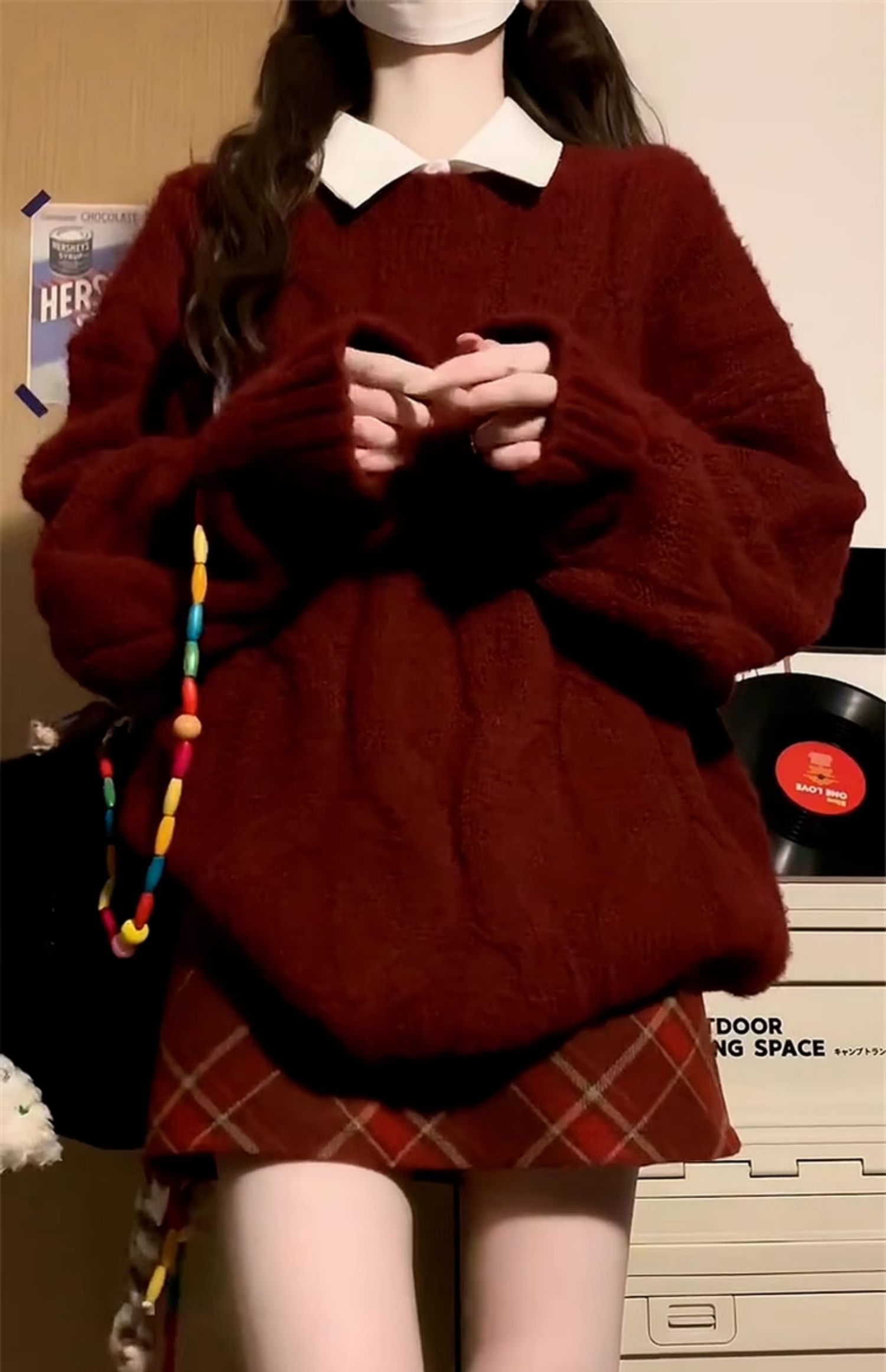 慵懶風高級感軟糯紅色毛衣女秋冬2025新款新年跨年聖誕穿搭針織衫