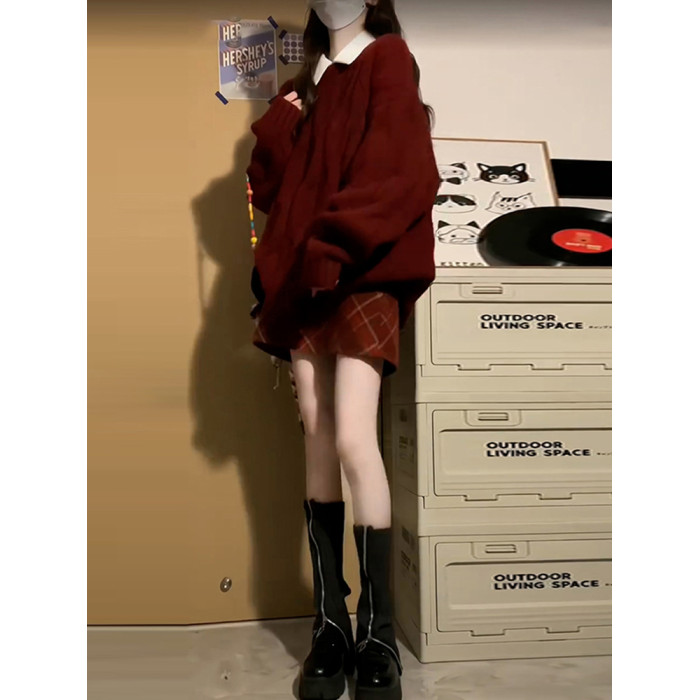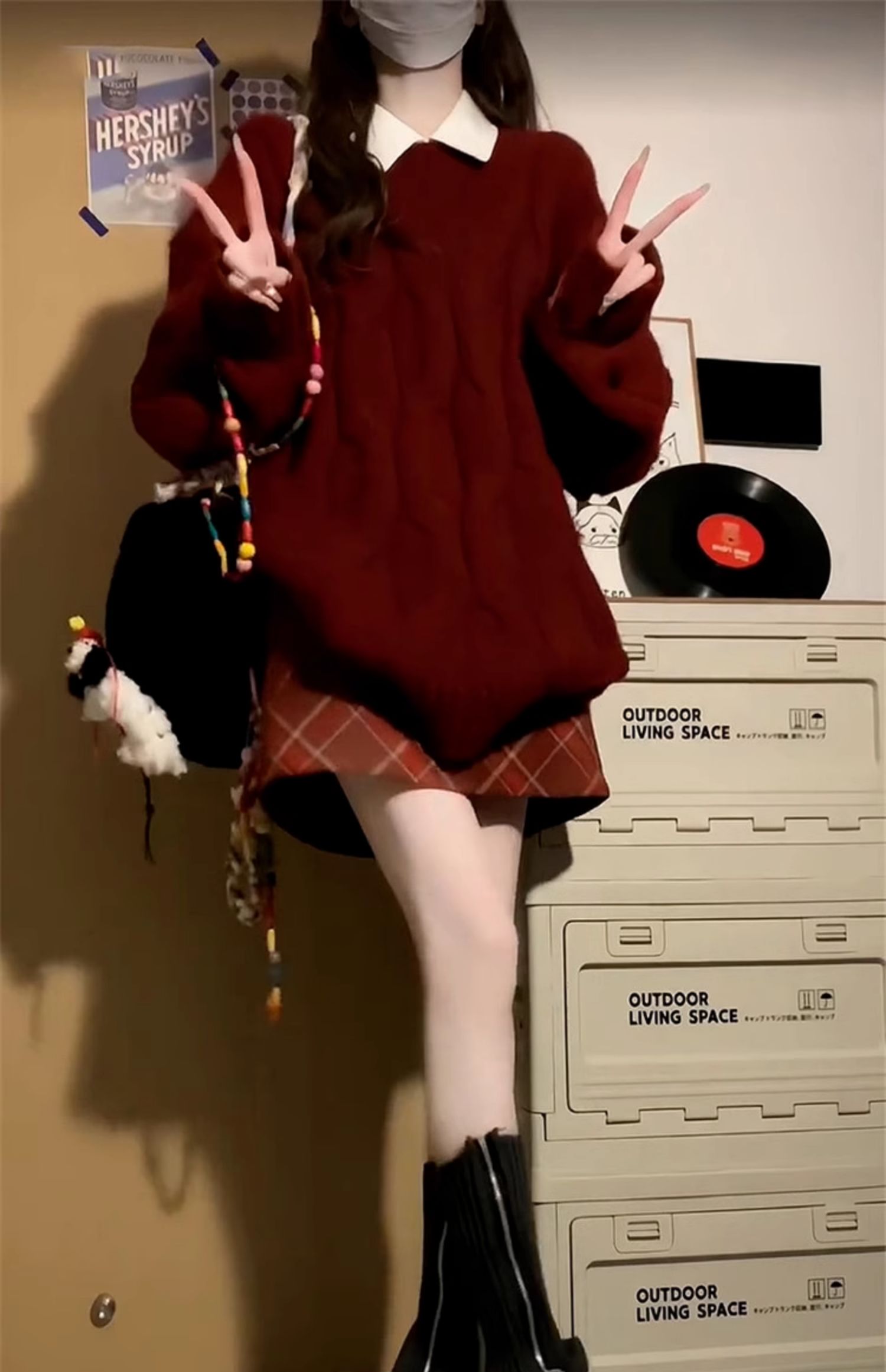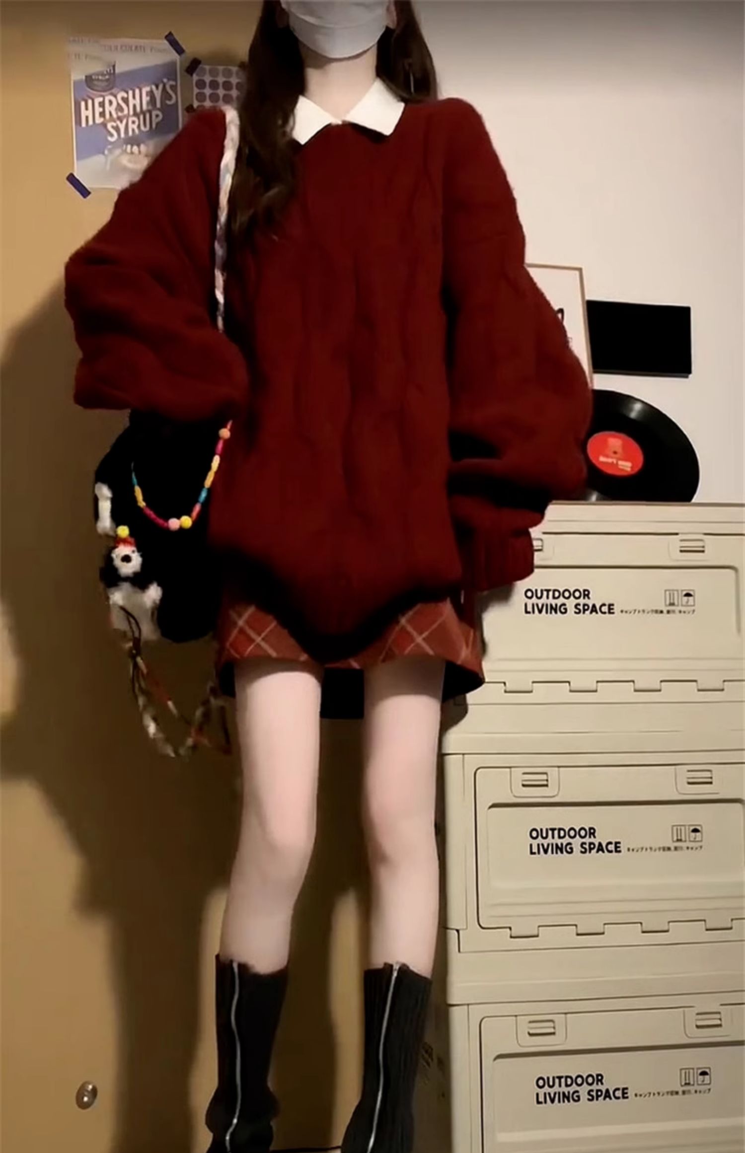 慵懶風高級感軟糯紅色毛衣女秋冬2025新款新年跨年聖誕穿搭針織衫