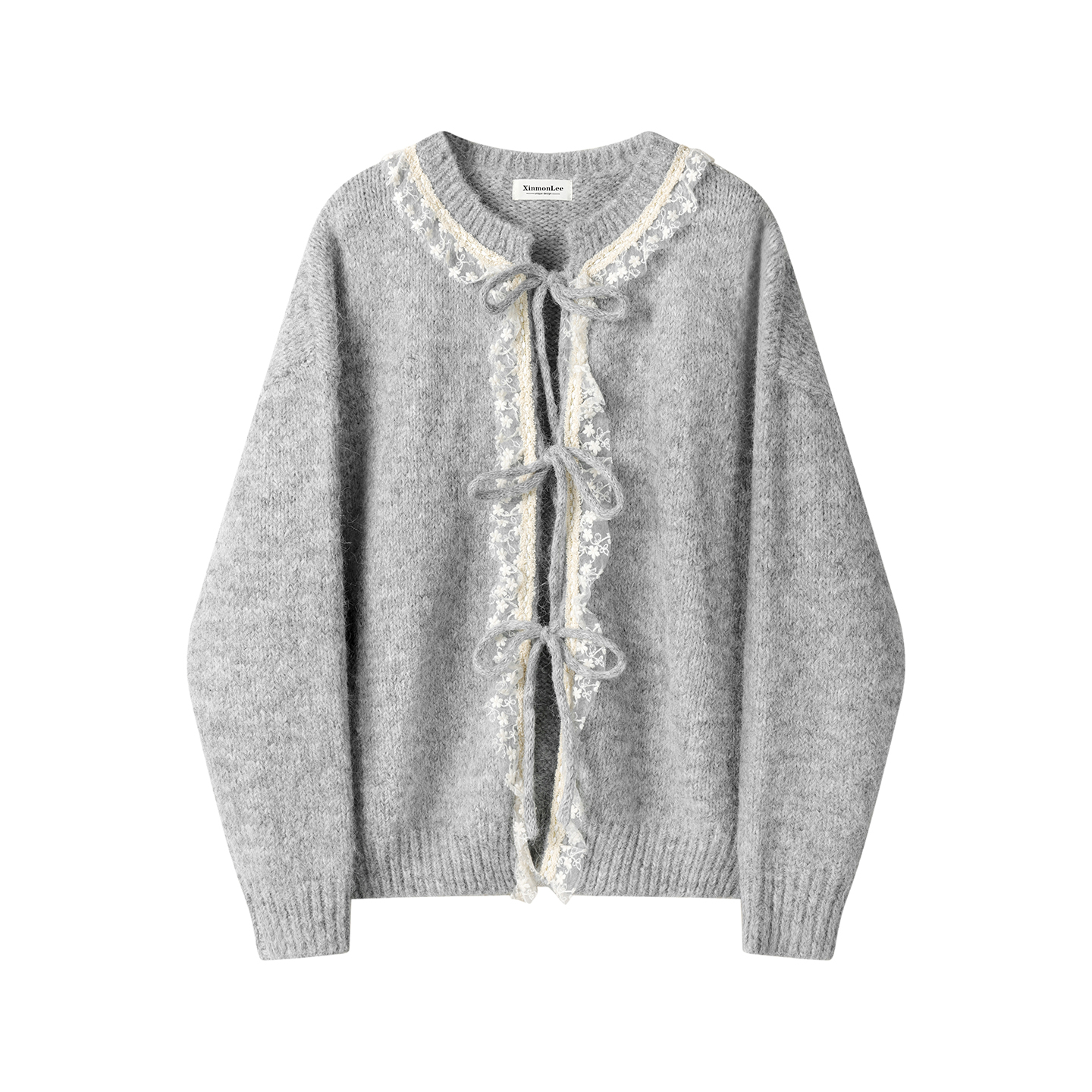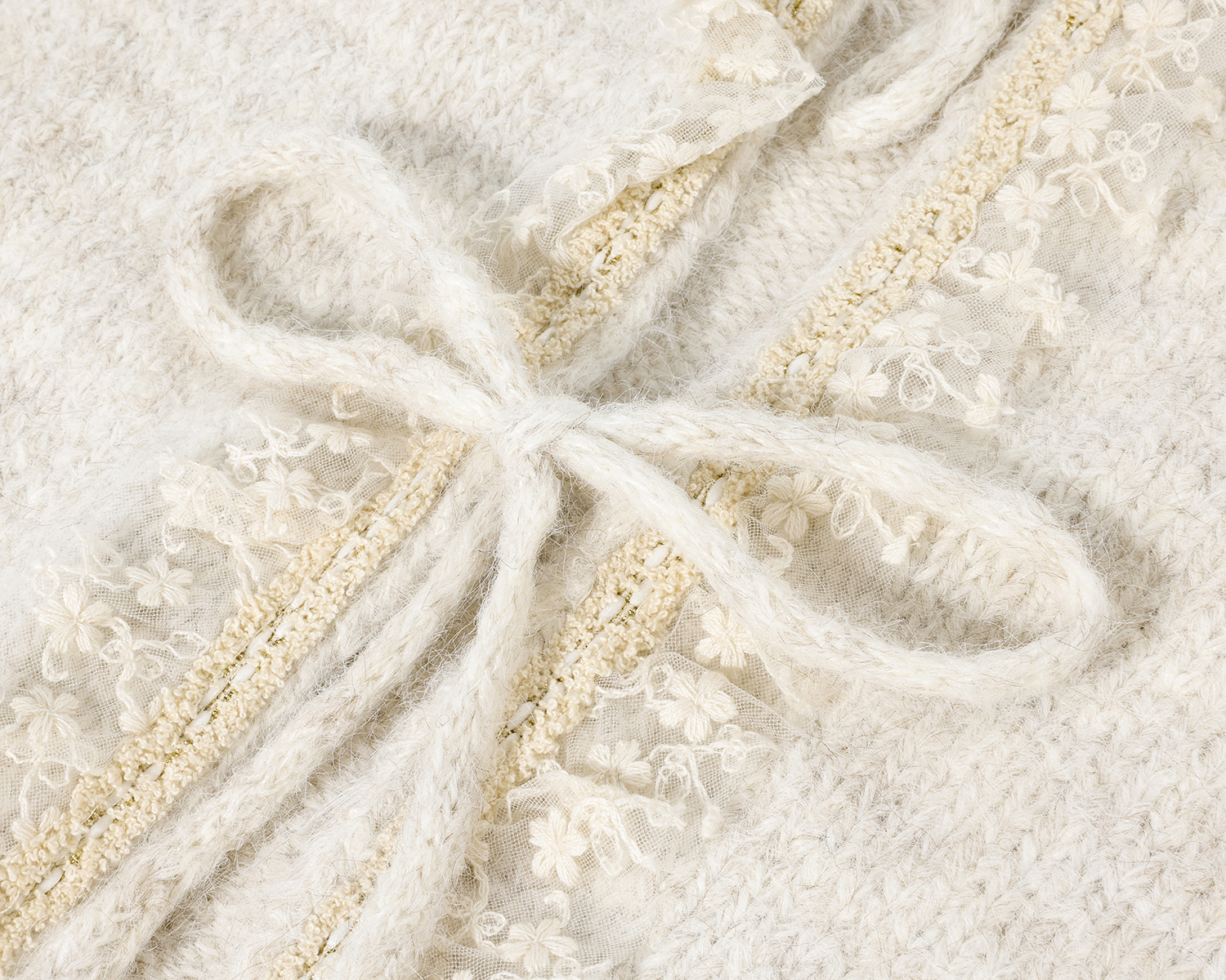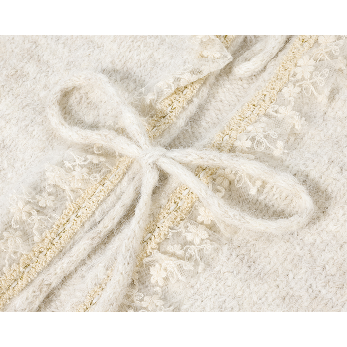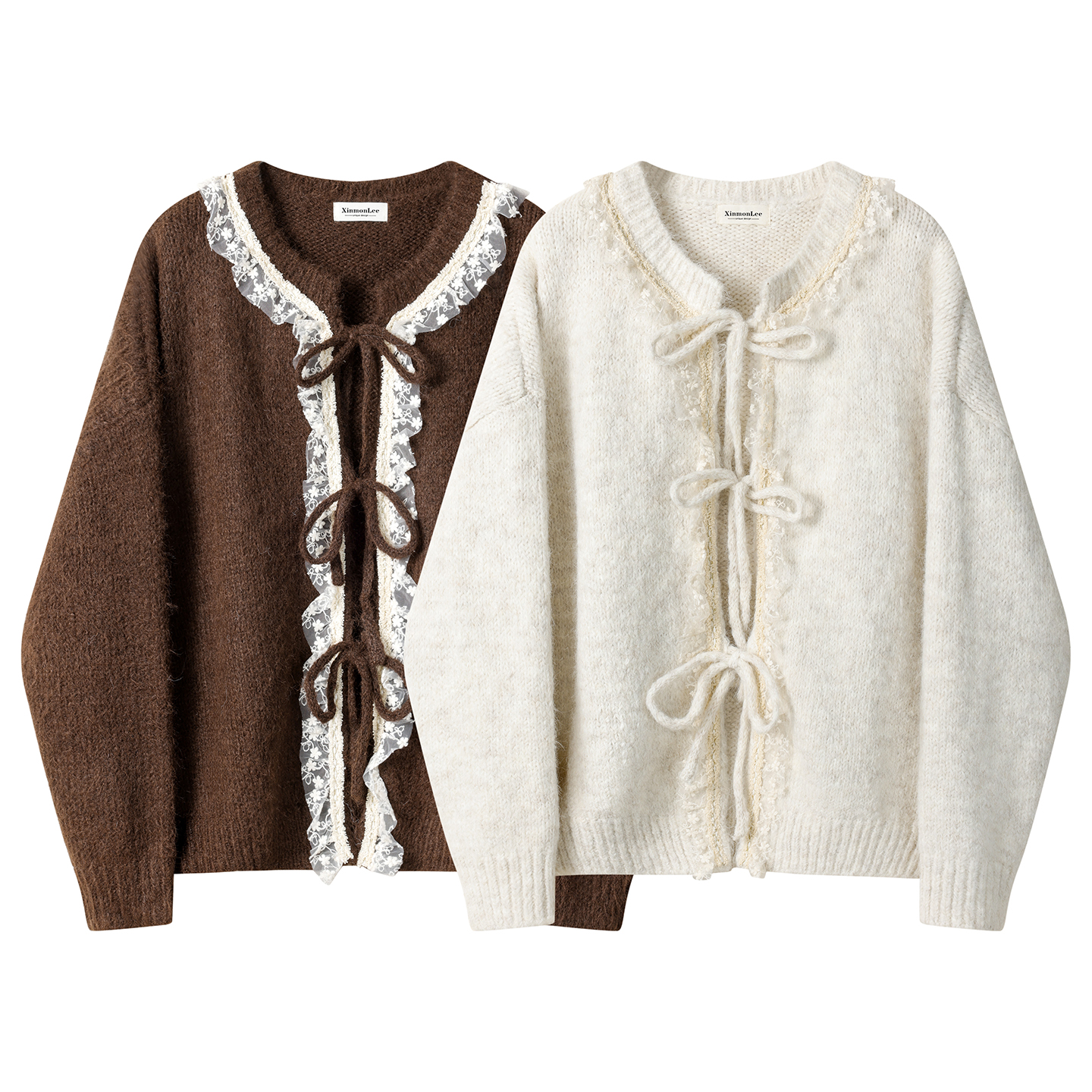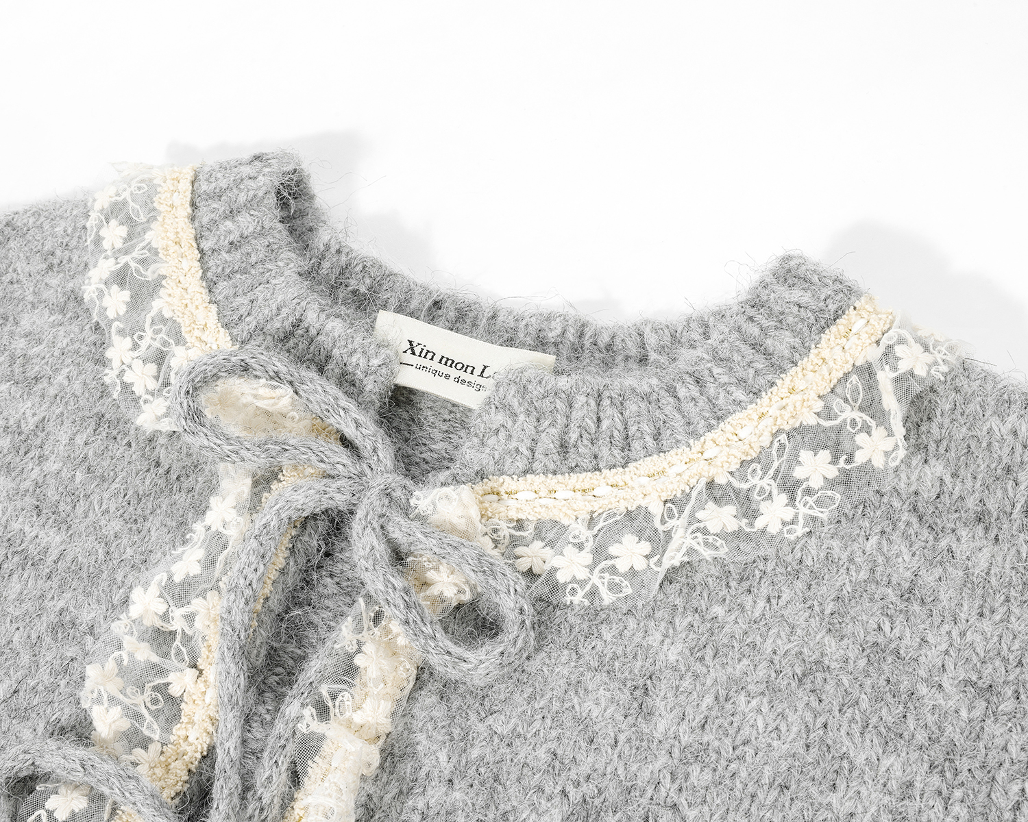 XinmonLee韓系甜美蕾絲拼接溫柔風系帶毛衣開衫秋冬休閒軟糯外套