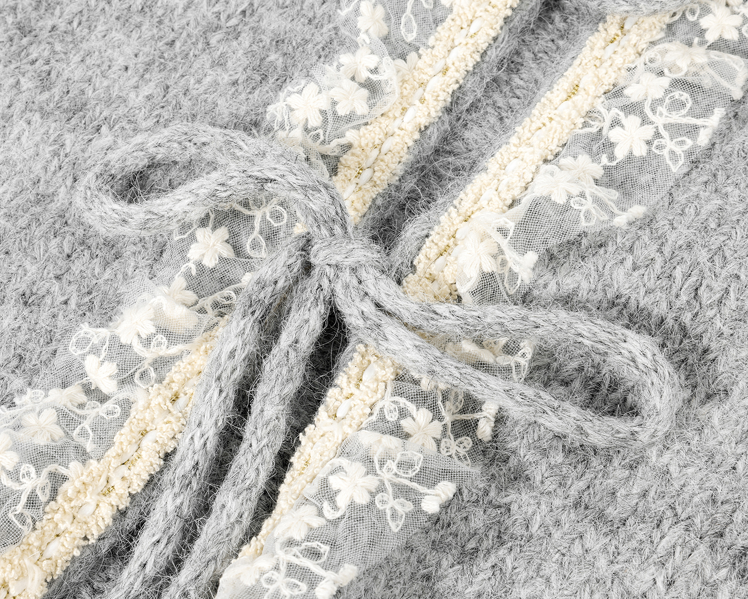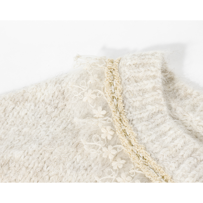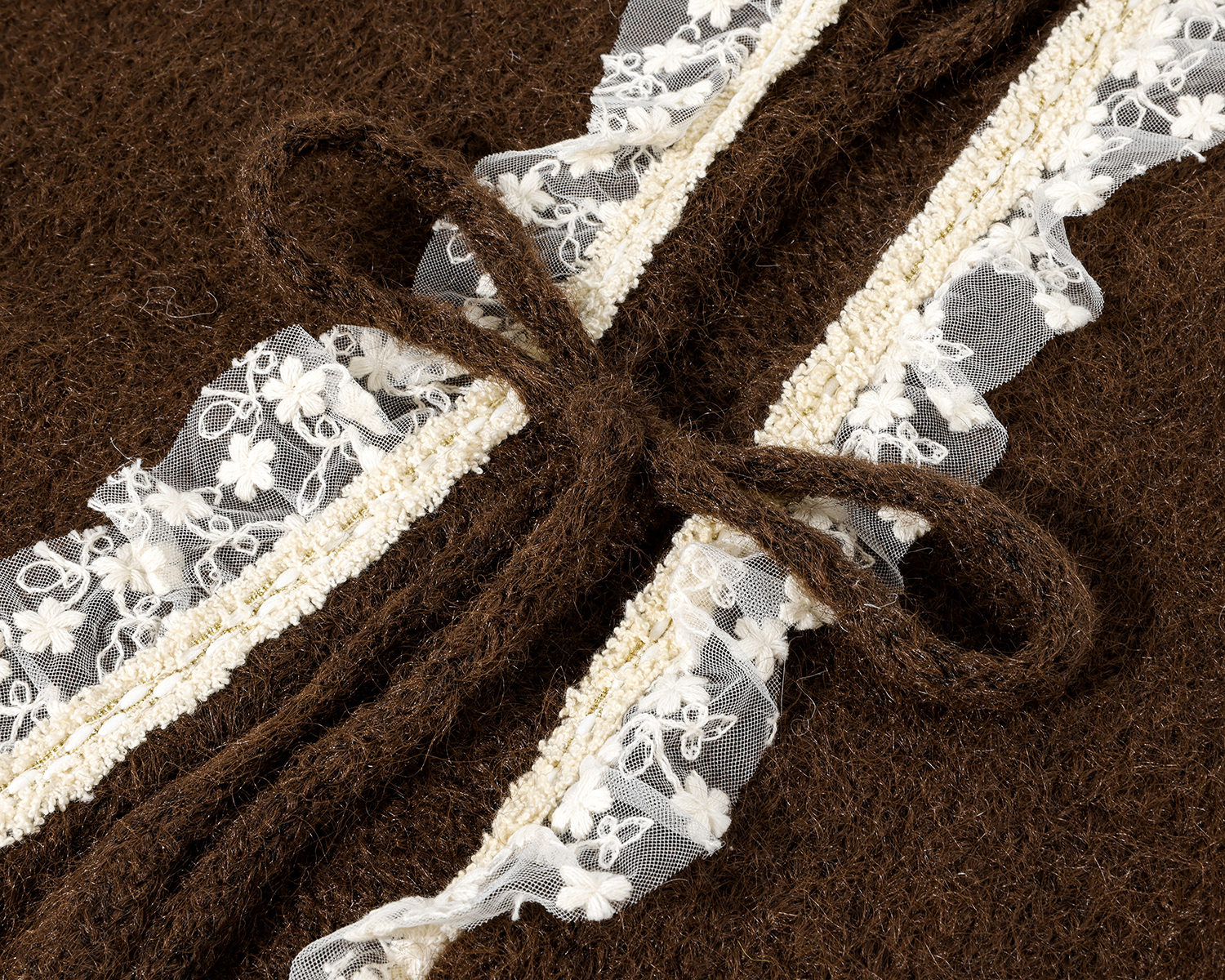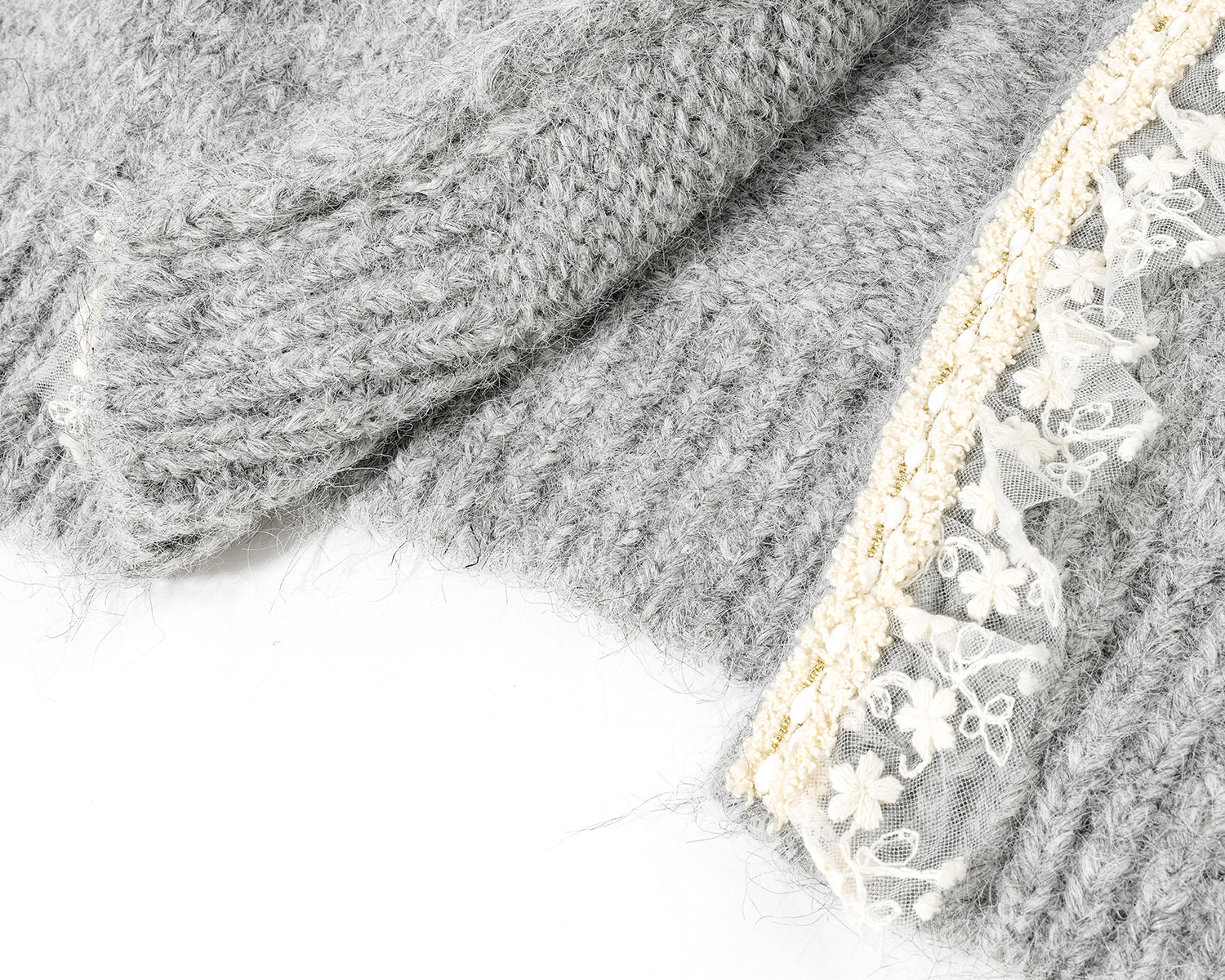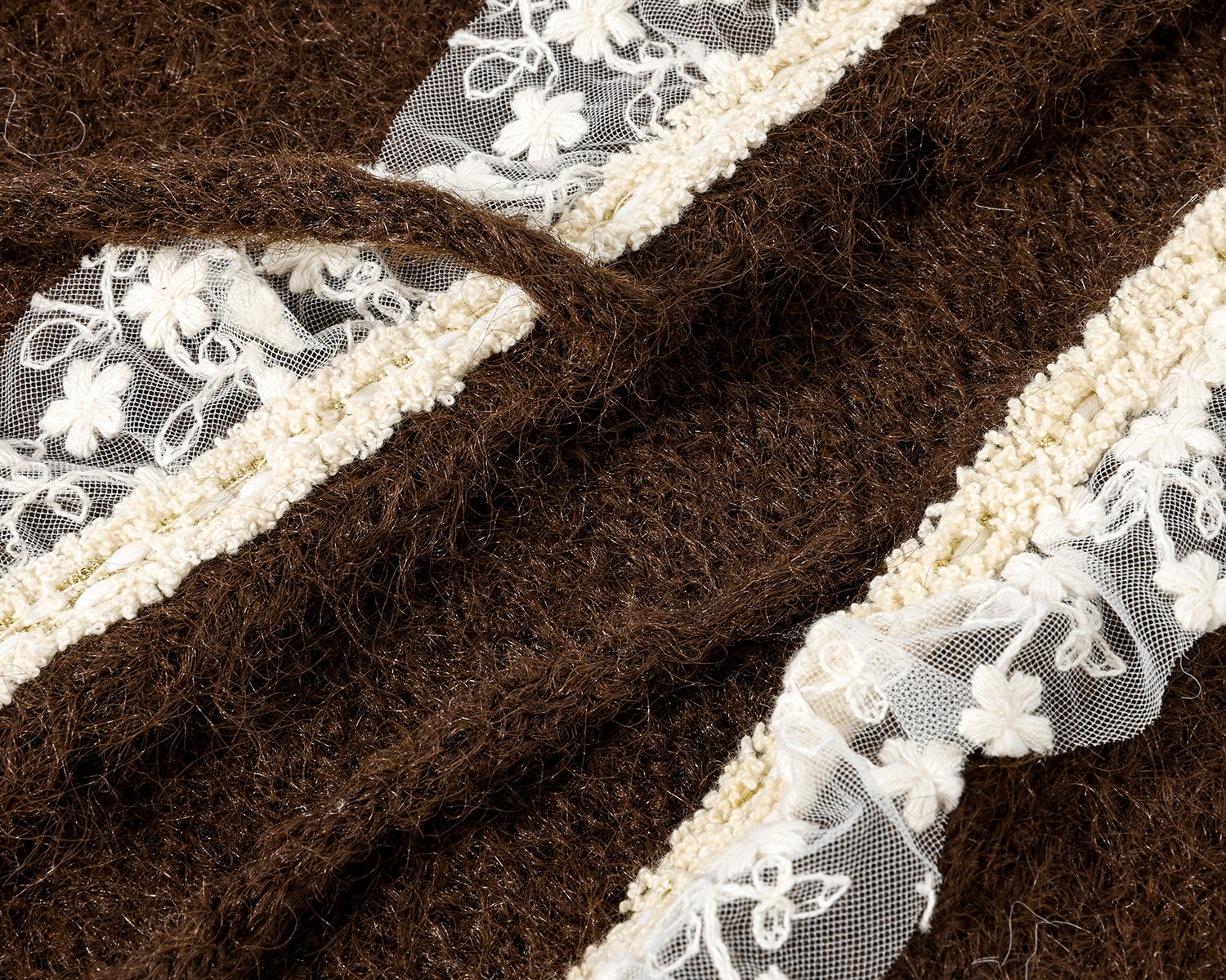 XinmonLee韓系甜美蕾絲拼接溫柔風系帶毛衣開衫秋冬休閒軟糯外套