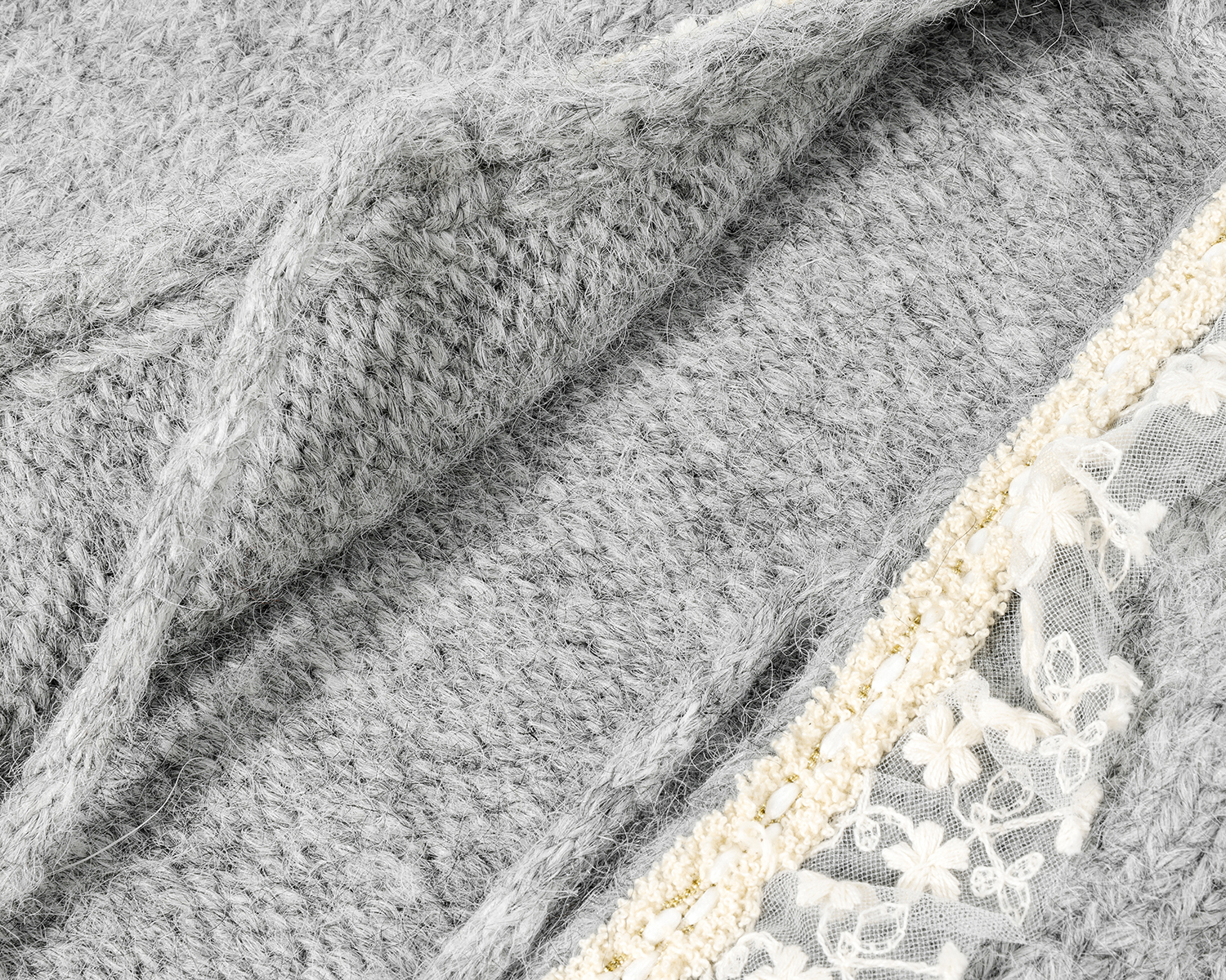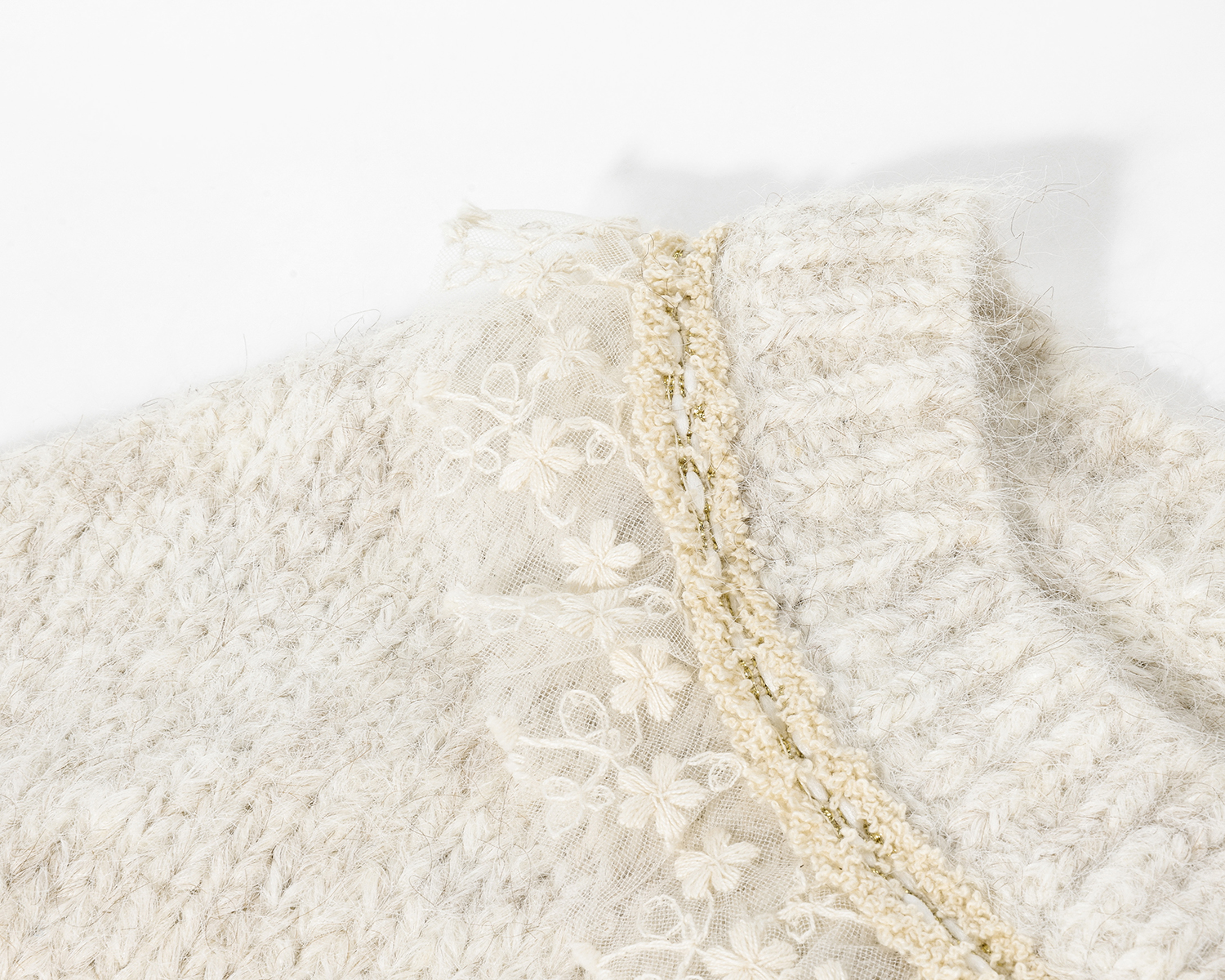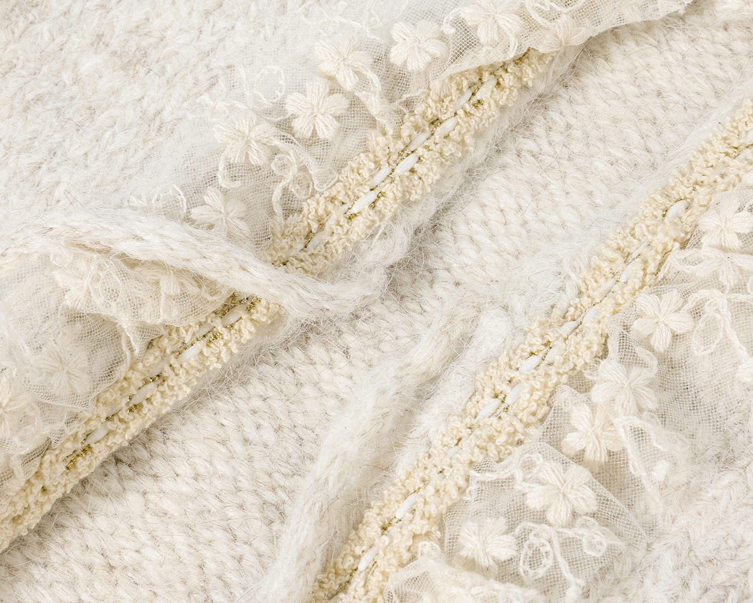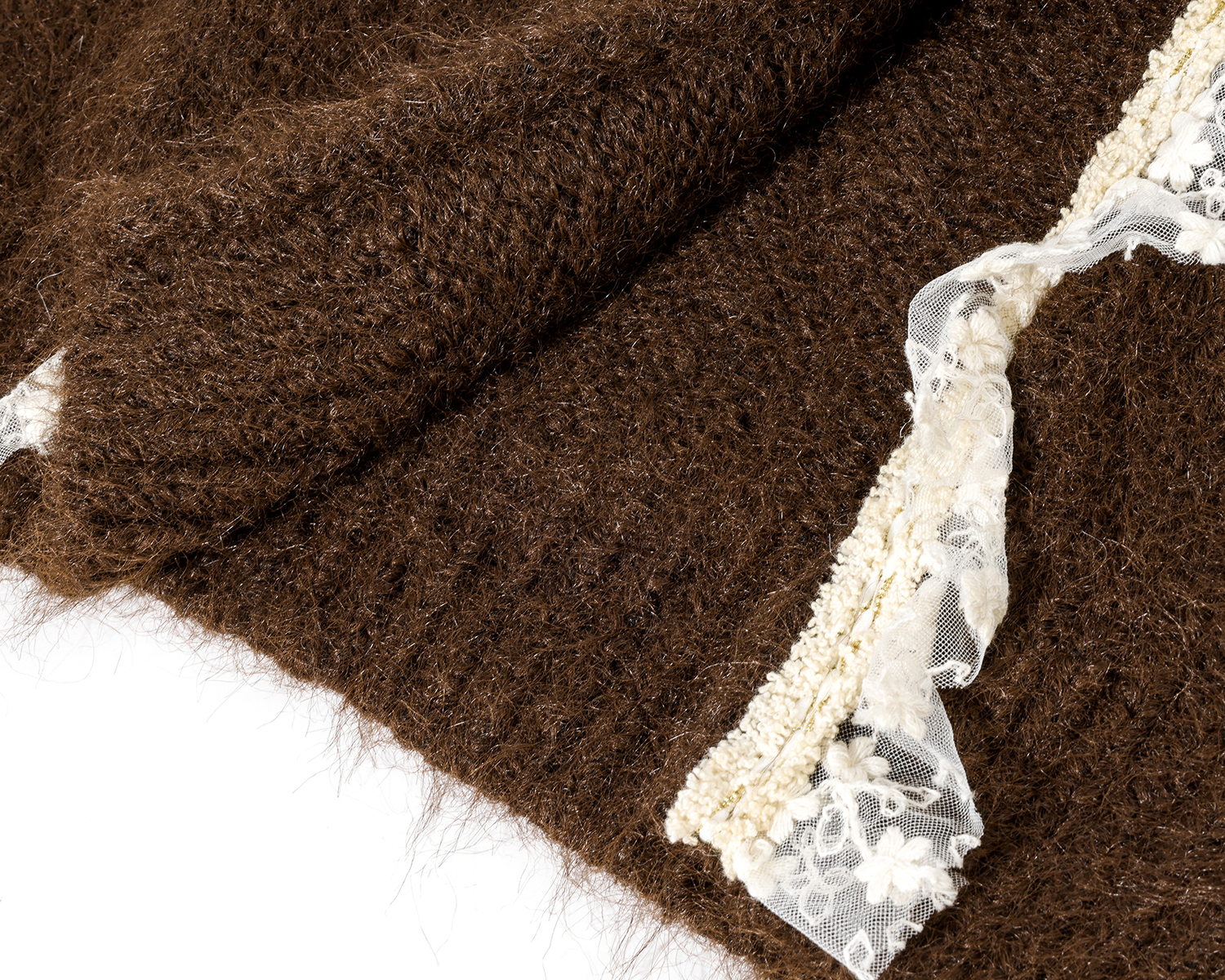 XinmonLee韓系甜美蕾絲拼接溫柔風系帶毛衣開衫秋冬休閒軟糯外套
