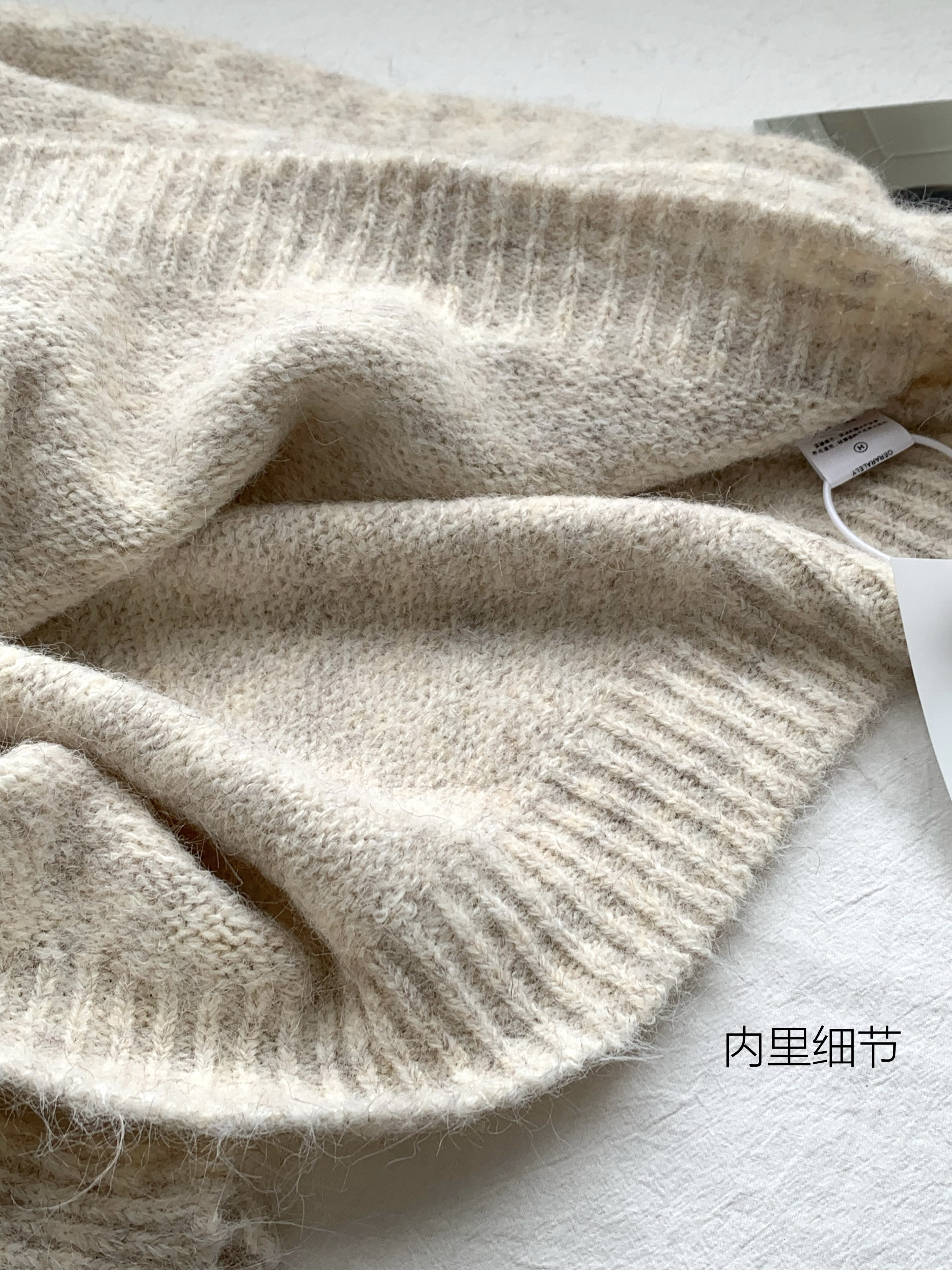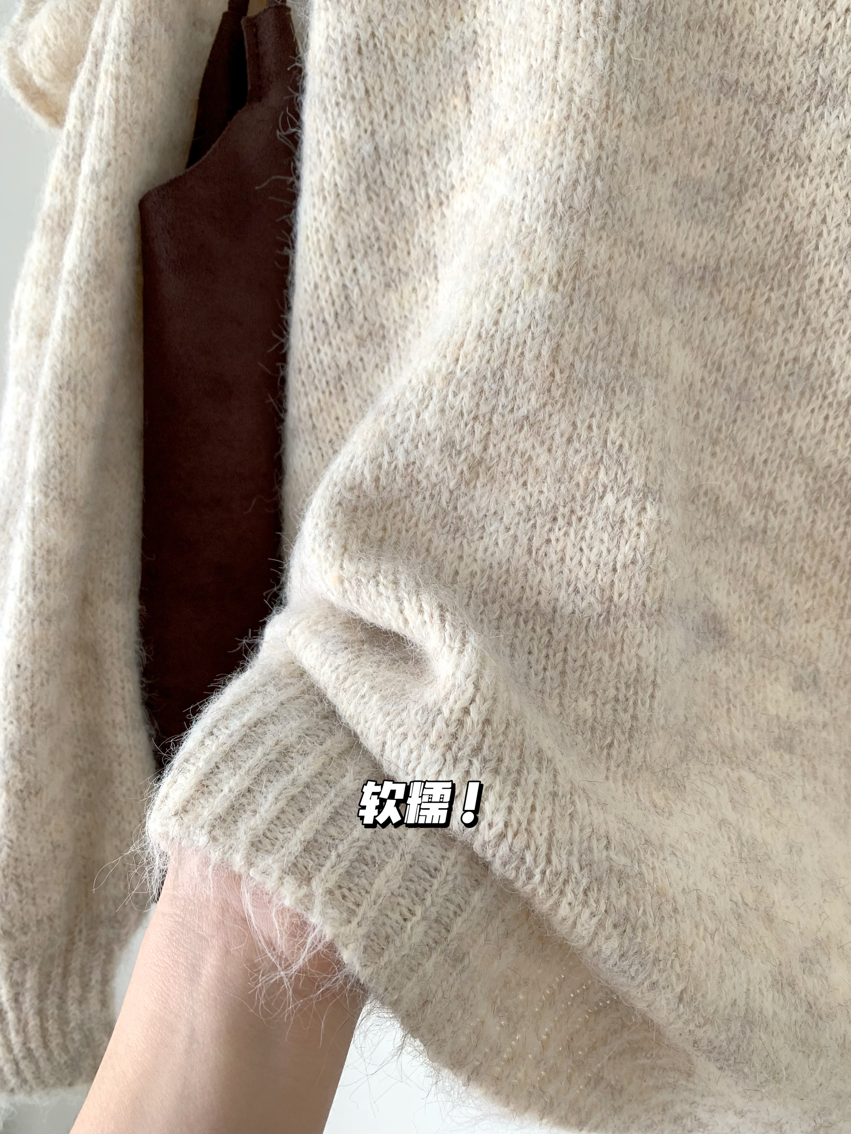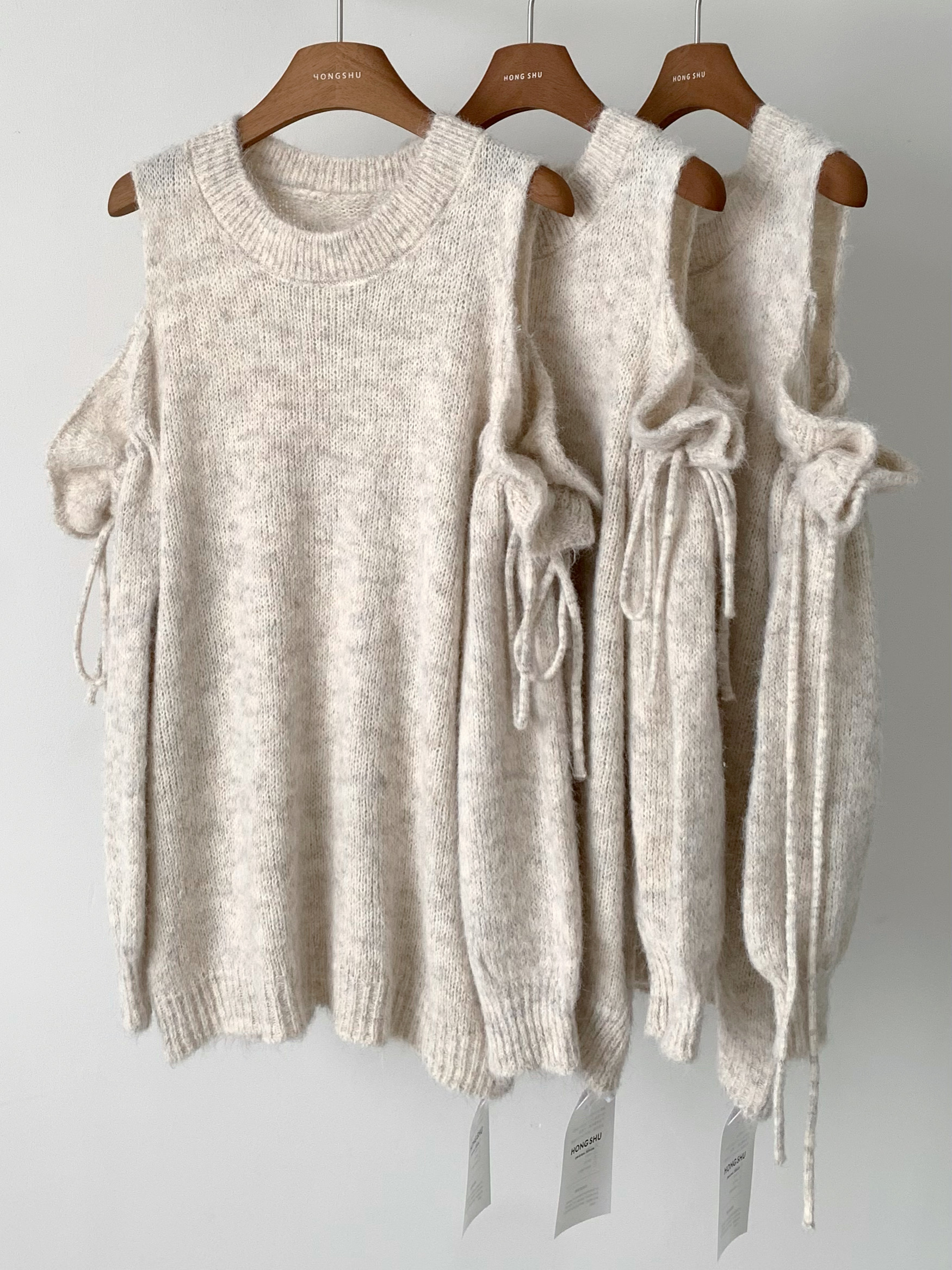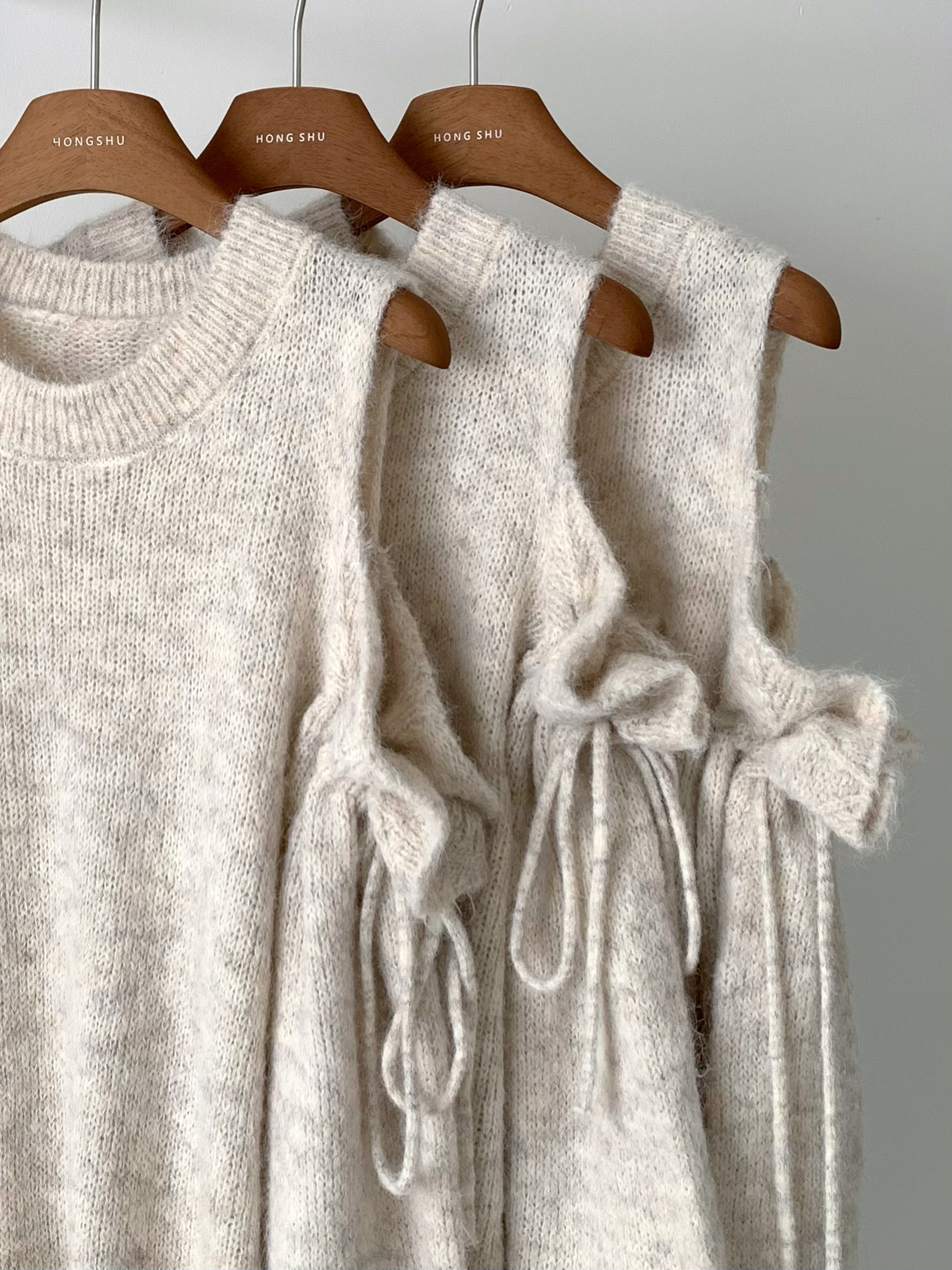RENA乖妹速成軟糯舒適露肩抽褶系帶針織衫女秋毛衣寬松氛圍感上衣