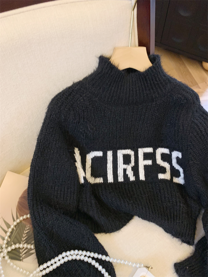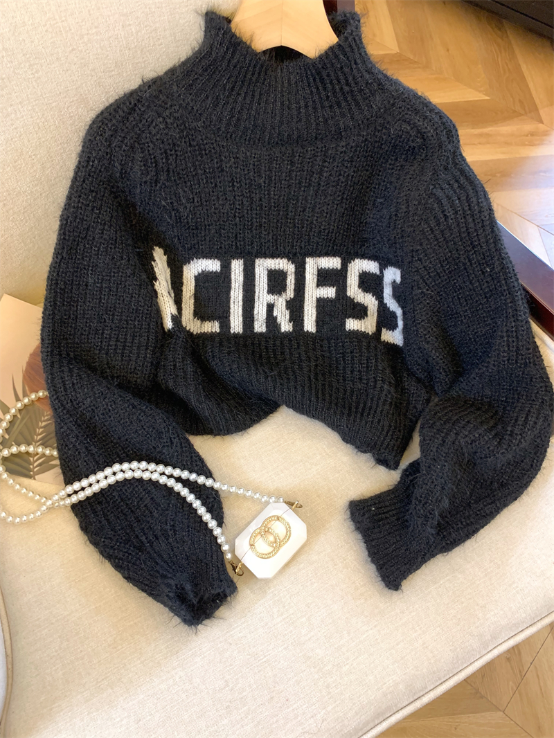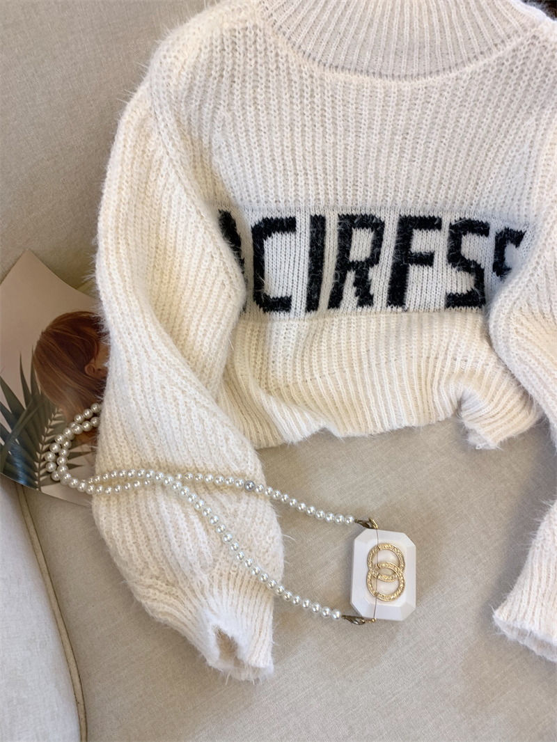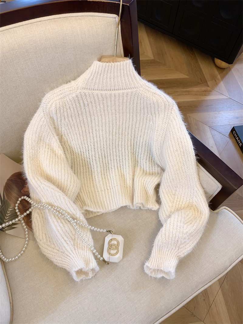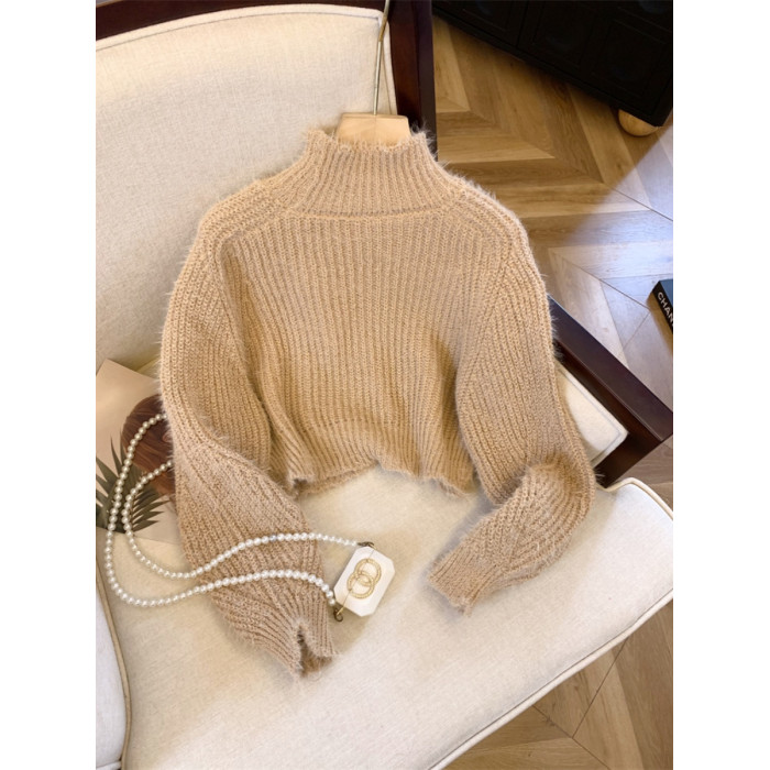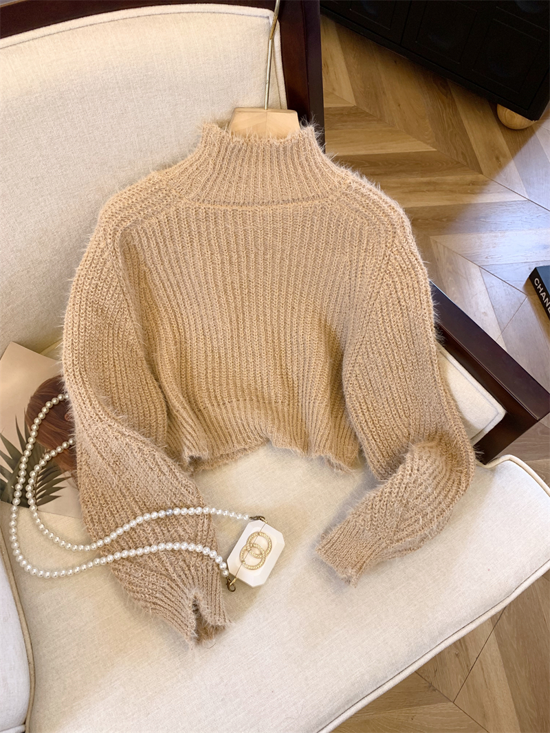 美拉德穿搭高領套頭短款毛衣女秋季季小個子寬松軟糯海馬毛針織衫