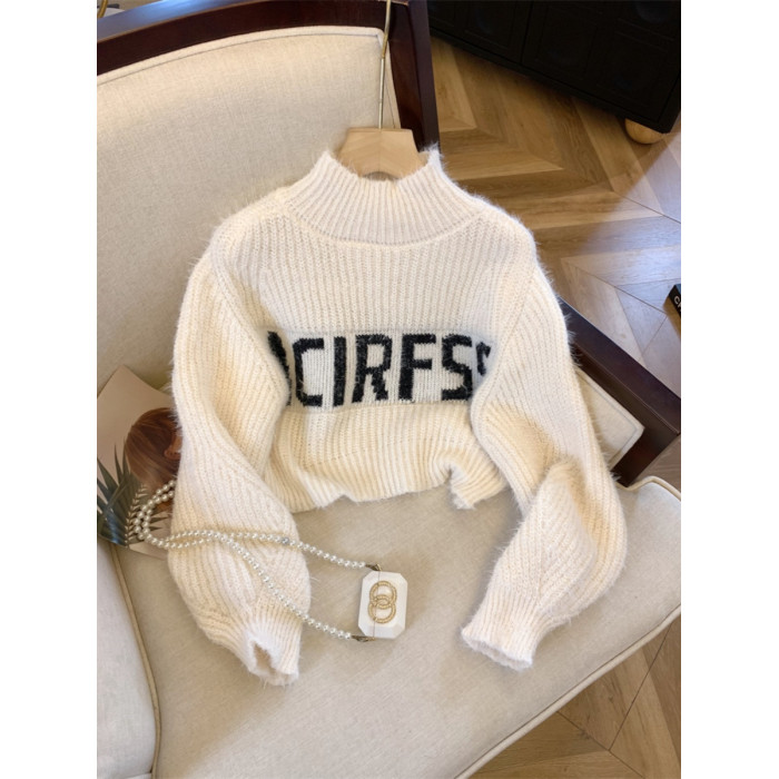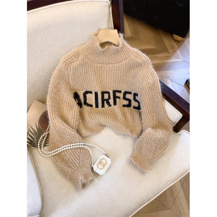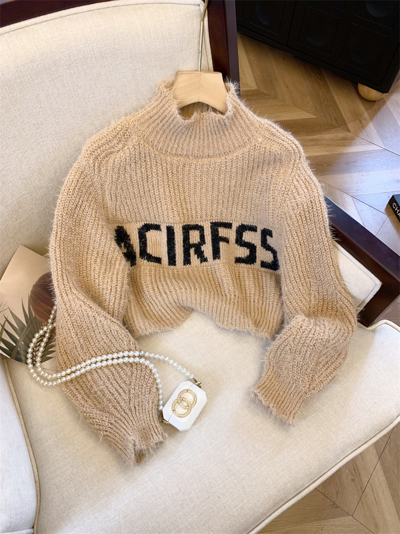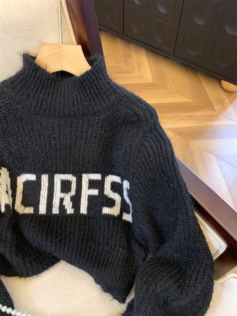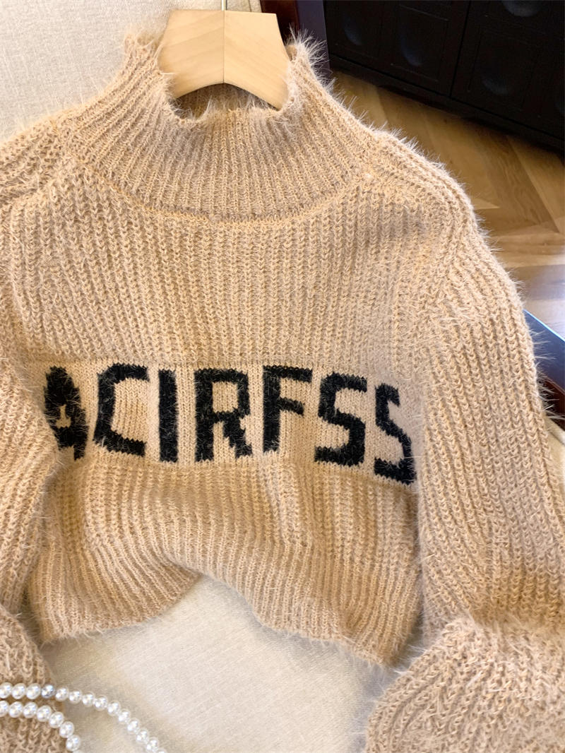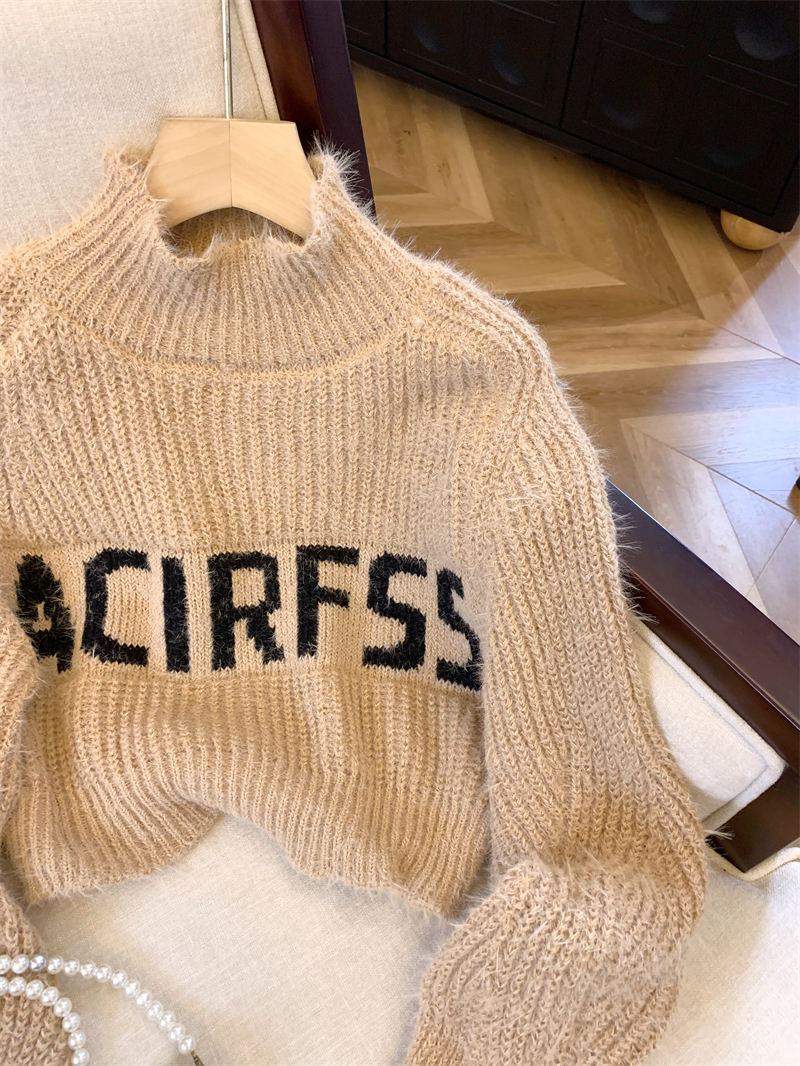 美拉德穿搭高領套頭短款毛衣女秋季季小個子寬松軟糯海馬毛針織衫