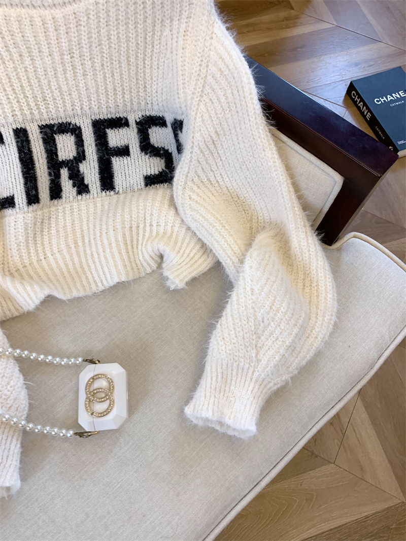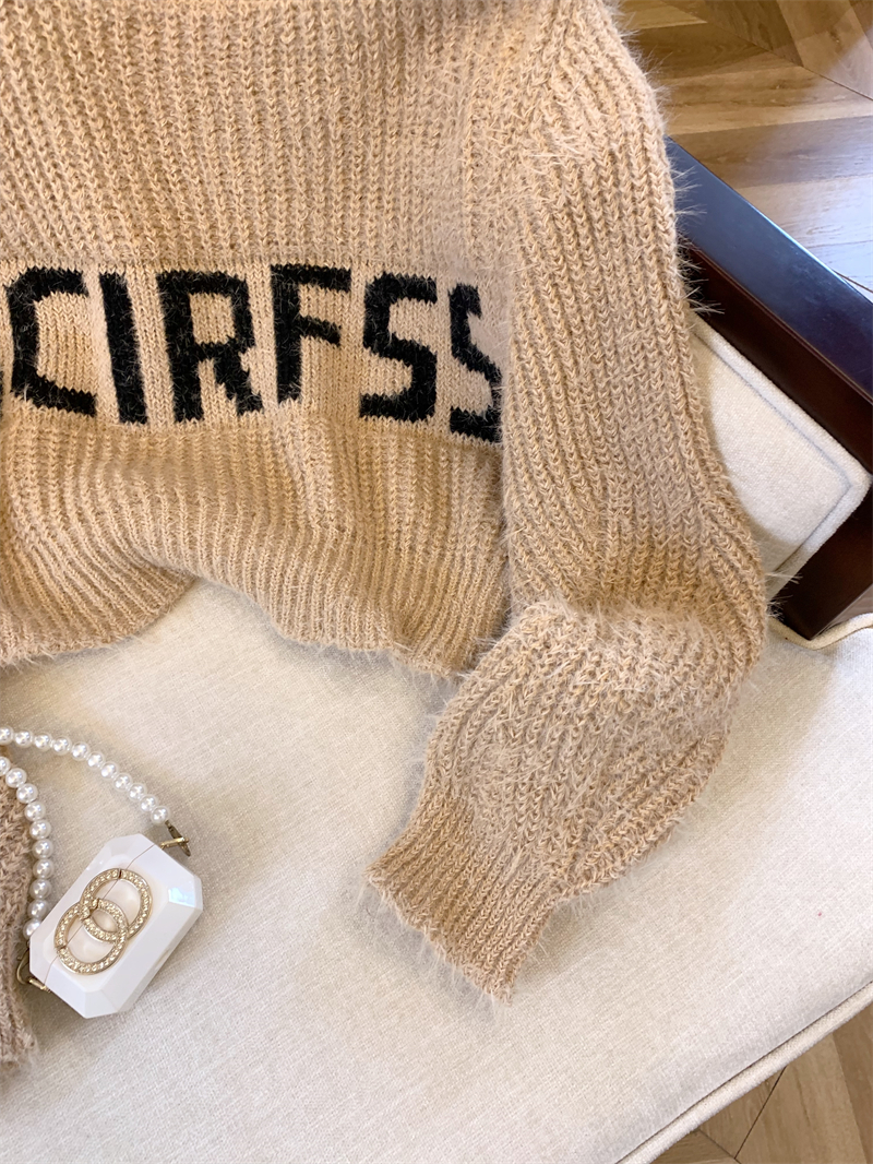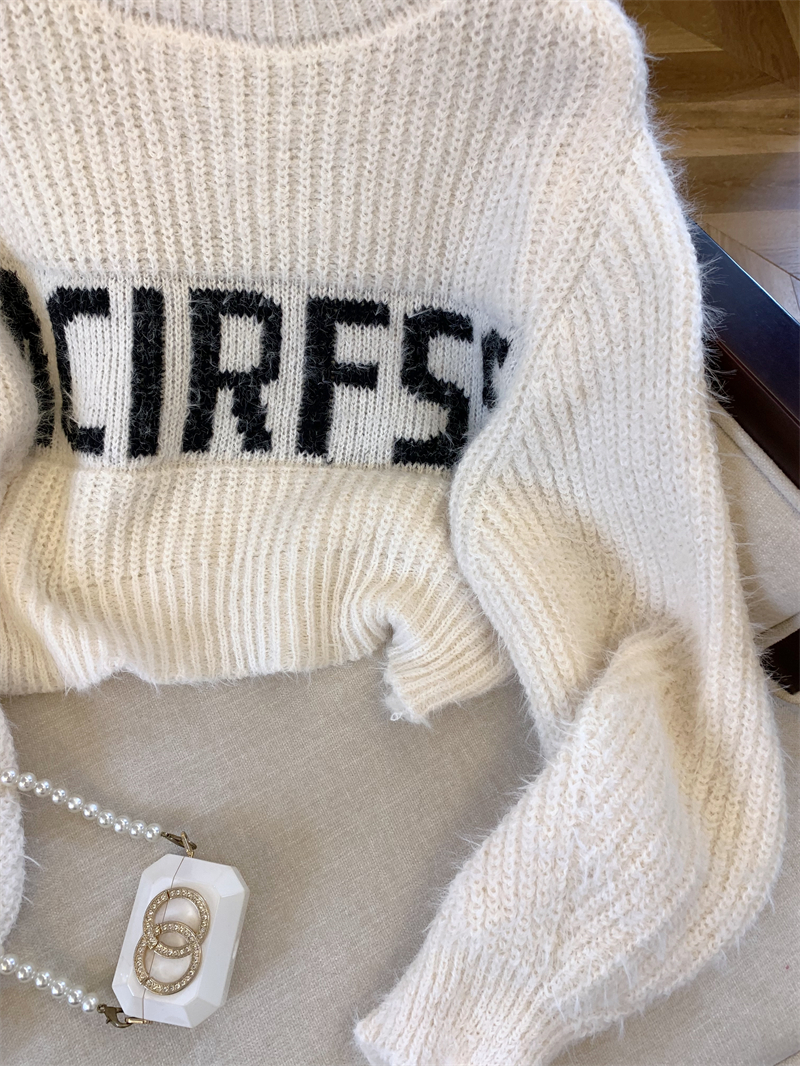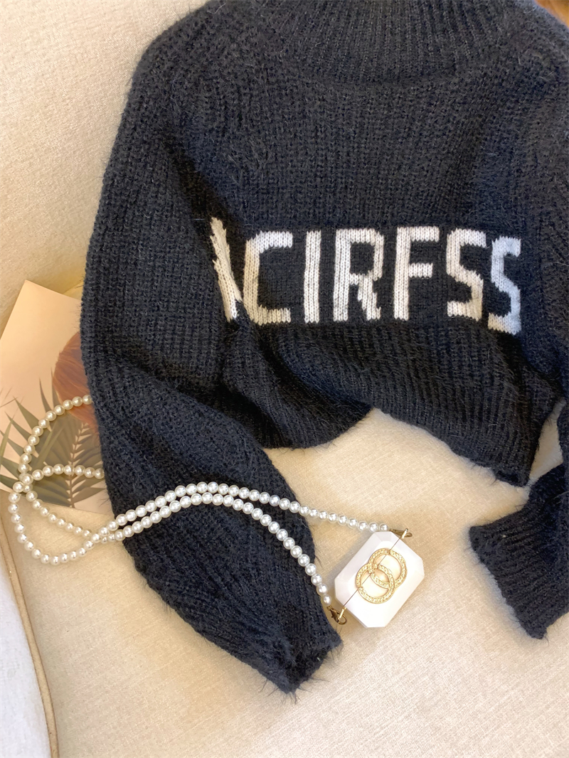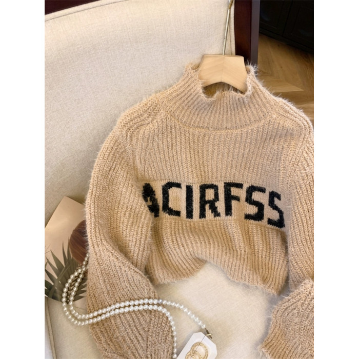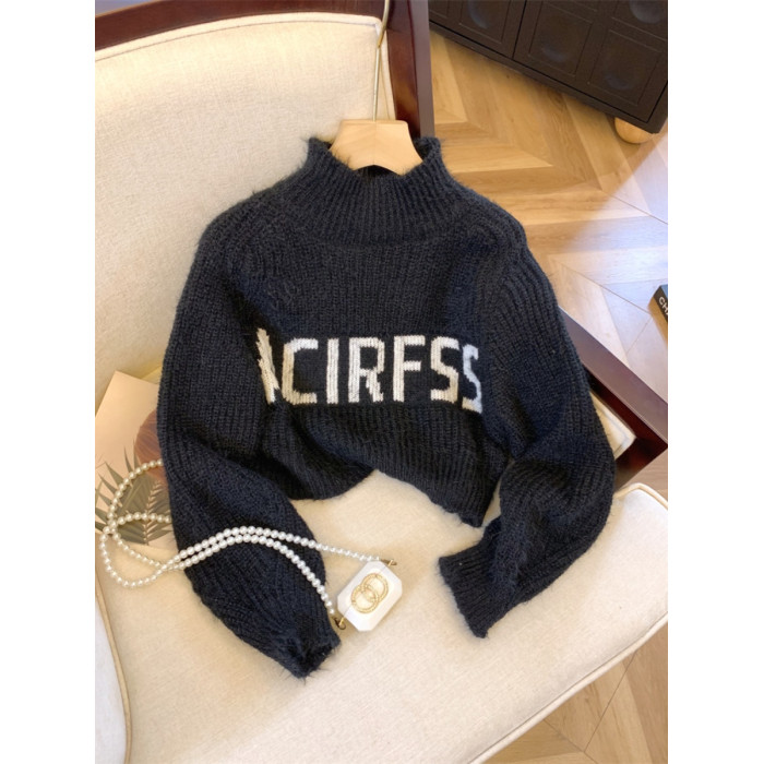 美拉德穿搭高領套頭短款毛衣女秋季季小個子寬松軟糯海馬毛針織衫
